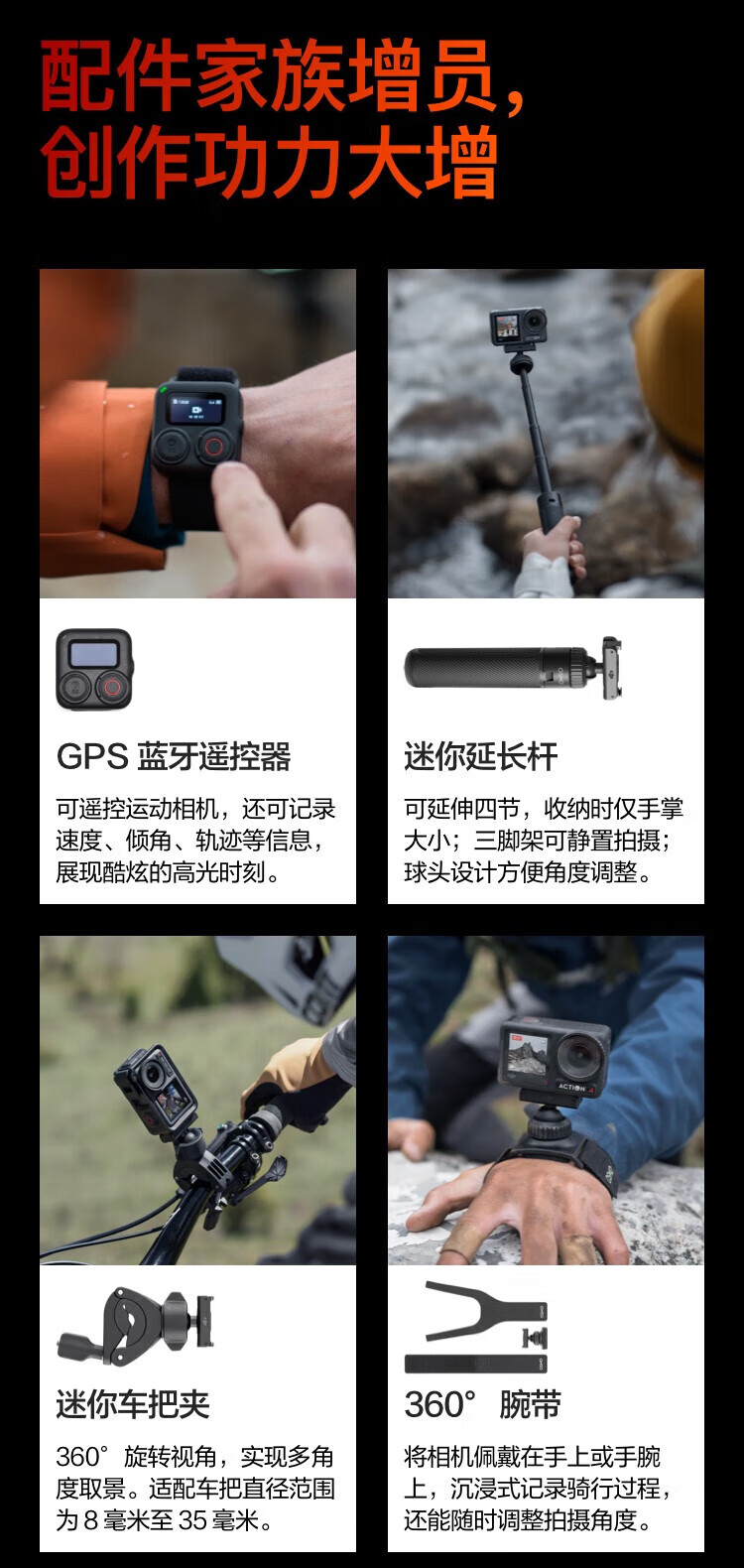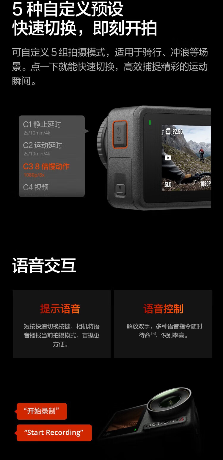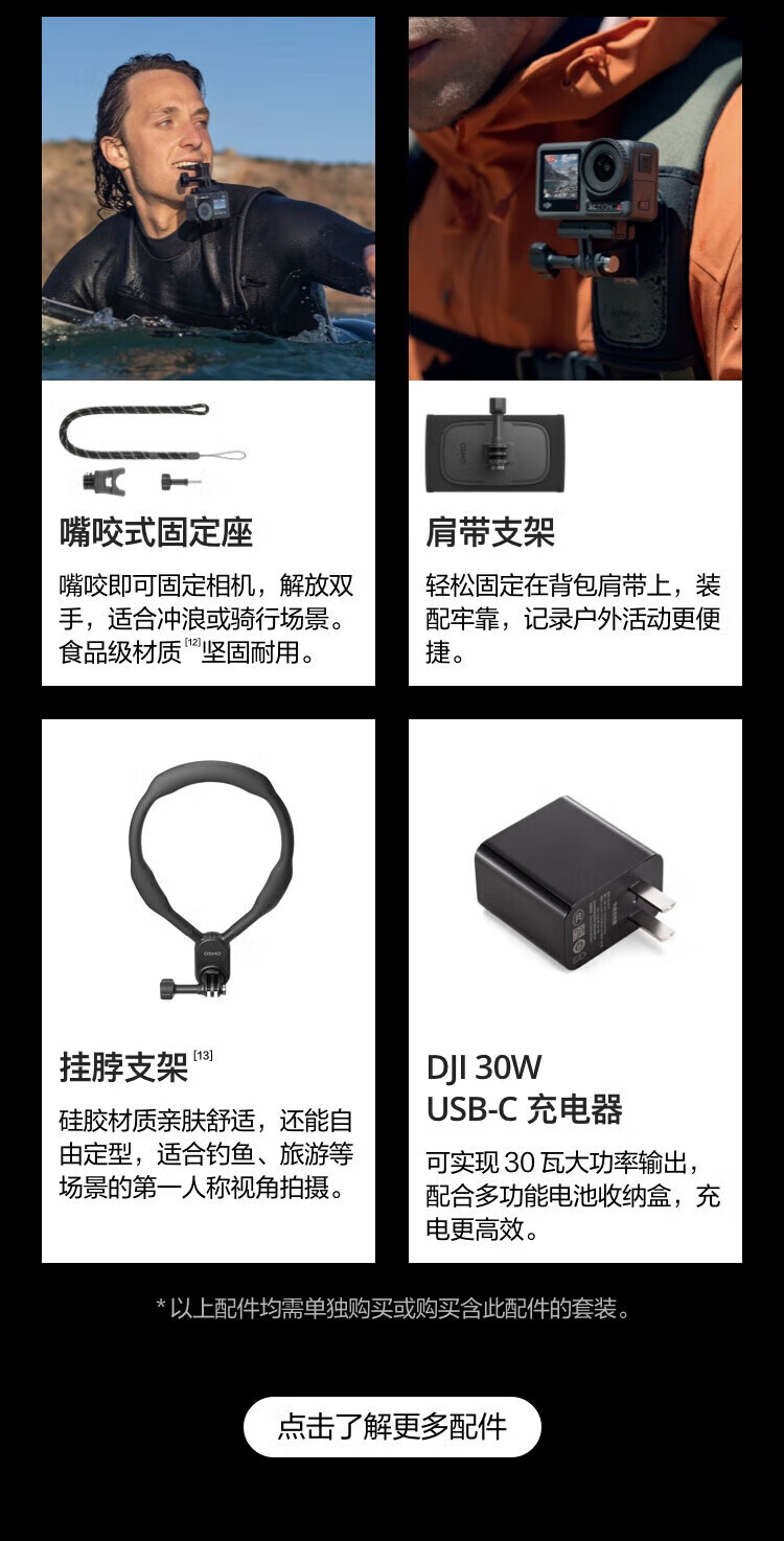 大疆(DJI)大疆Action4 运动相机山地公路骑行潜水vlog拍摄记录视频便携相机 官方标配【 Action 4】联保一年 官方标配 现货速发 假一赔三
