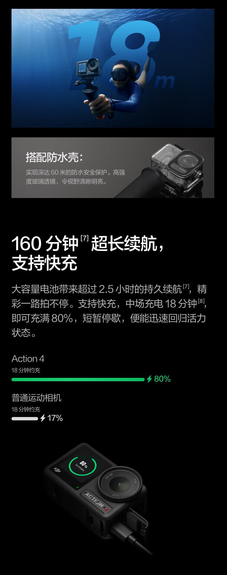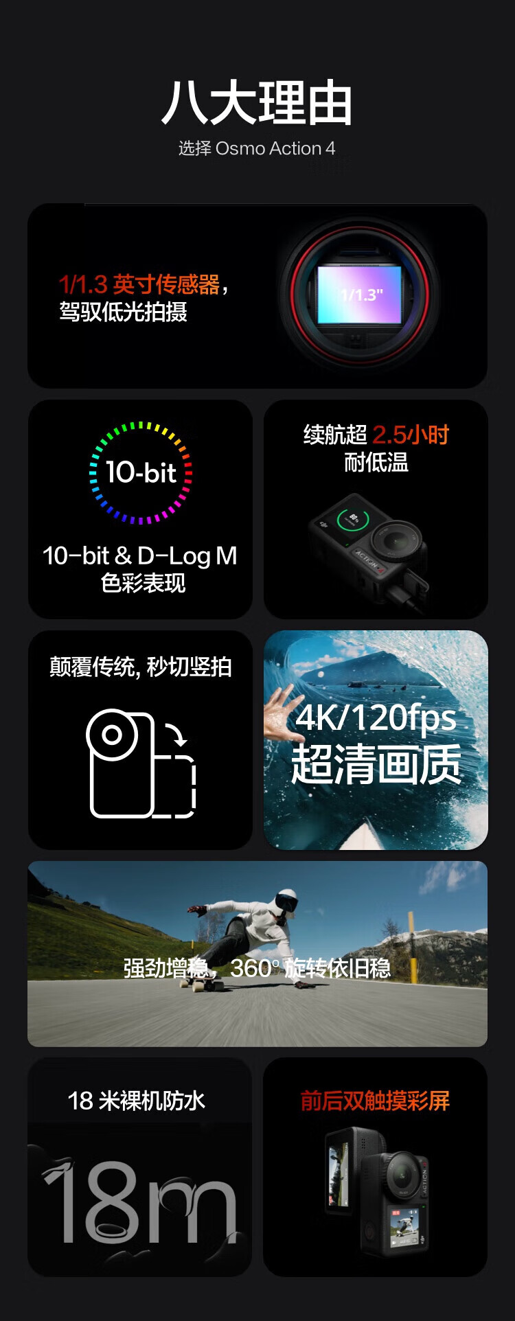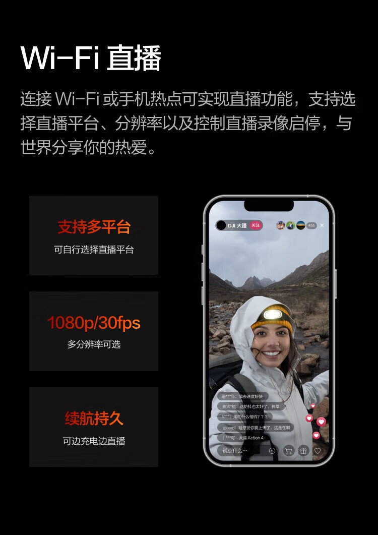 大疆(DJI)大疆Action4 运动相机山地公路骑行潜水vlog拍摄记录视频便携相机 官方标配【 Action 4】联保一年 官方标配 现货速发 假一赔三