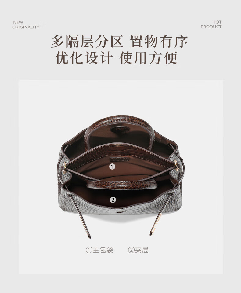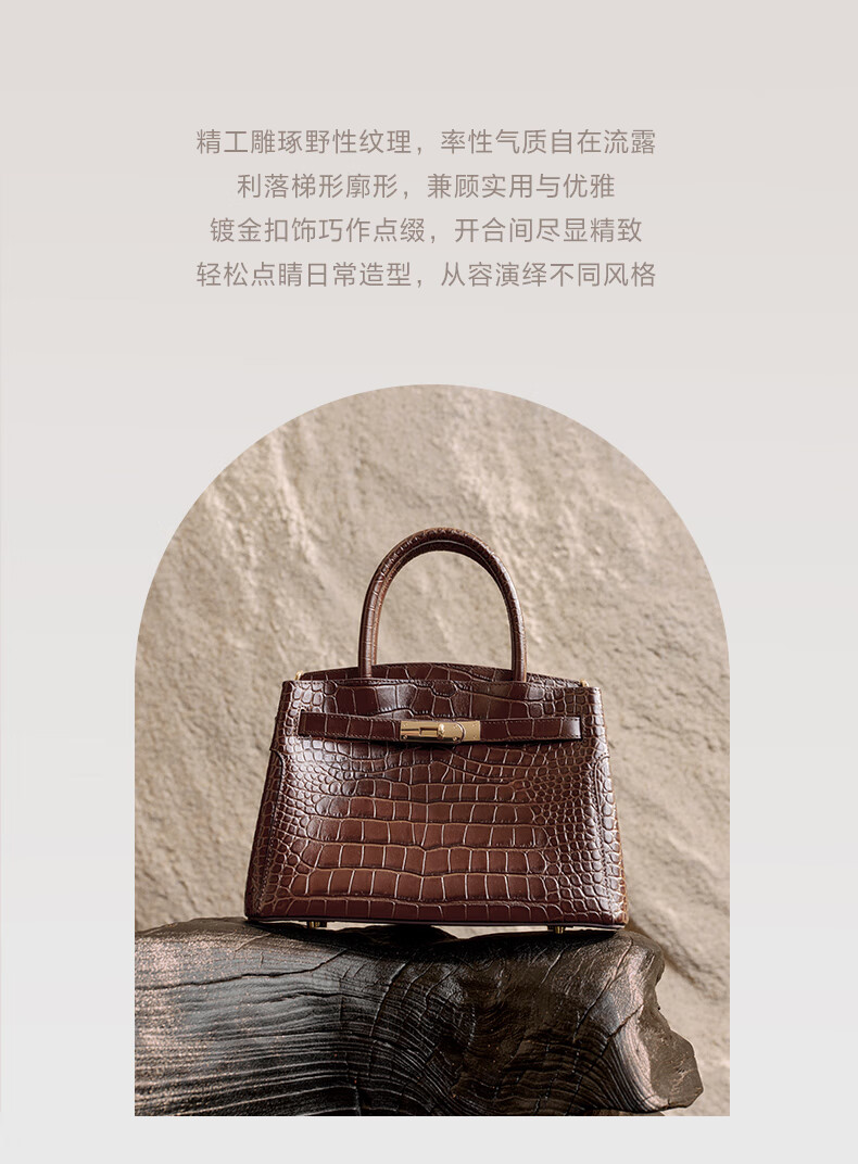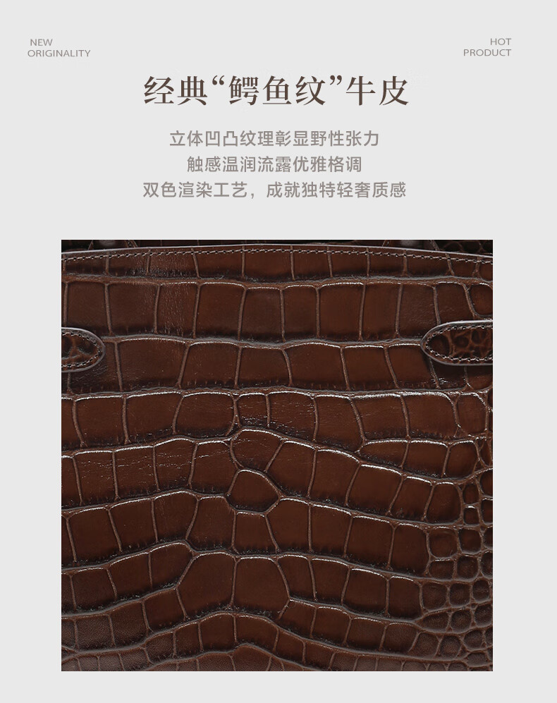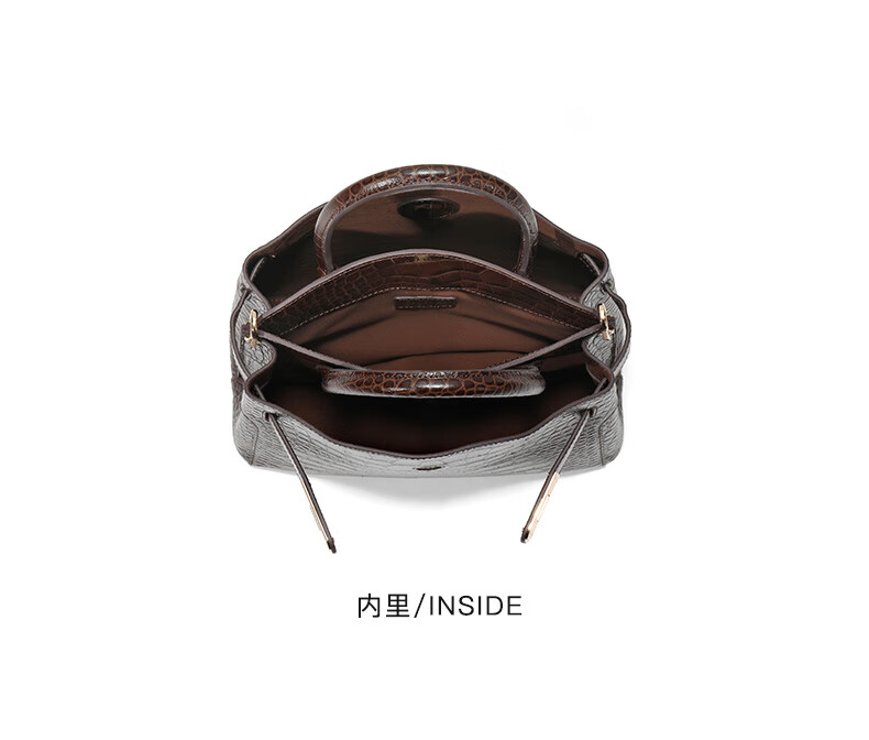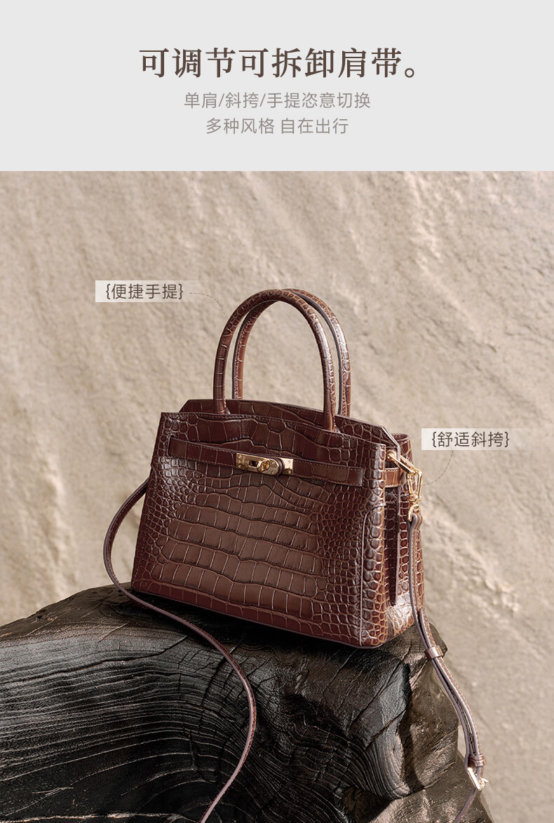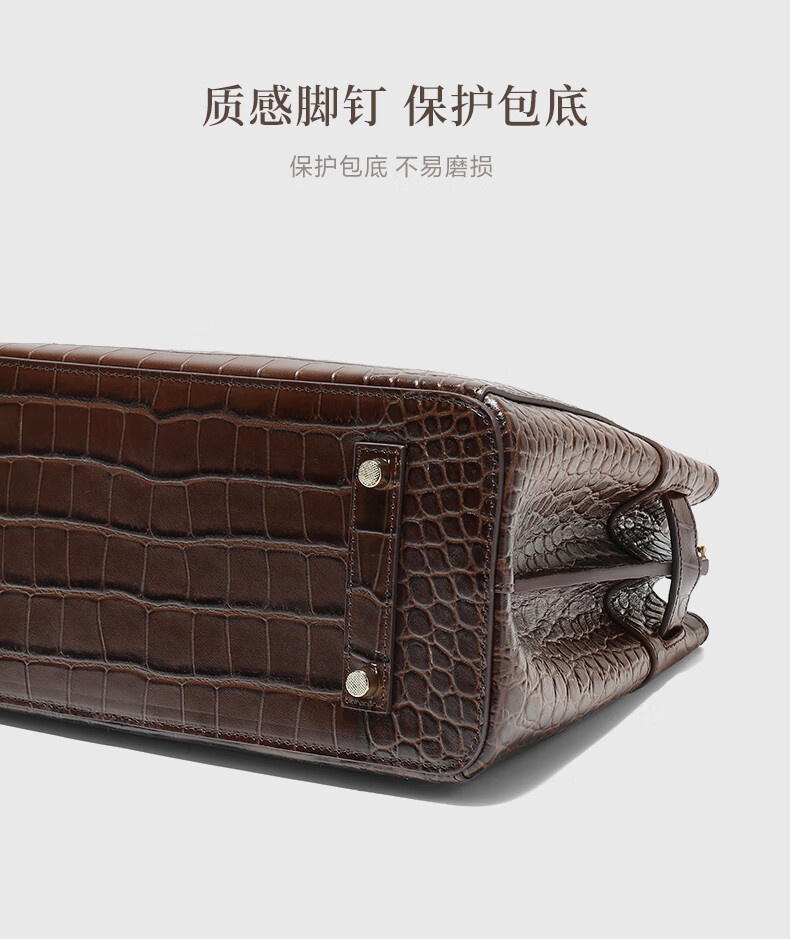 百丽包女25新鳄鱼纹头层牛皮革通勤铂金包单肩斜挎手提包X7429DX5 啡色 F