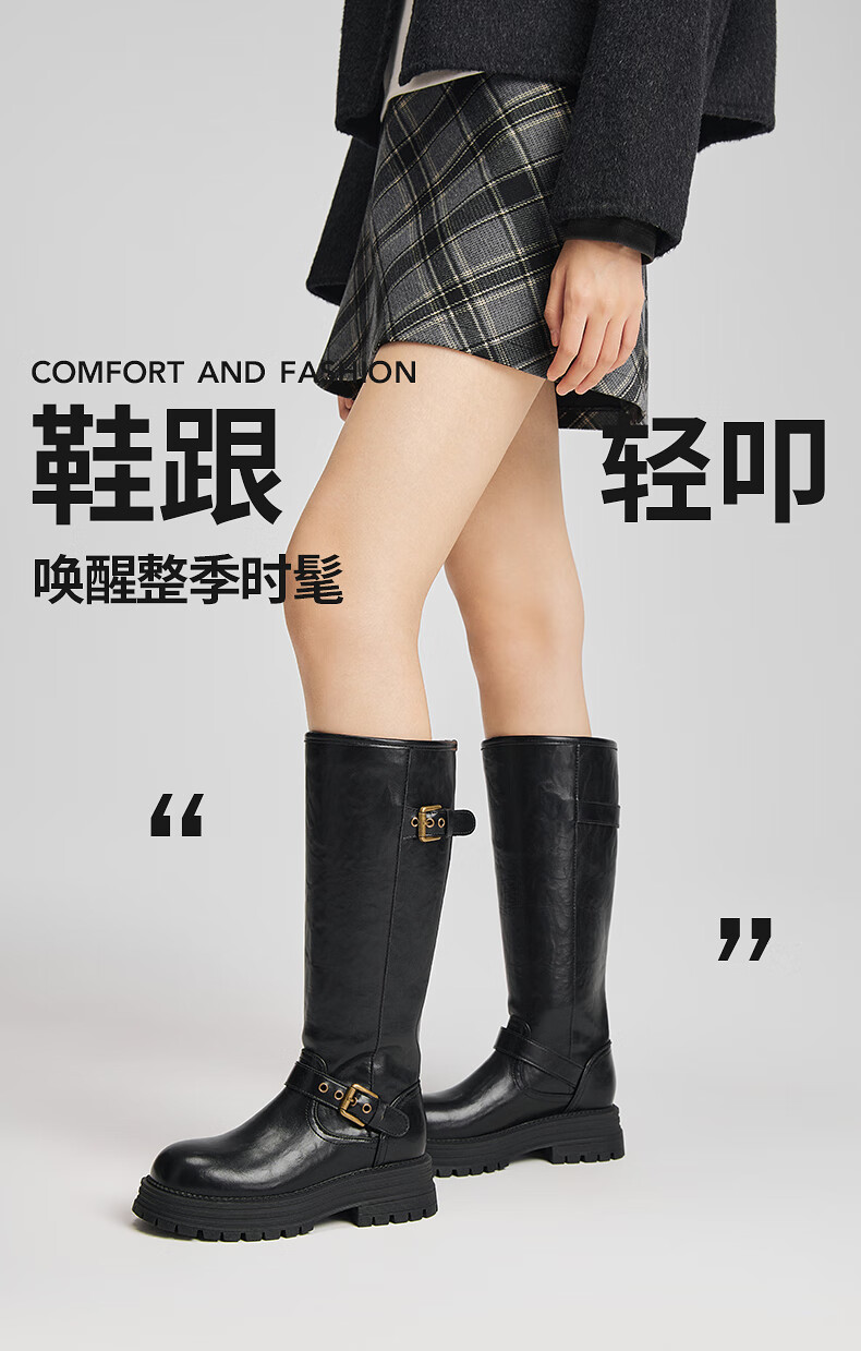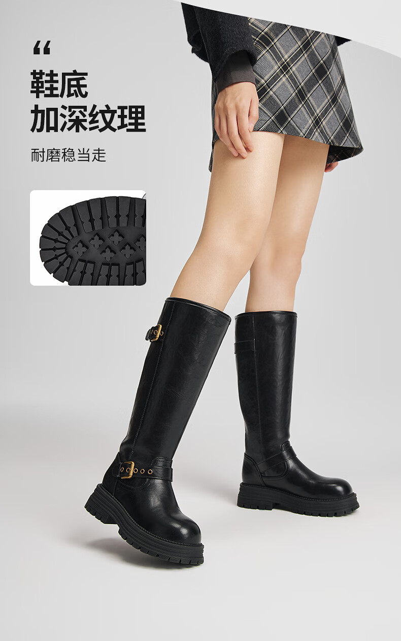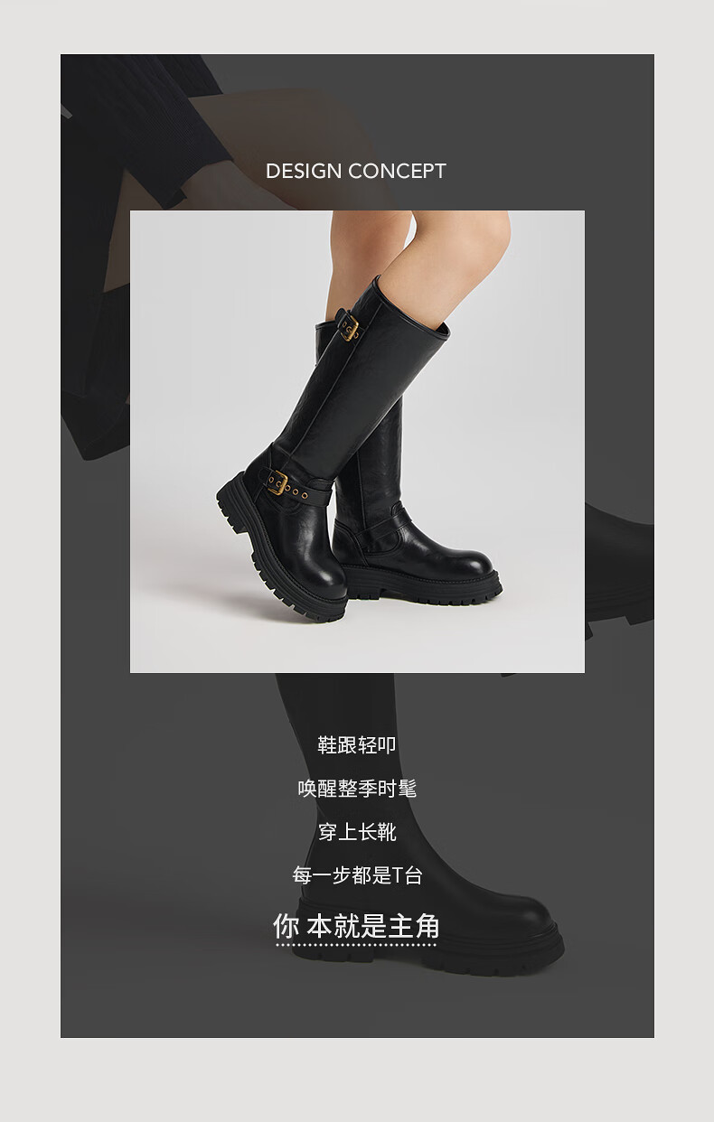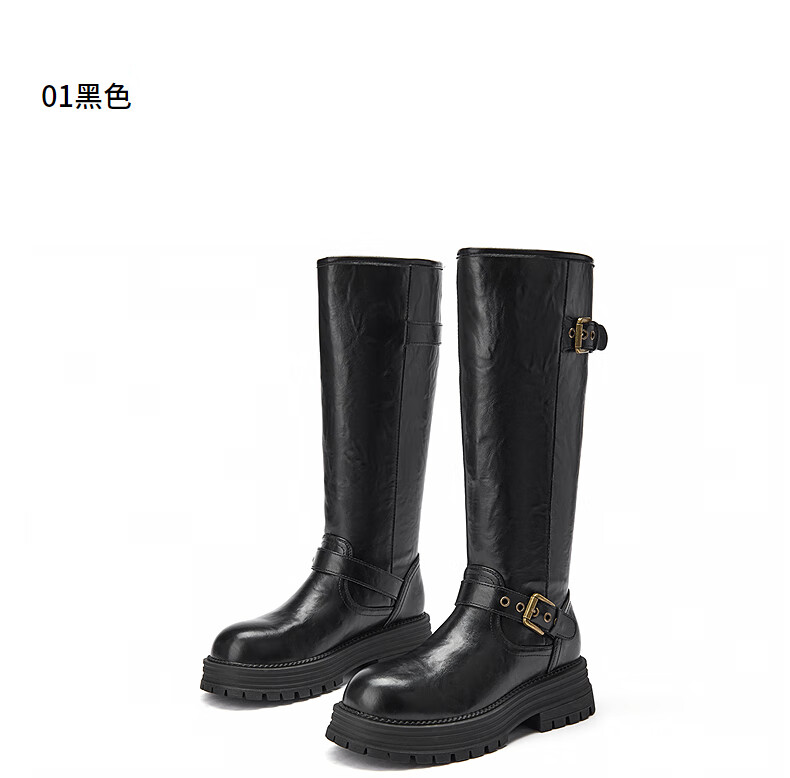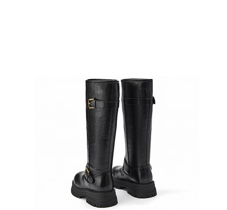 热风厚底复古骑士靴女2025年冬季新款百搭增高长筒靴子西部牛仔靴 01黑色 37