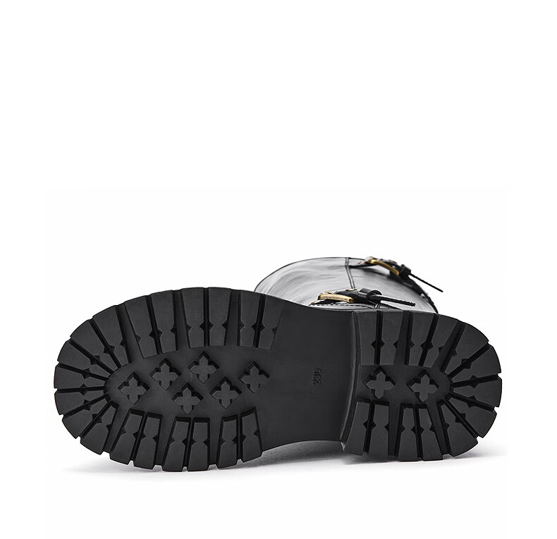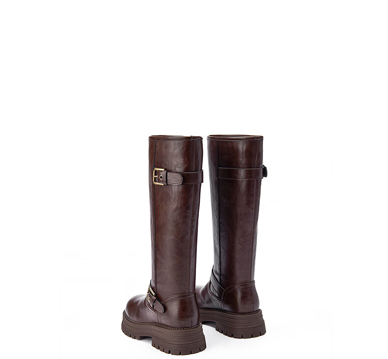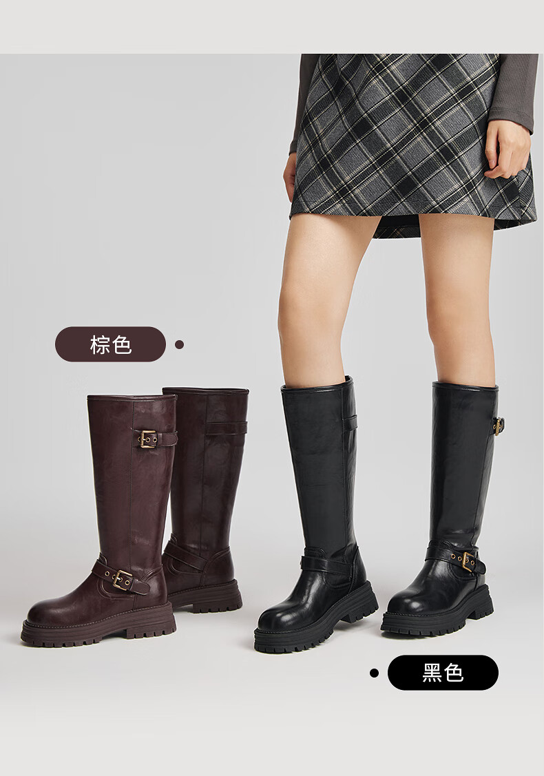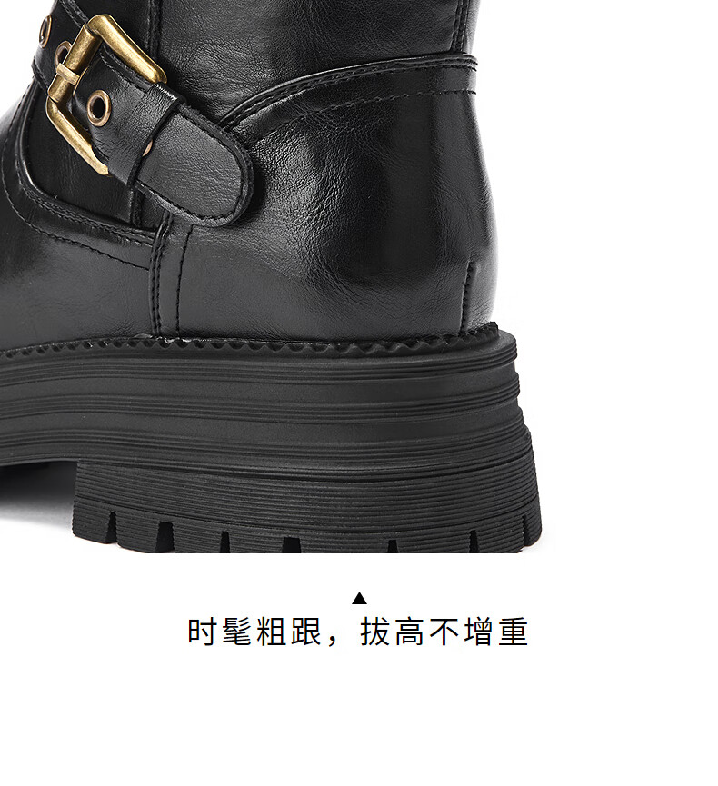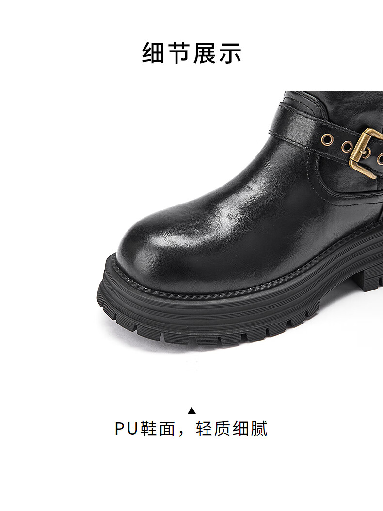 热风厚底复古骑士靴女2025年冬季新款百搭增高长筒靴子西部牛仔靴 01黑色 37