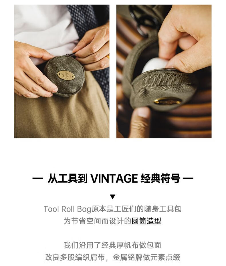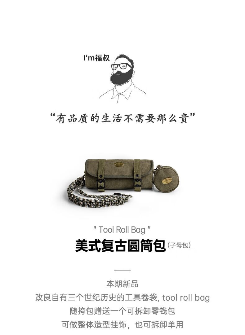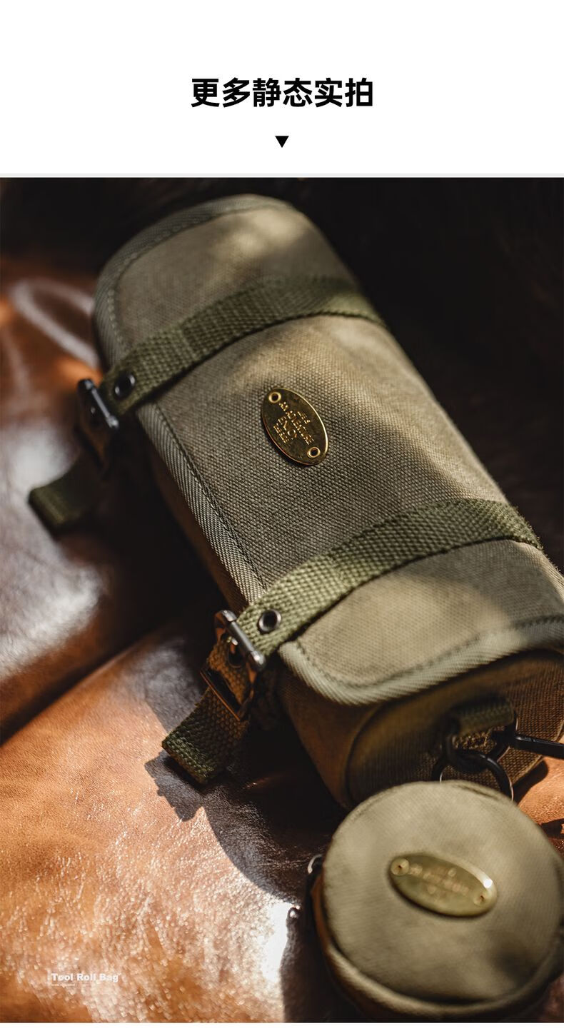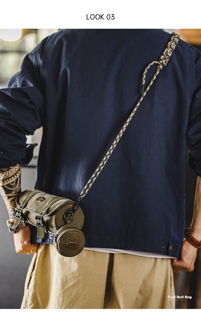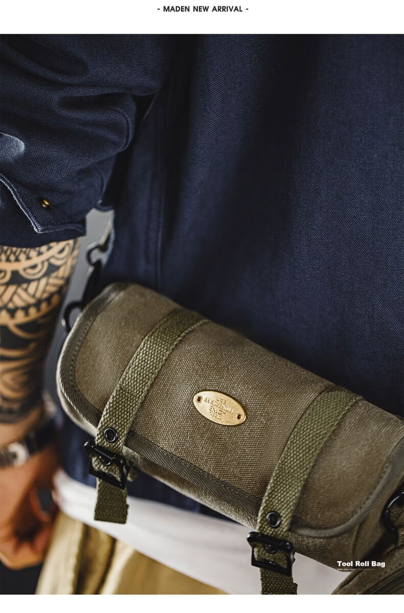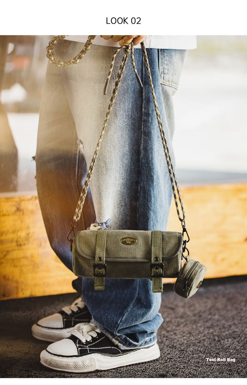 马登工装全棉帆布圆筒包通勤百搭斜挎包时尚子母零钱包男款单肩包 苔藓绿 (22.5cm x 14cm)