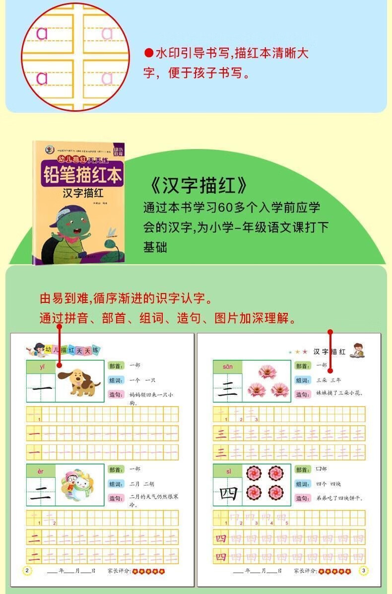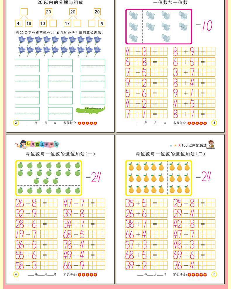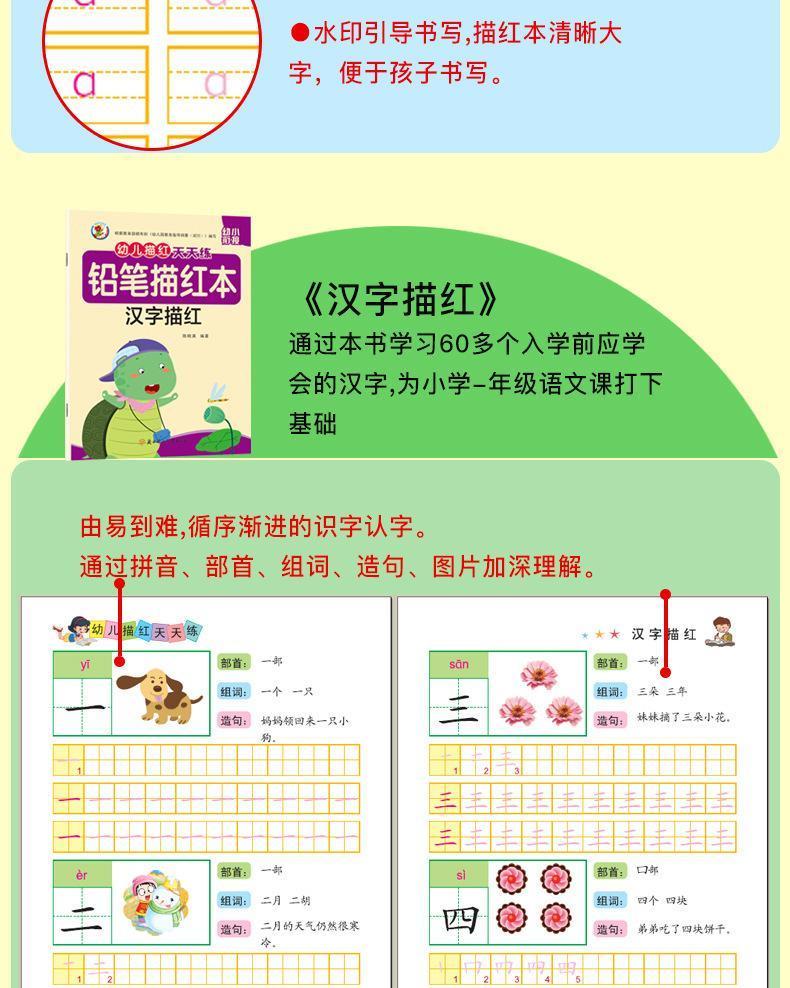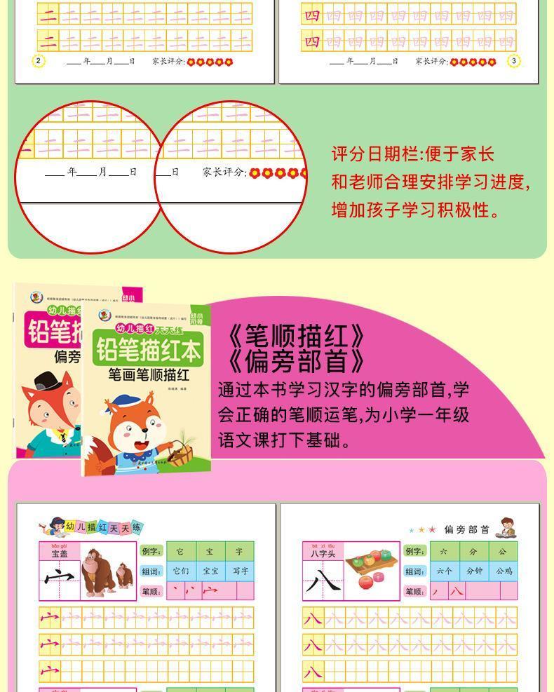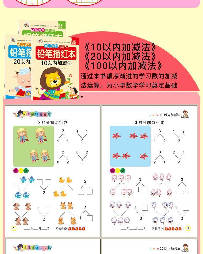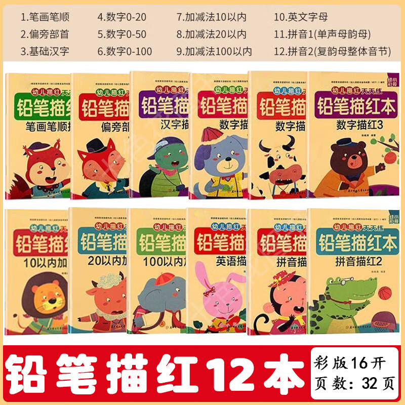 幼儿描红天天练幼小衔接数字拼音汉字笔画笔顺临摹练字帖幼儿园数学专项练习10以内20以内100以内加减法 【描红爆款】常用12本套装