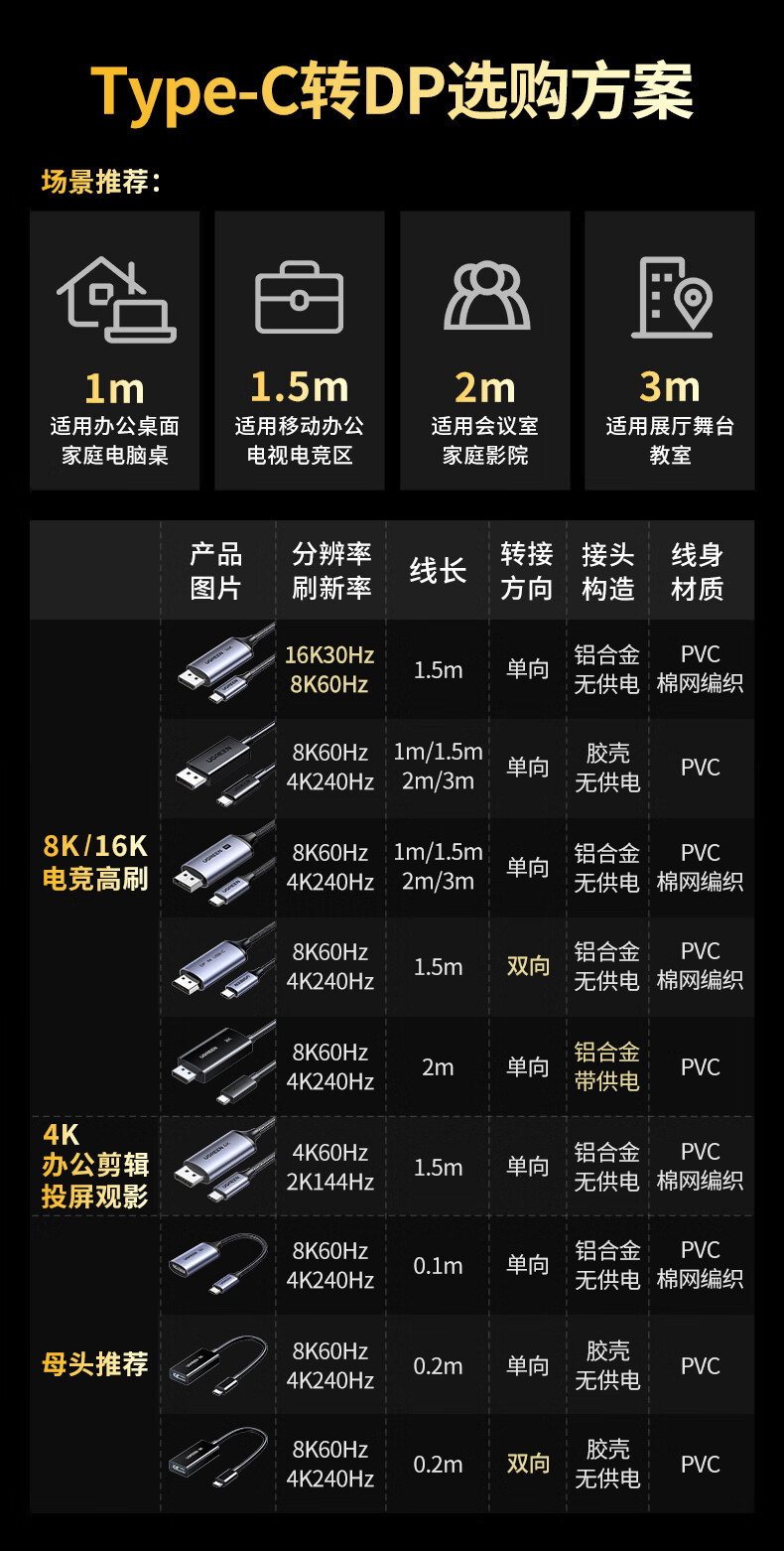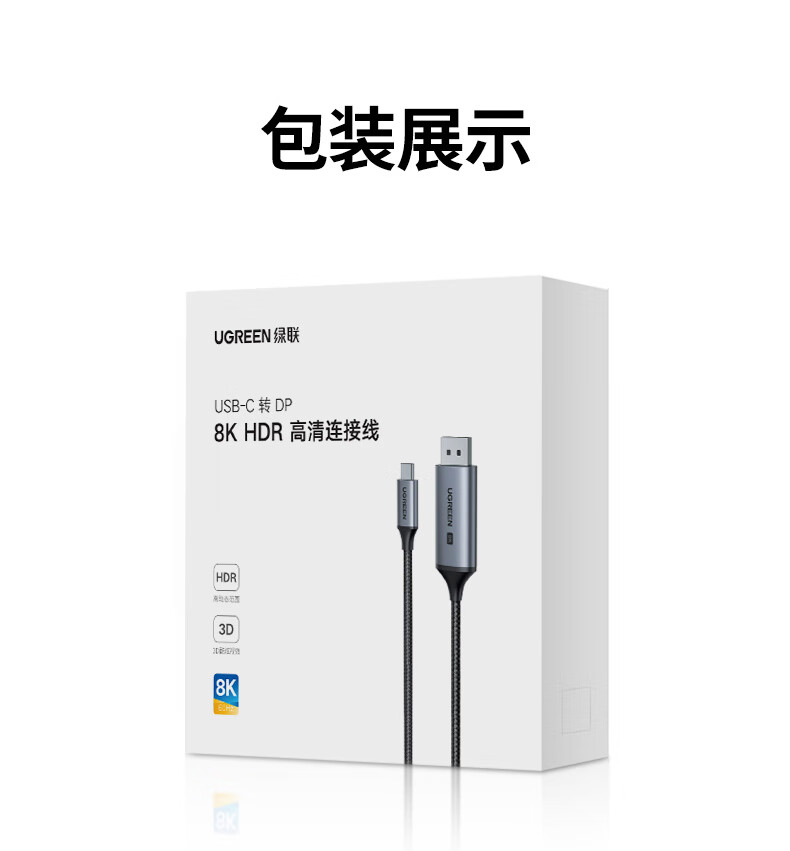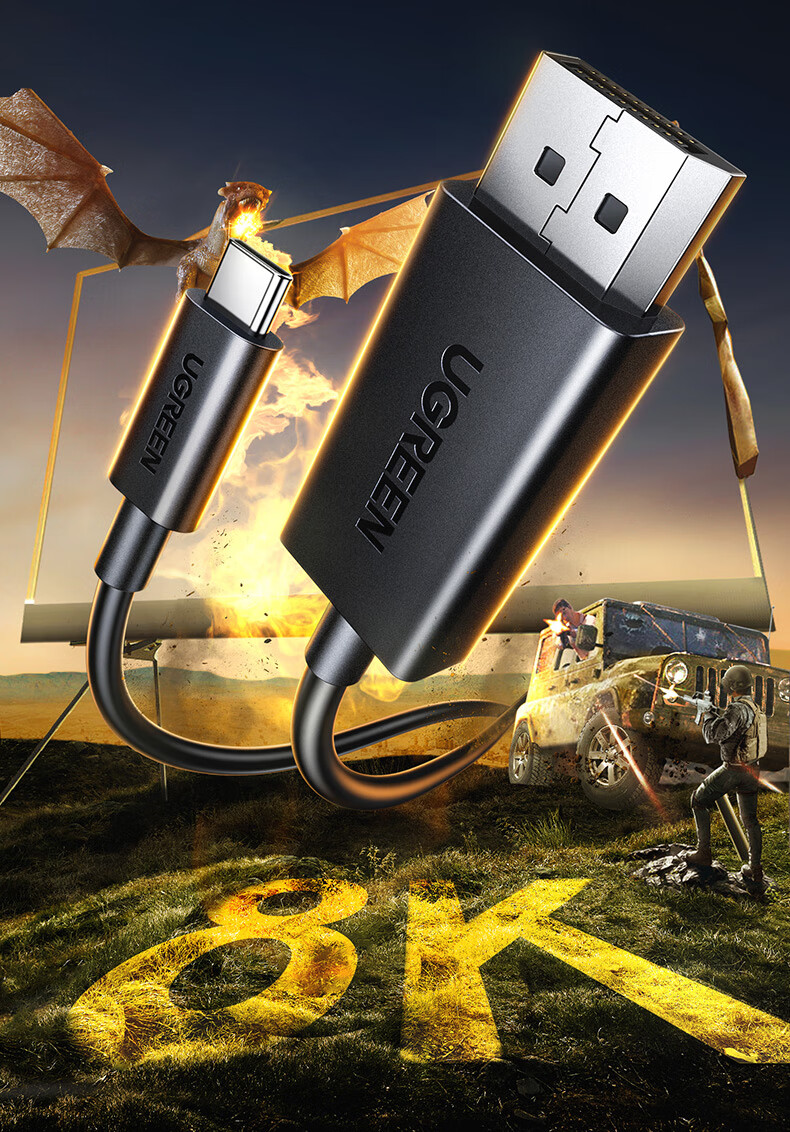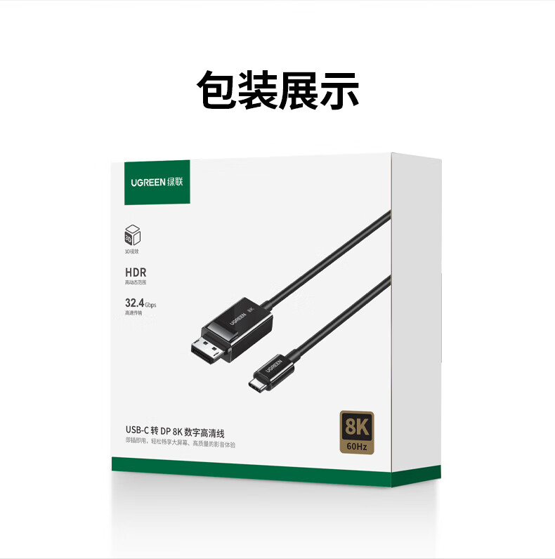 绿联Type-C转DP1.4转接头投屏转换器线8K60Hz 4K240Hz适用 IPhone macmini ipad air 笔记本电脑 8K60Hz【热卖款】 1米