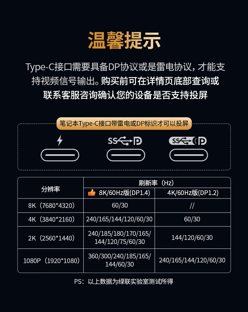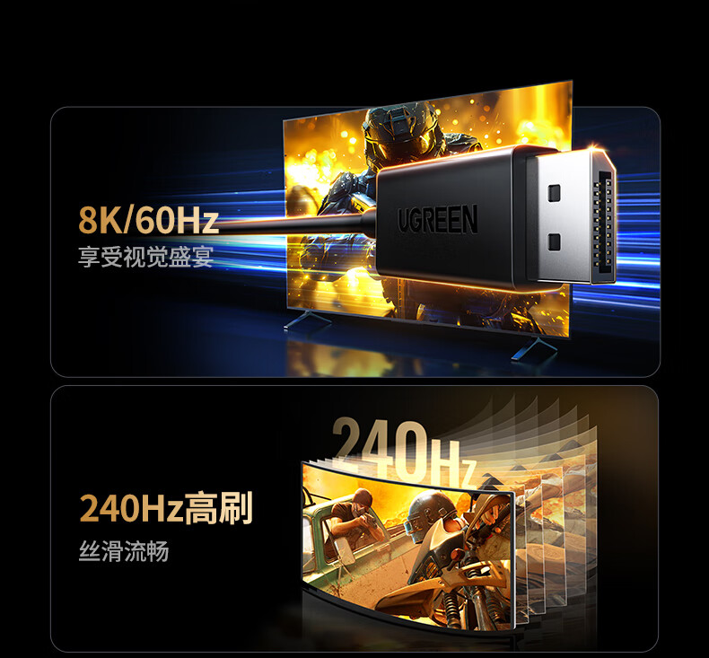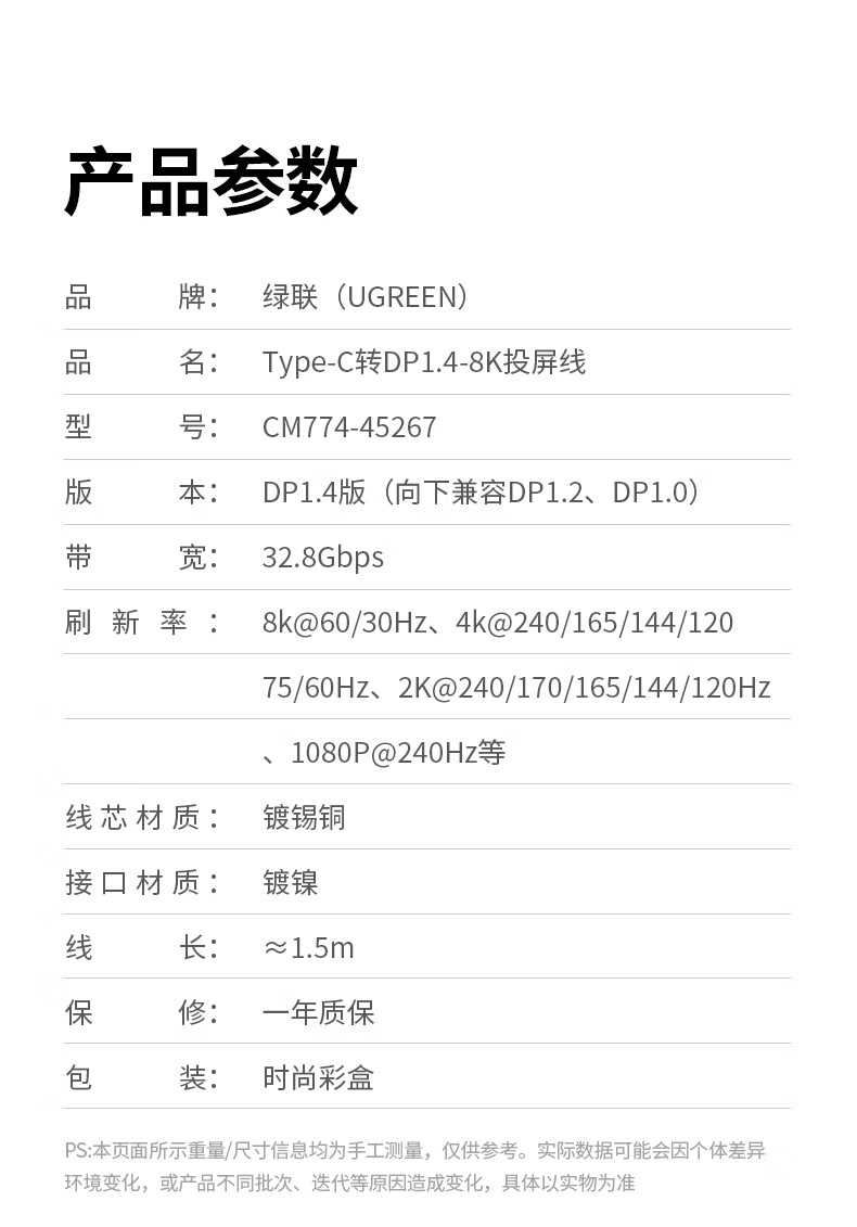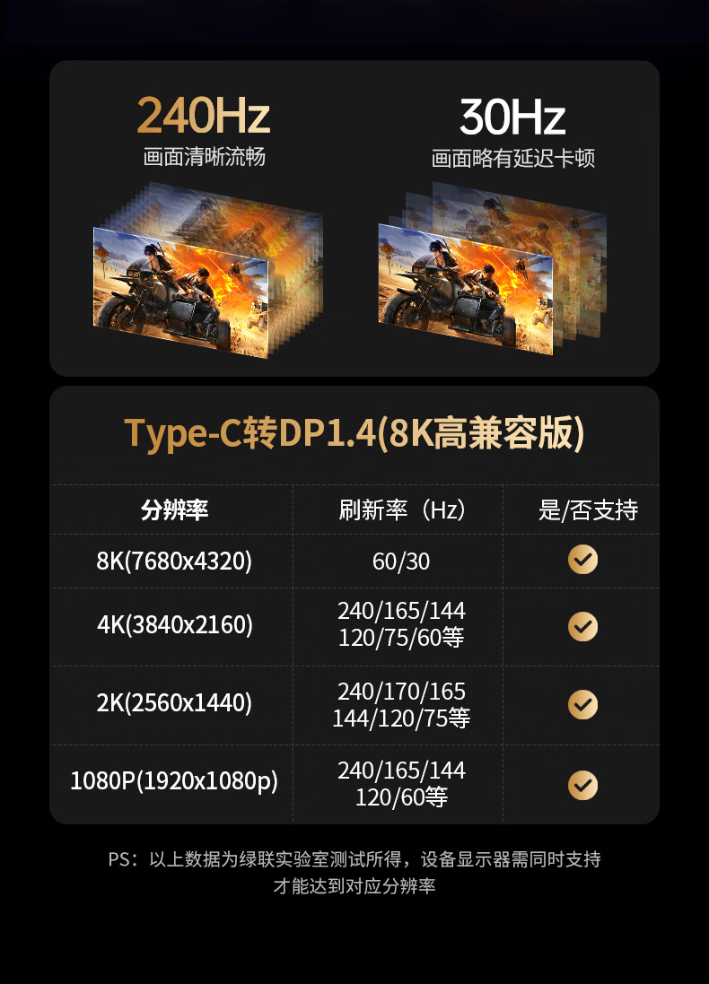 绿联Type-C转DP1.4转接头投屏转换器线8K60Hz 4K240Hz适用 IPhone macmini ipad air 笔记本电脑 8K60Hz【热卖款】 1米