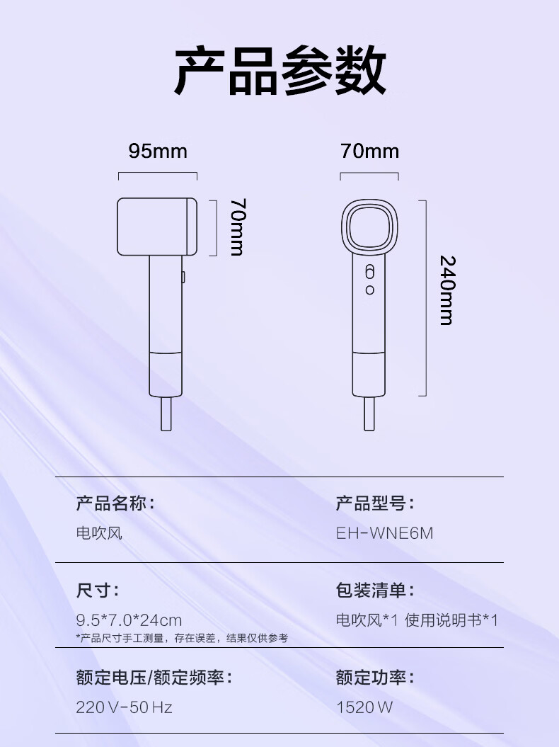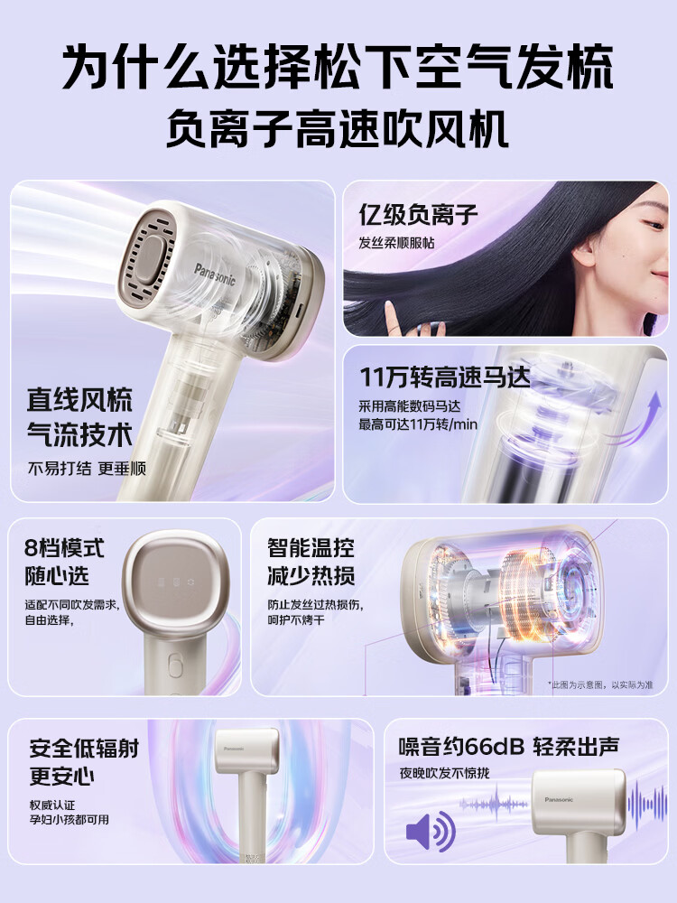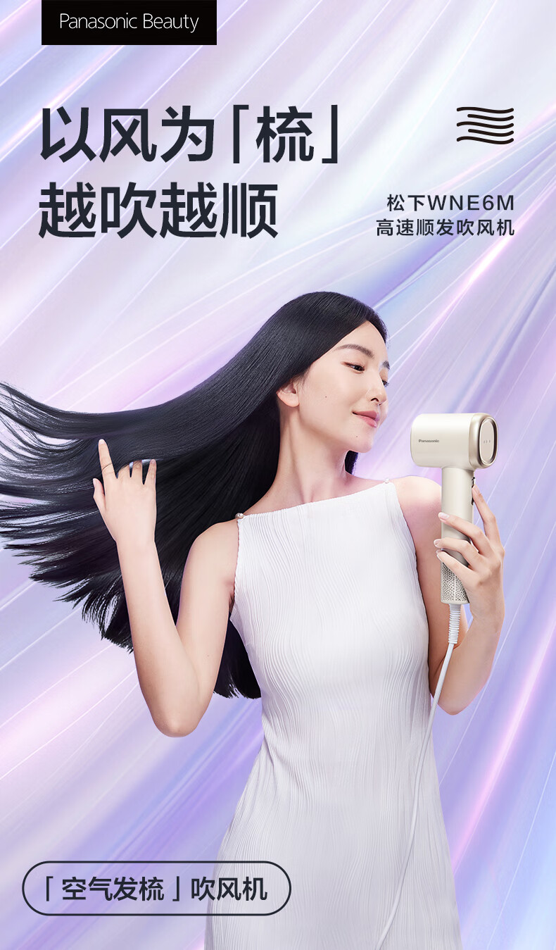 松下(Panasonic)空气发梳负离子高速护发吹风机家用低噪速干电吹风送女生新年情人节礼物年会奖品奶茶色EH-WNE6M