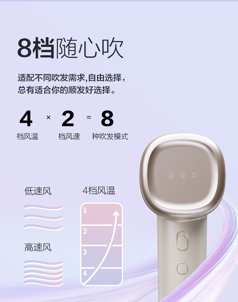 美的(Midea)1亿负离子电吹风 护发不伤发吹风机 大功率快干家用吹风筒FJ208极地白1800W 新年礼物 情人节礼物