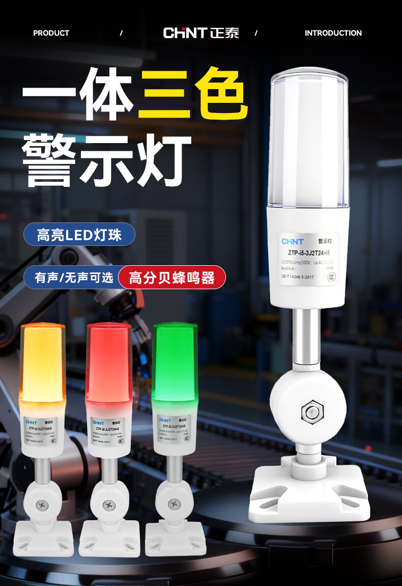 正泰(CHNT)三色警示灯 一体式LED报警器信号数控机床设备指示灯 24V折叠款 ZTP-i5一体三色灯