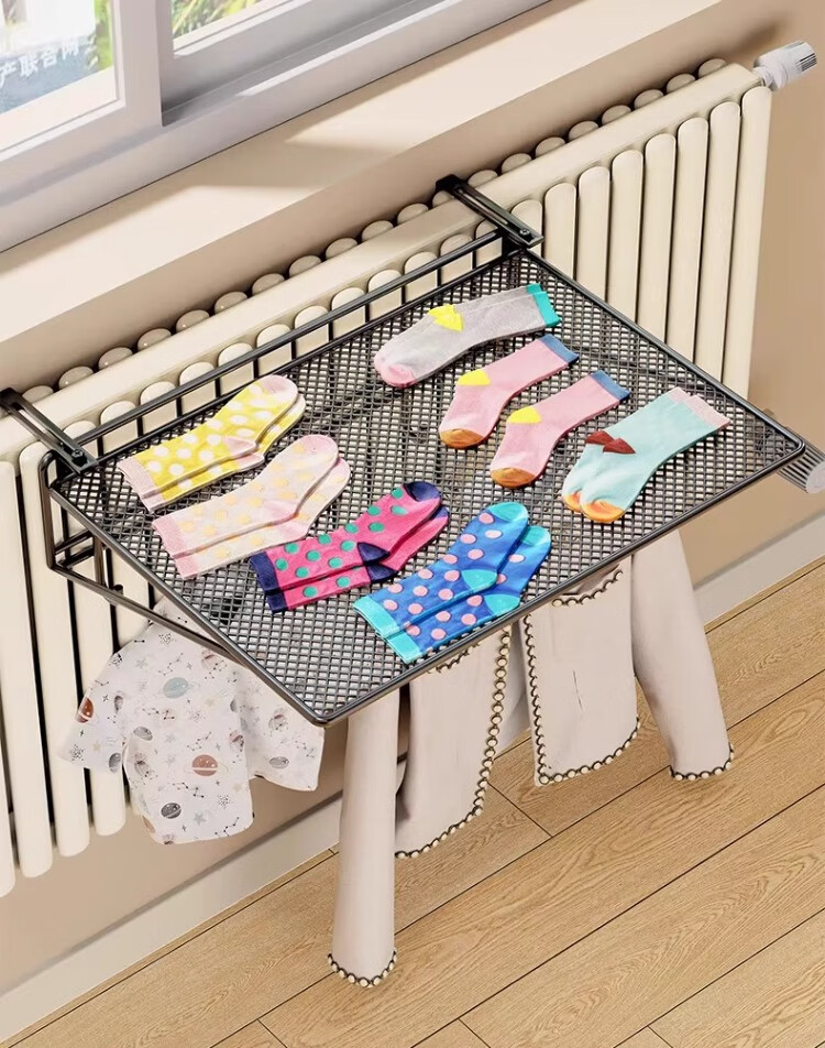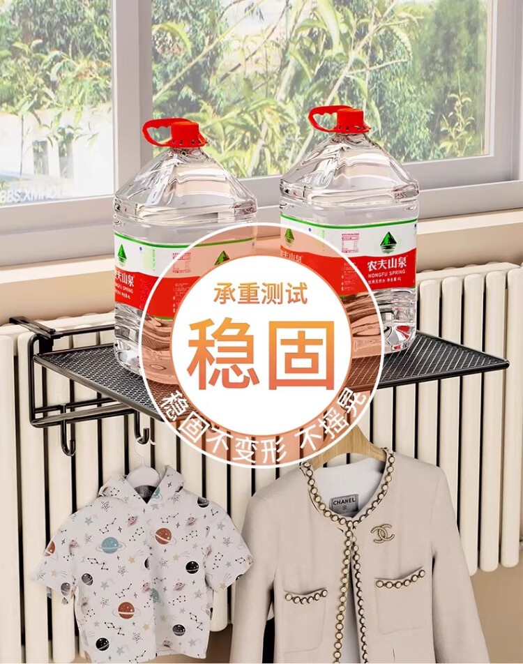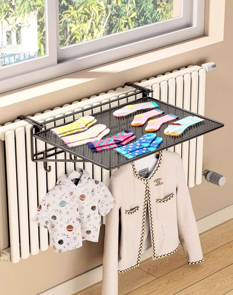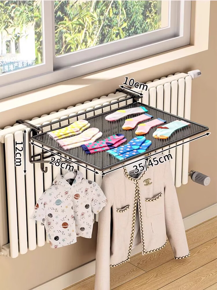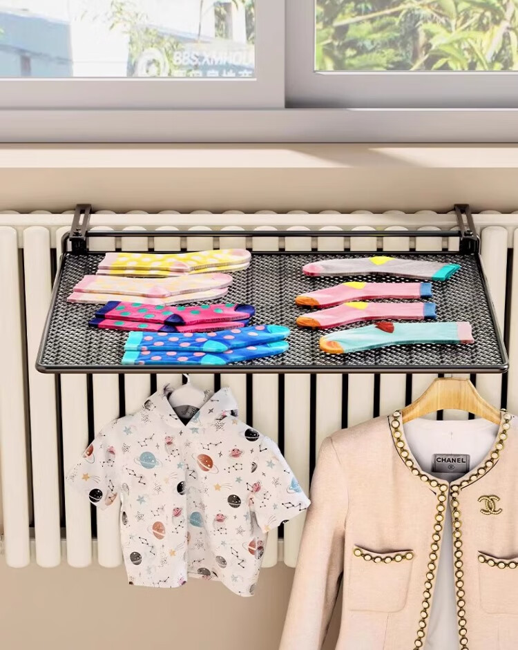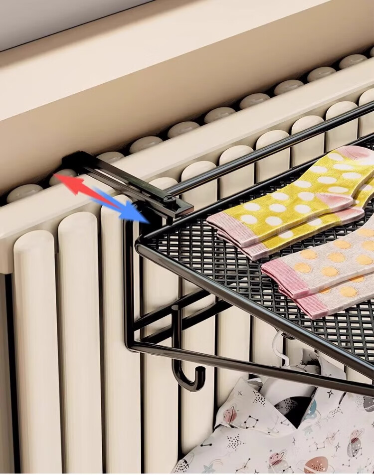 尔思家暖气片置物架晾衣架专用神器烘干暖气管上方晾晒架可调节整理架 黑色大号
