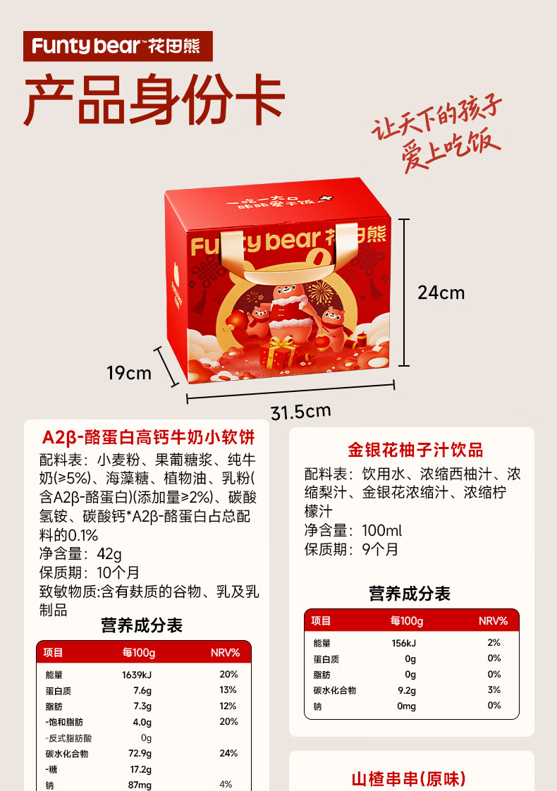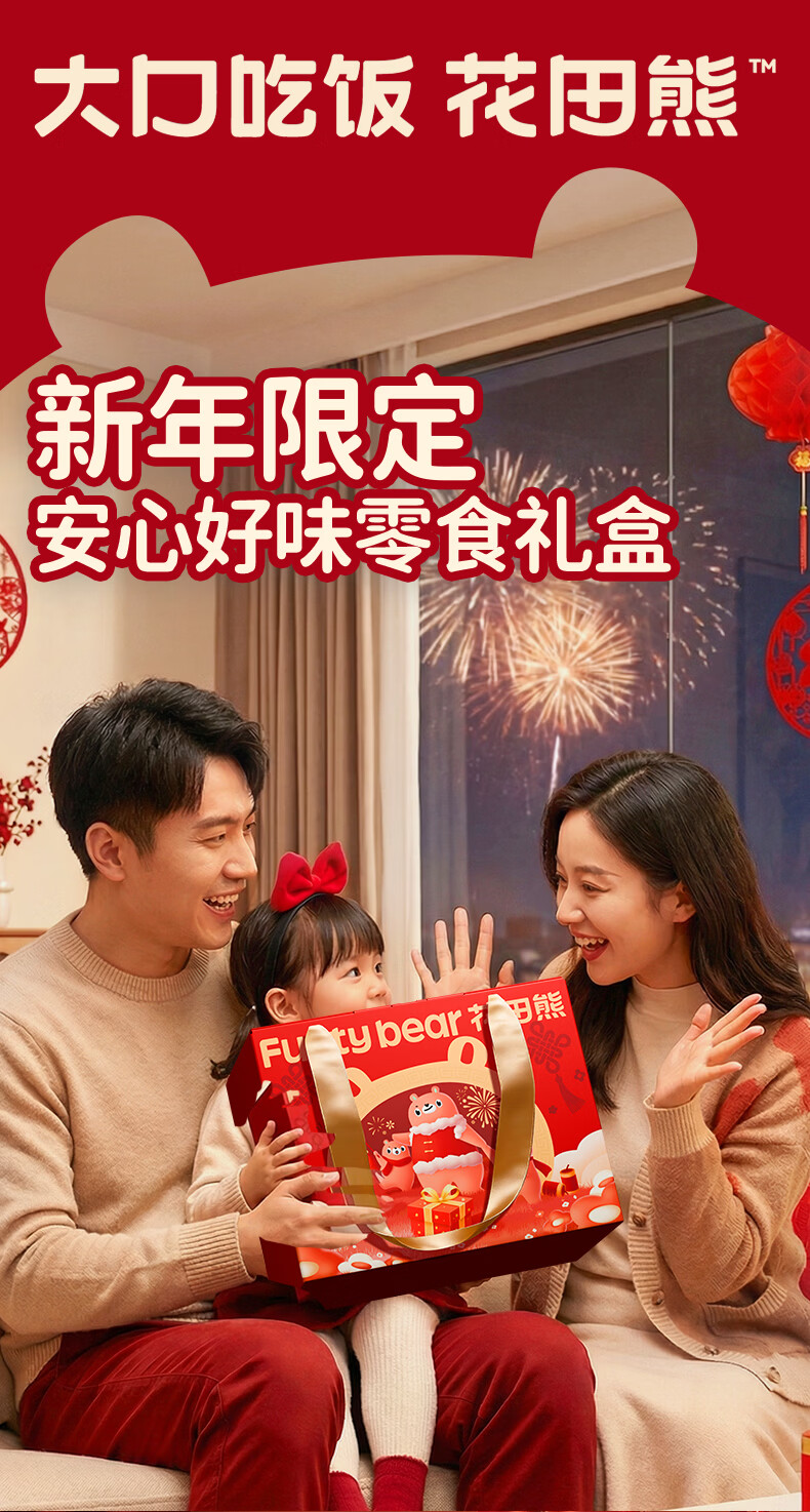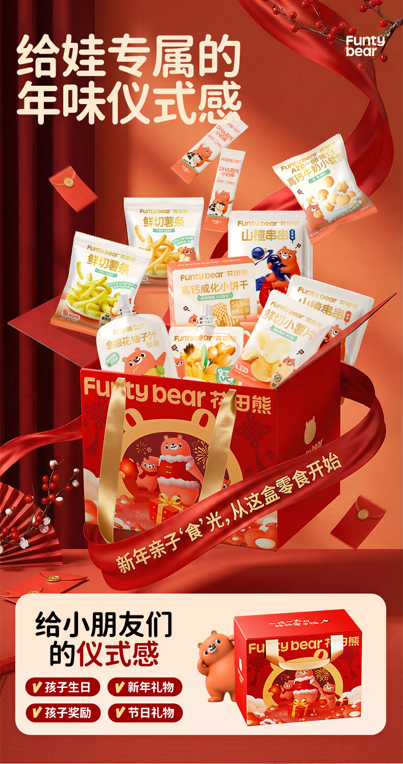 花田熊儿童零食年货节礼盒健康解馋零食大礼包新年送礼礼盒装 【年货好礼】儿童新年零食礼盒750g*1箱