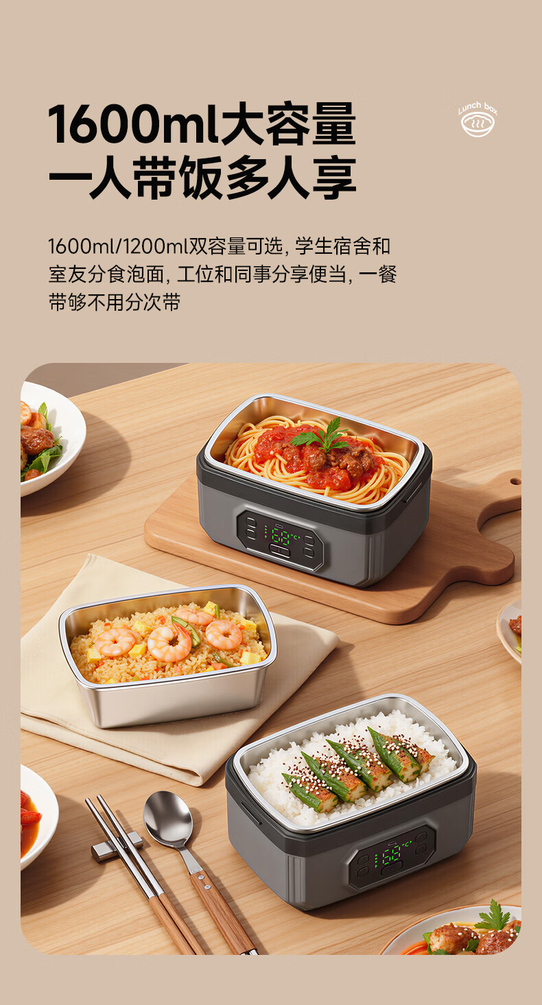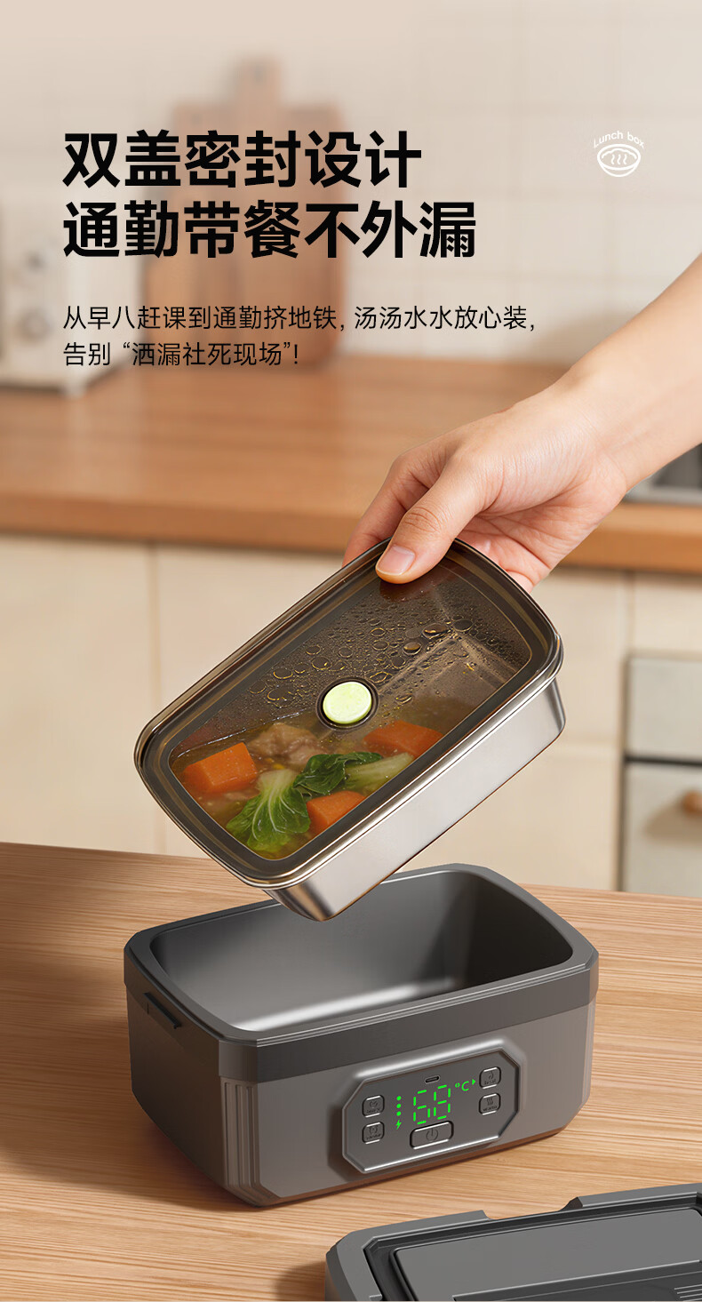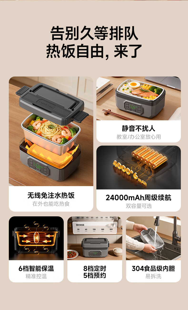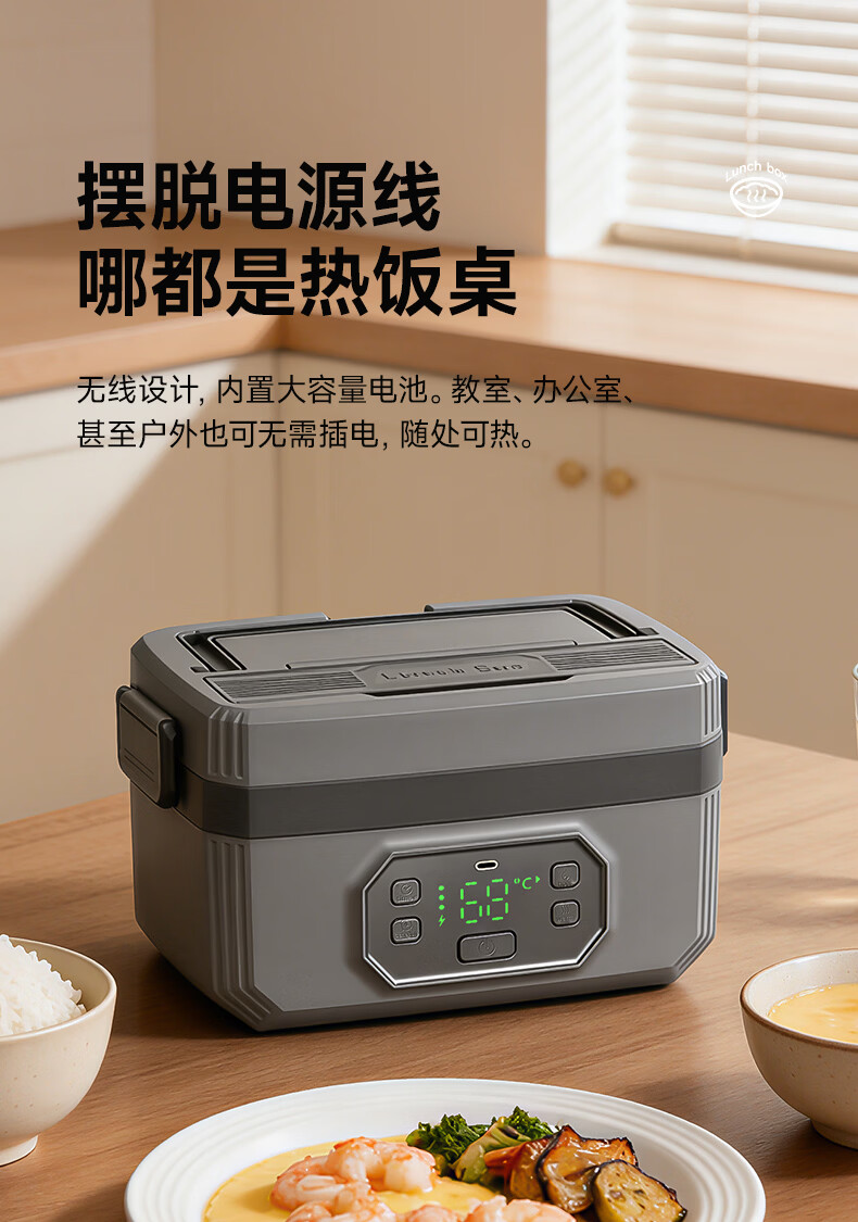 GBTW无线加热饭盒学生上班便携不插电免注水充电自热保温大容量电热饭盒 1.6L 【快充+预约定时+6档保温】