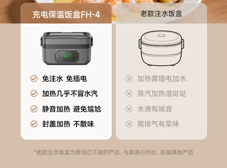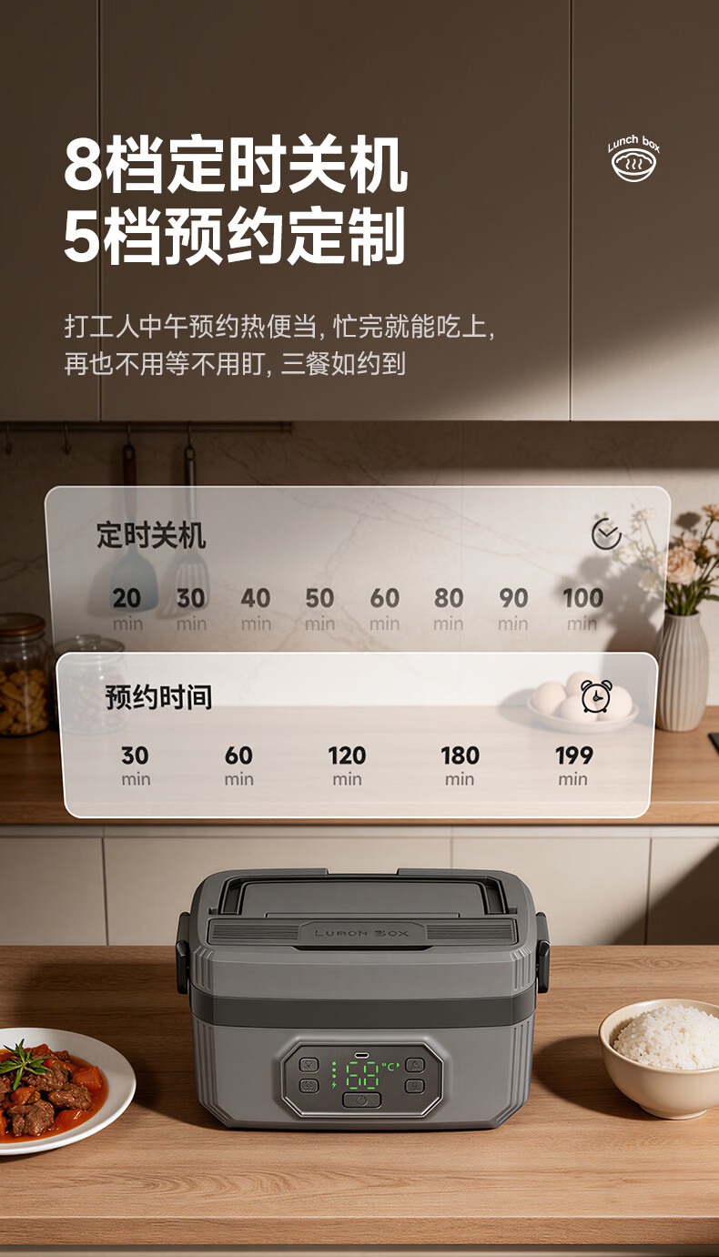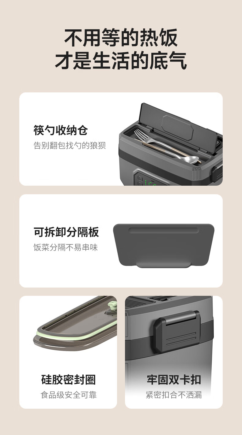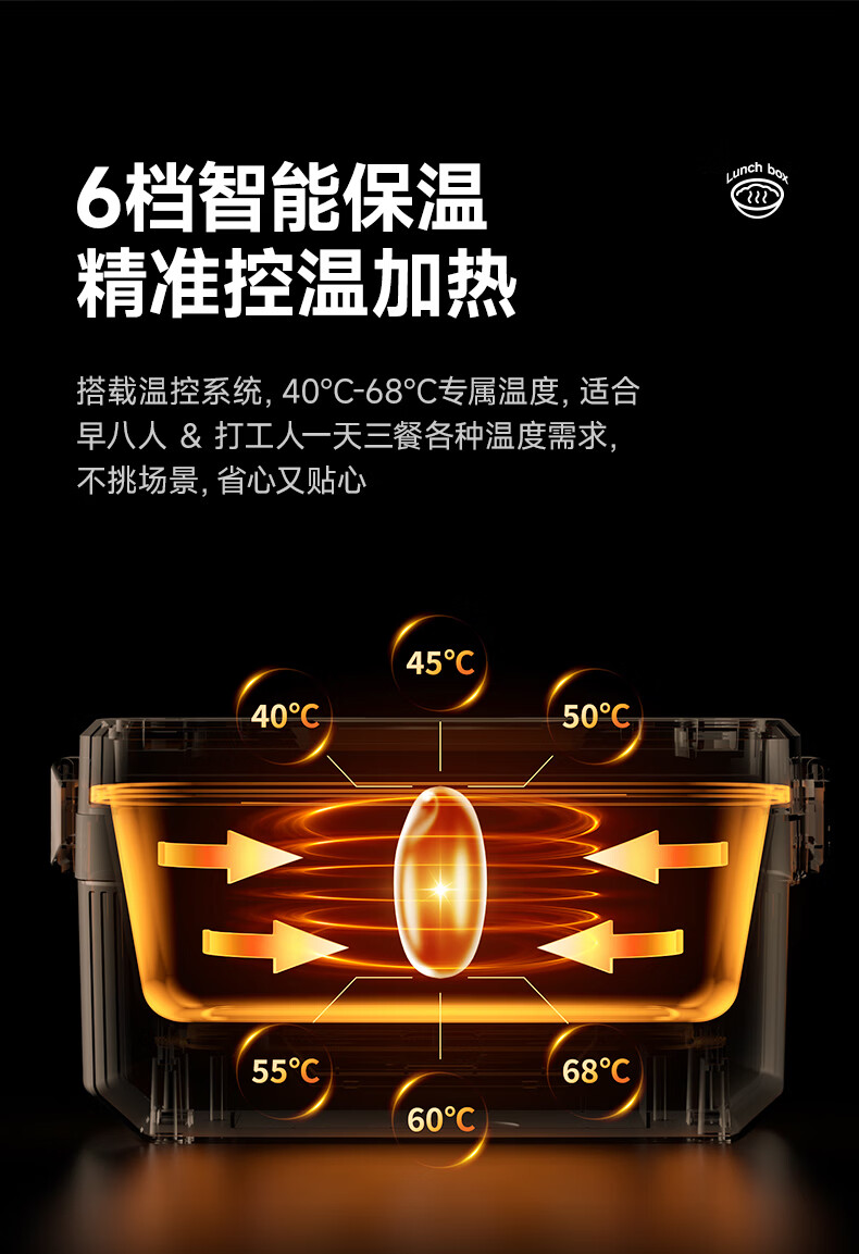 GBTW无线加热饭盒学生上班便携不插电免注水充电自热保温大容量电热饭盒 1.6L 【快充+预约定时+6档保温】