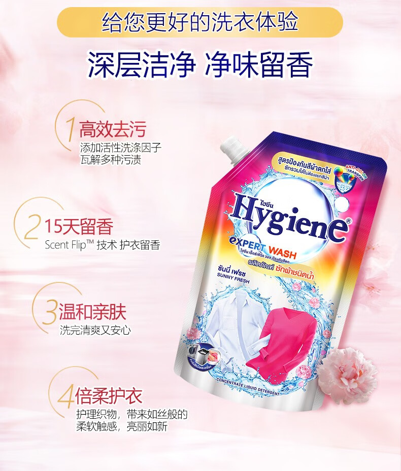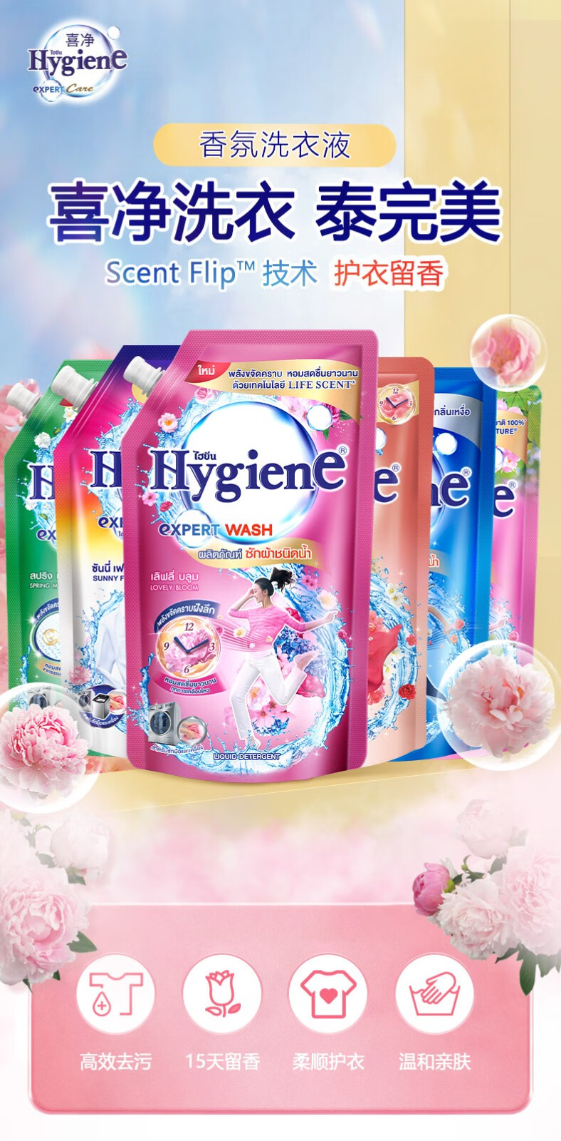 喜净Hygiene泰国原装进口洗衣液深层洁净去污柔顺温和亲肤留香 混合香味12包 35ml*12包
