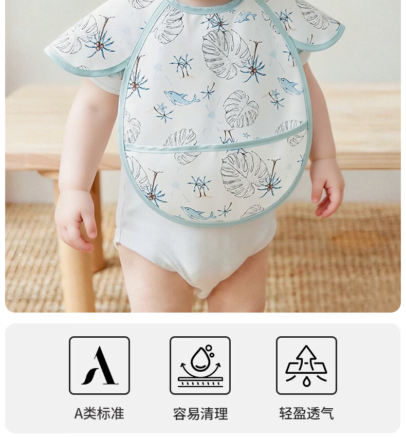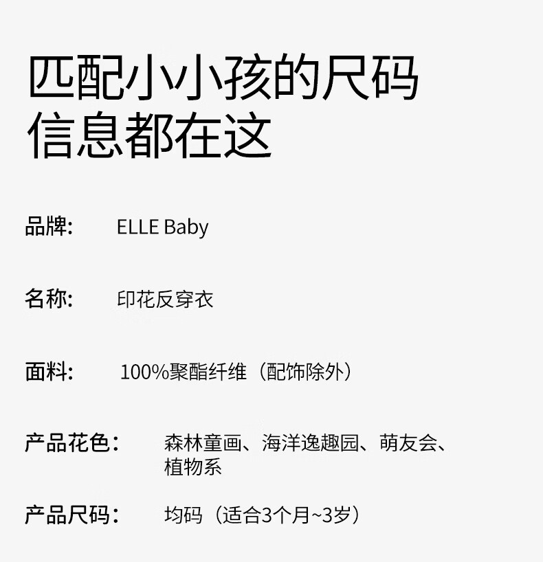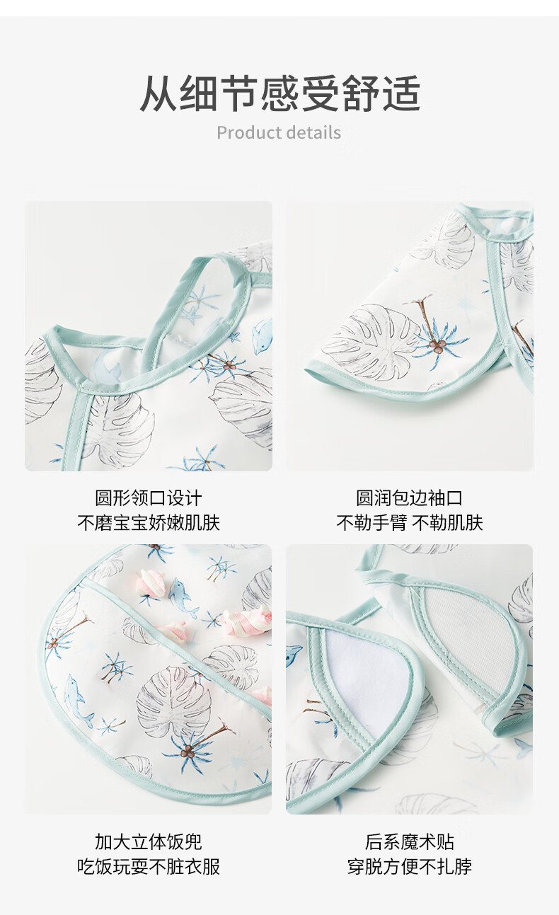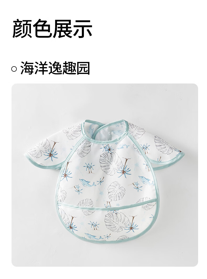 ELLE BABY婴儿罩衣宝宝吃饭衣无袖反穿设计防油防污透气可机洗围兜画画衣 植物系 均码【建议3月-3岁】