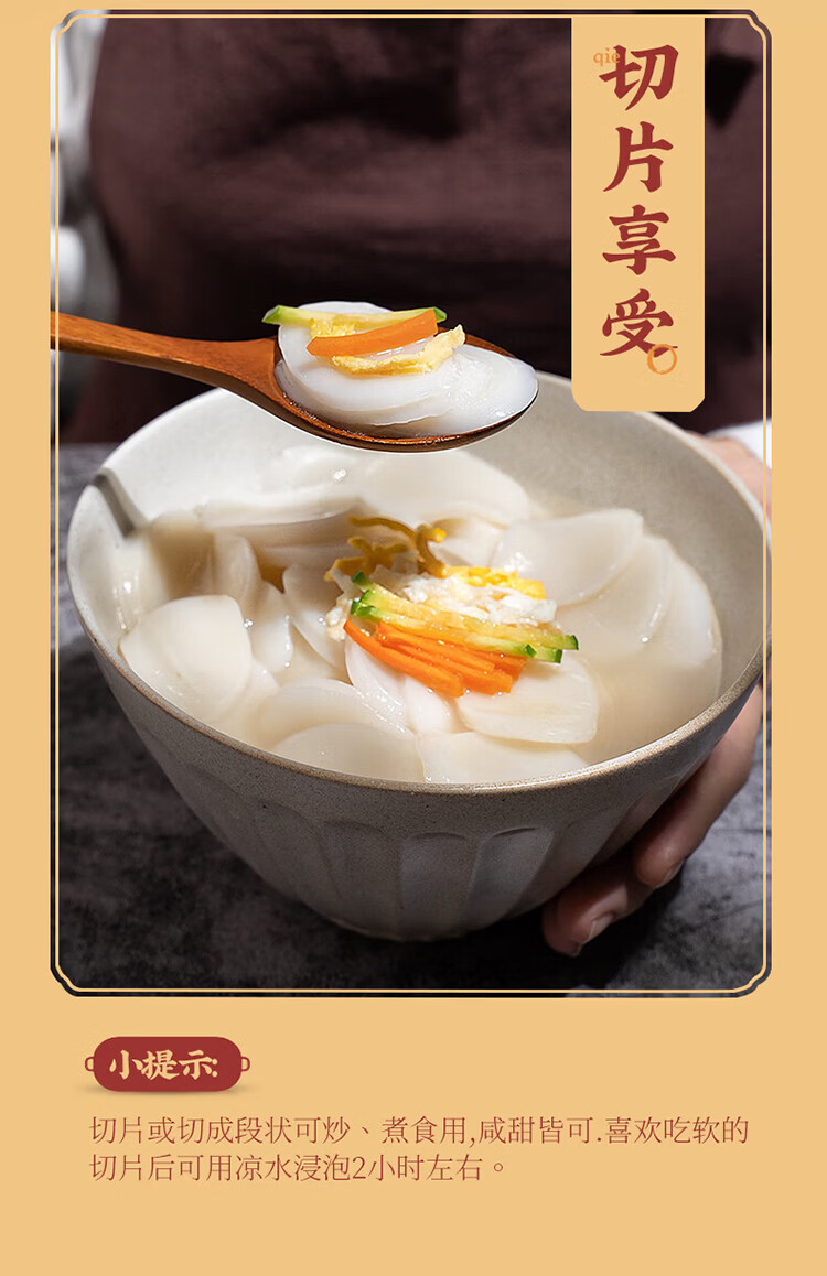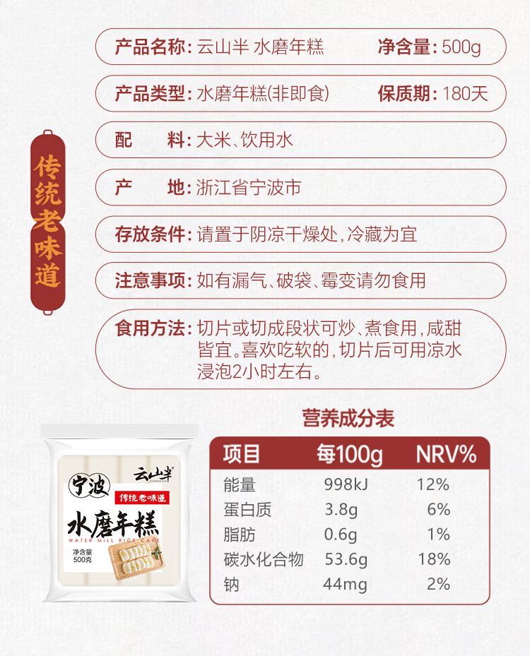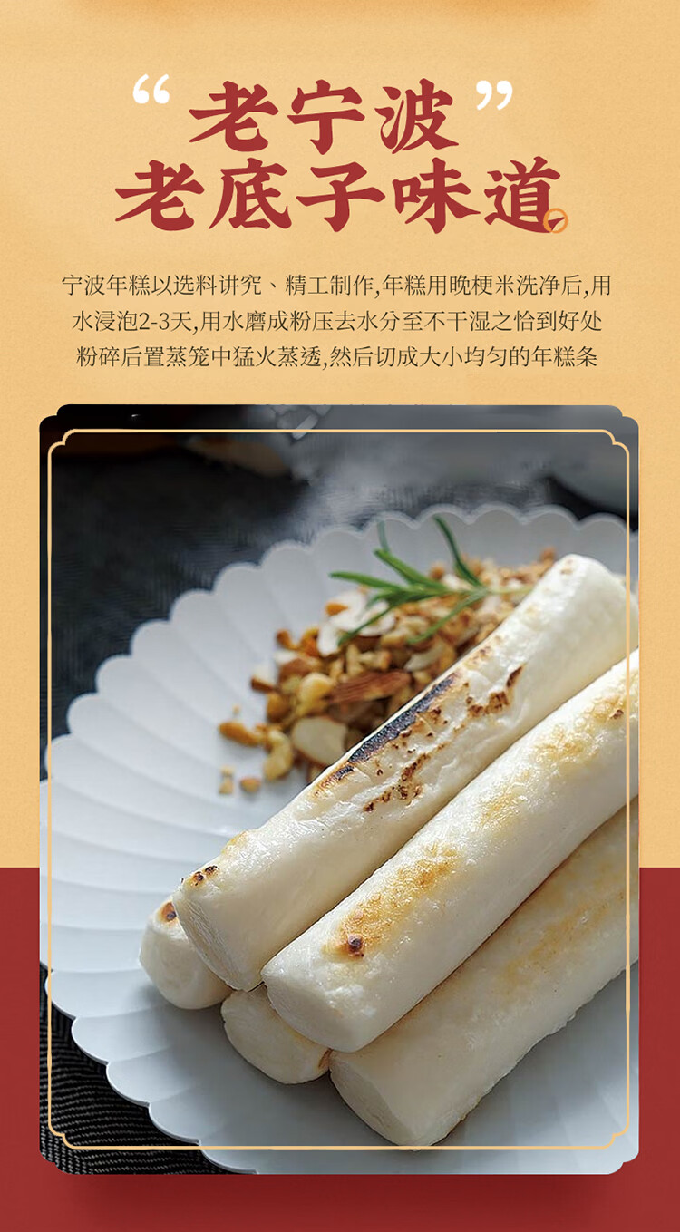 云山半宁波水磨年糕条炒年糕条方便速食材宁波慈城特产部队火锅配料500g