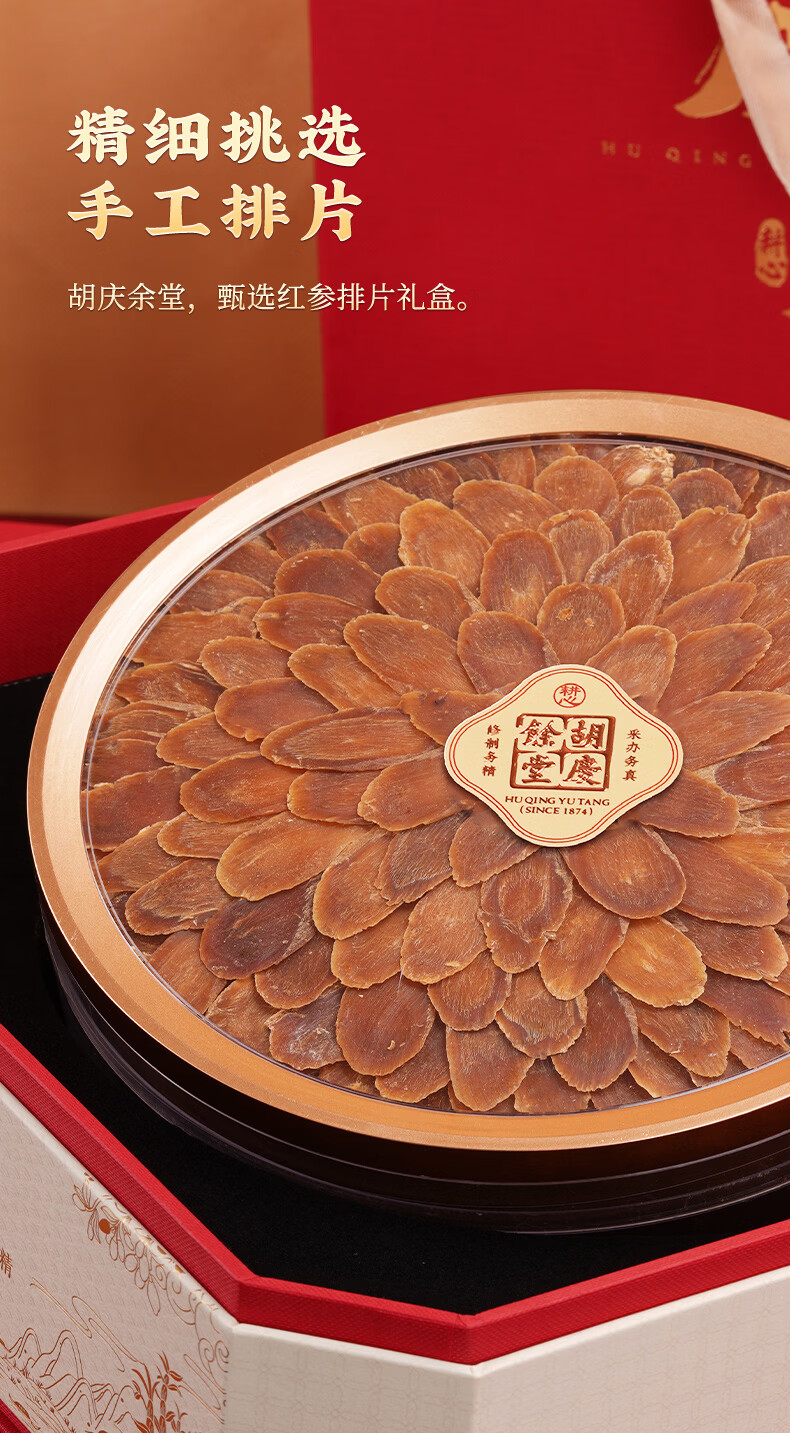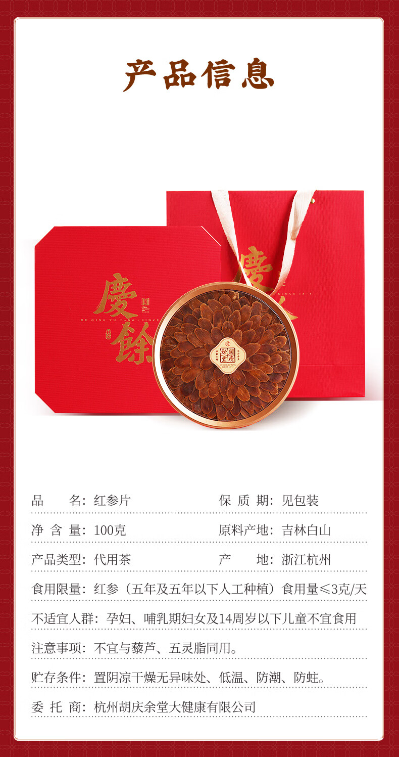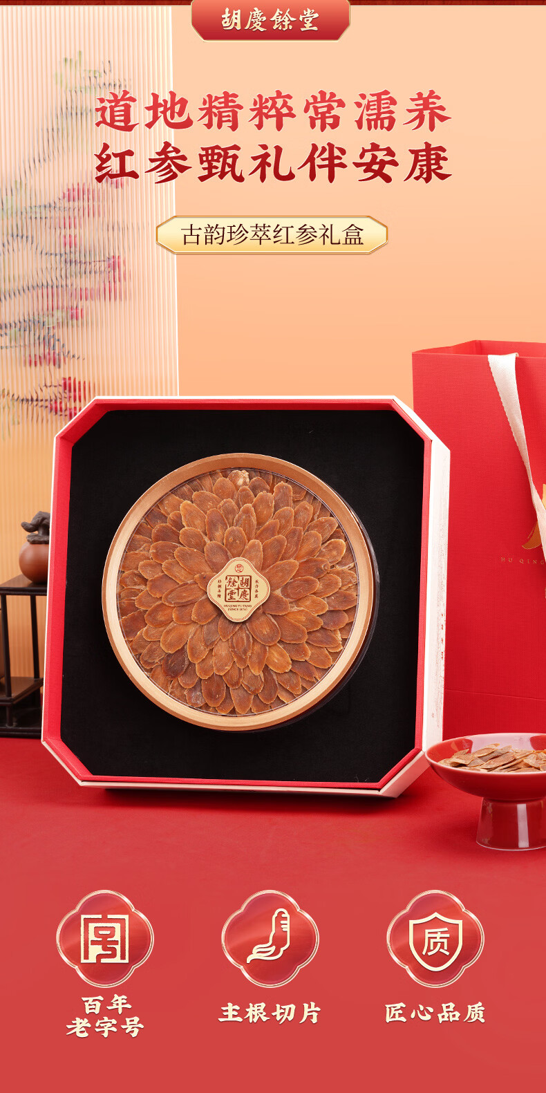 胡庆余堂长白山红参片古韵礼盒100g道地选材主根切片 新年礼物年货营养品 古韵红参礼盒 100g*1盒