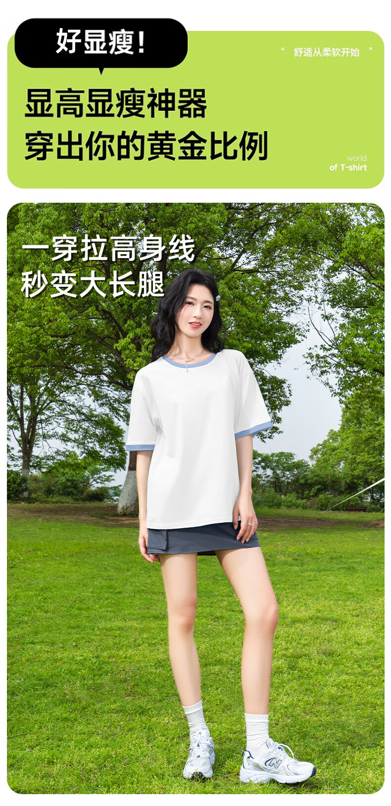 真维斯(Jeanswest)纯棉短袖t恤衫女夏季2026新款小个子设计感半袖体恤宽松撞色上衣 天蓝 牵手小饼干 S