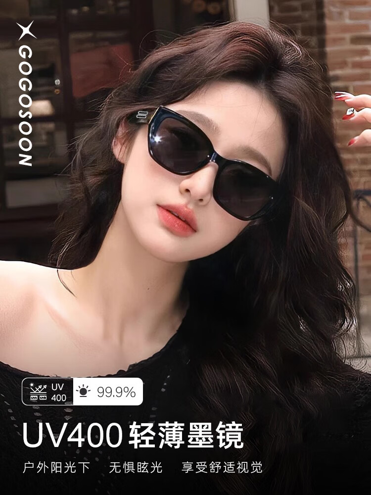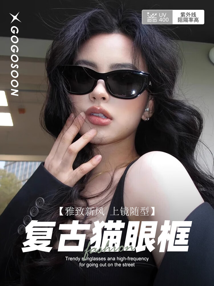 GOGOSOON25新款猫眼墨镜女款防紫外线复古大框太阳眼镜男防晒高级感方圆脸