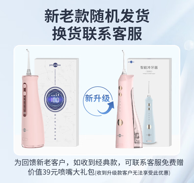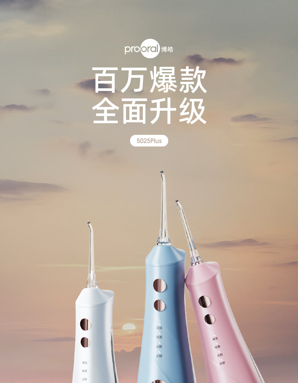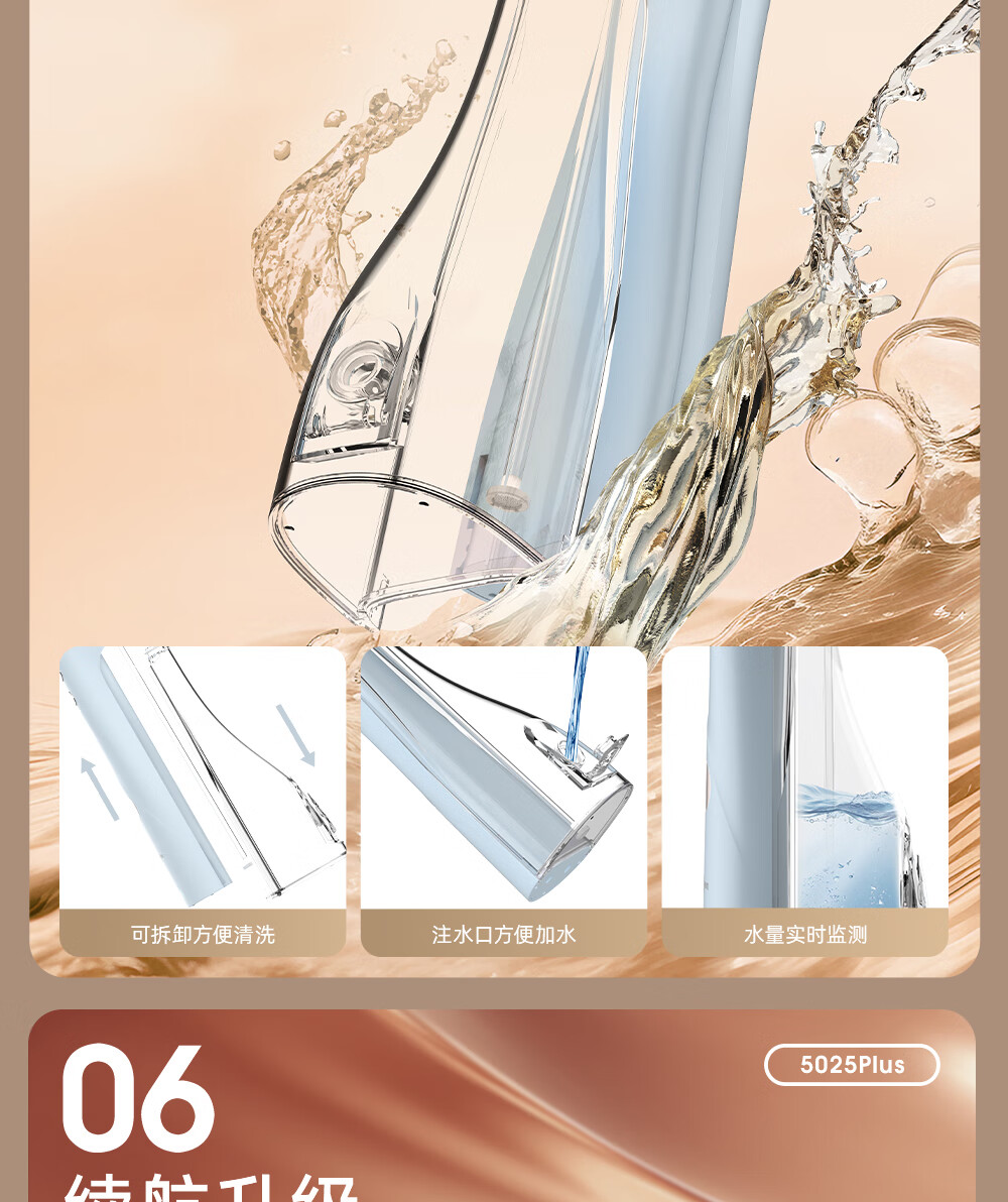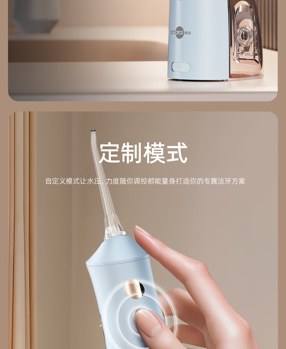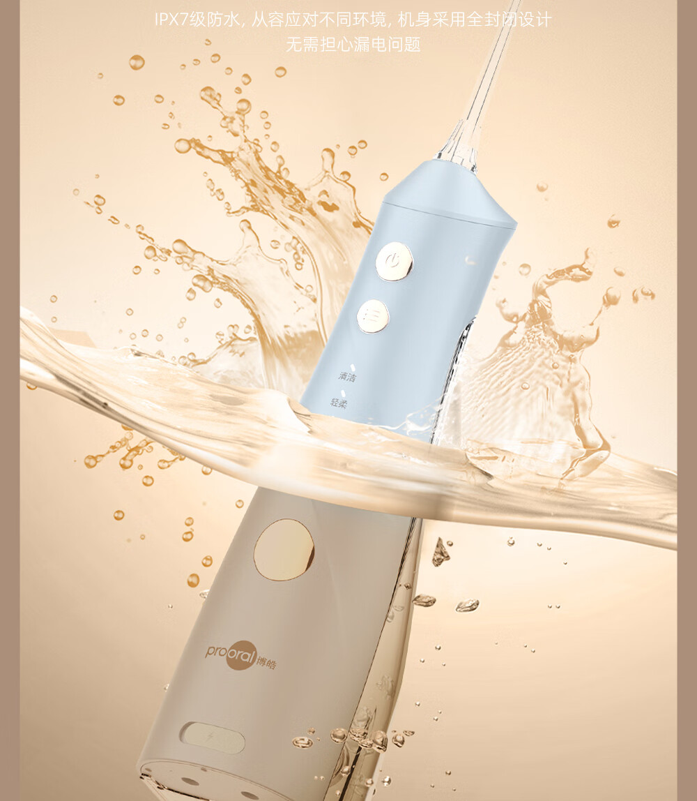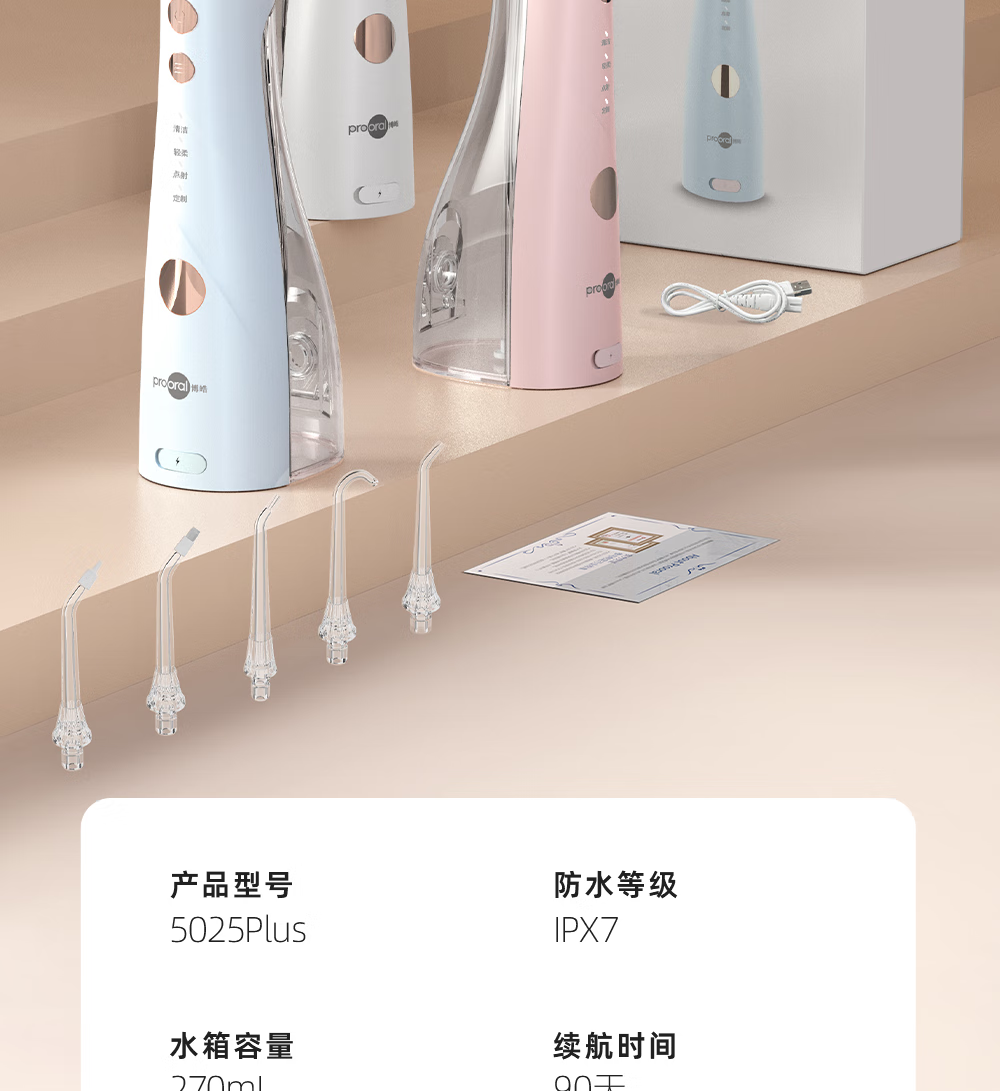 博皓(prooral)手持立式冲牙器 水牙线洁牙器大水箱牙齿清洁器智能屏显 5025Plus黛粉【中秋送礼】