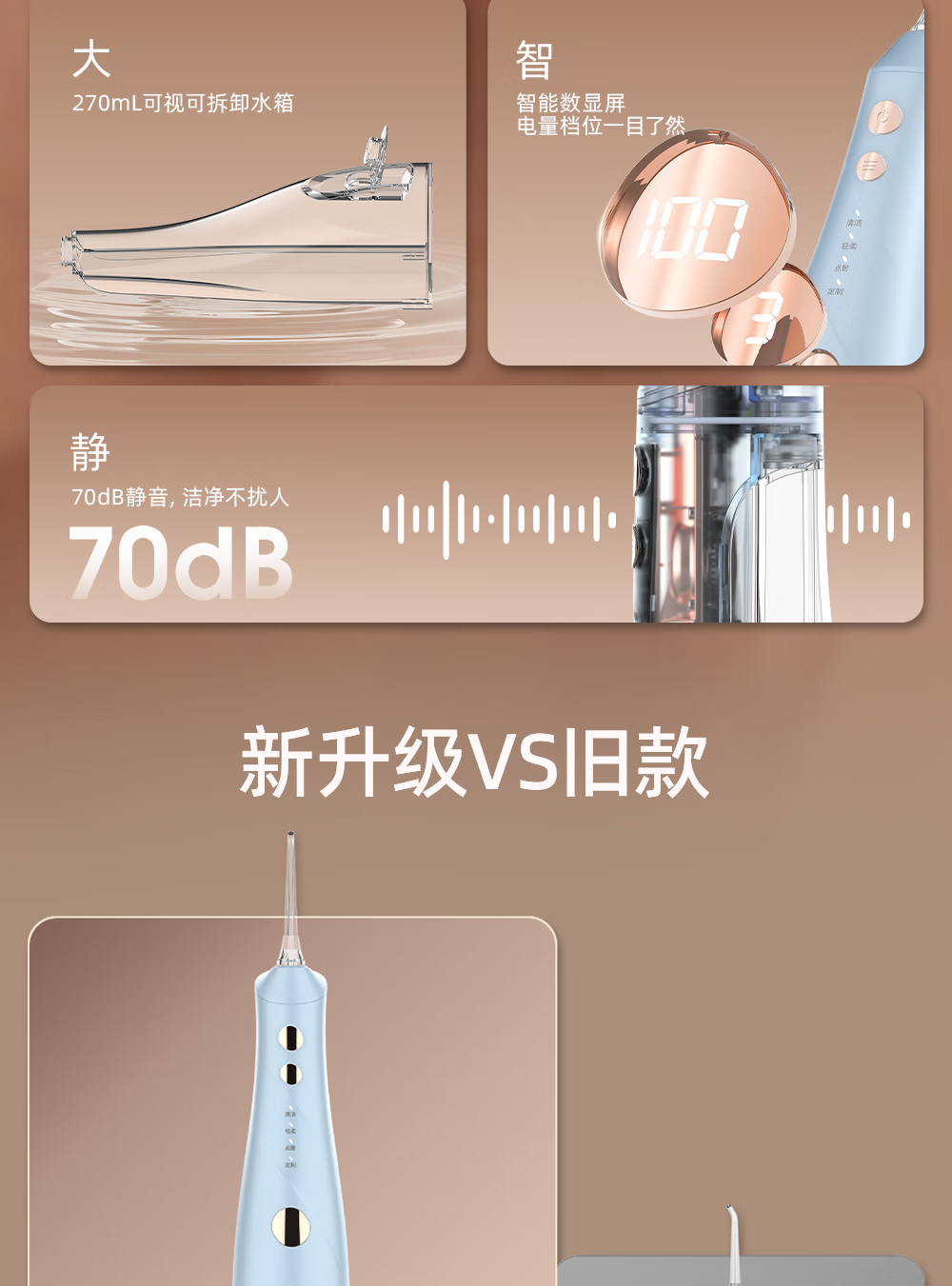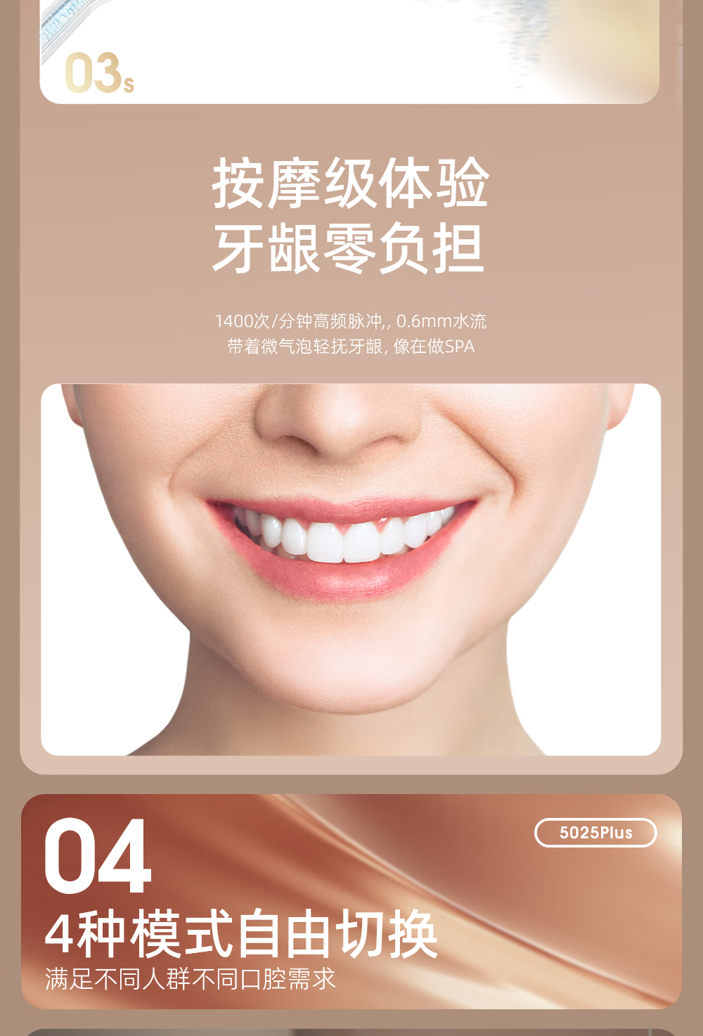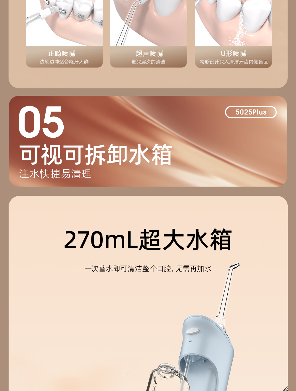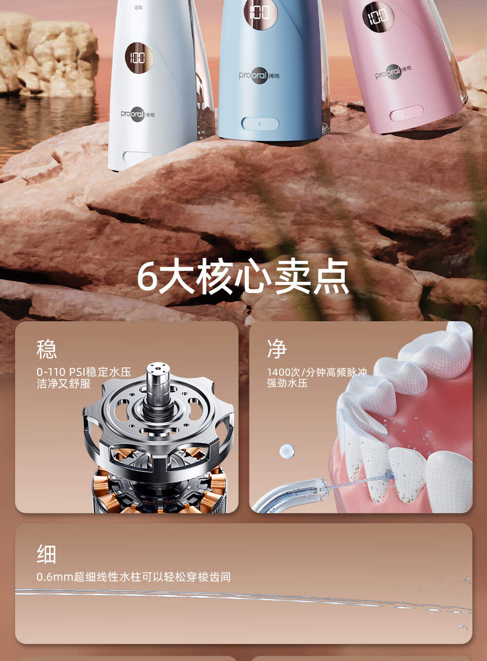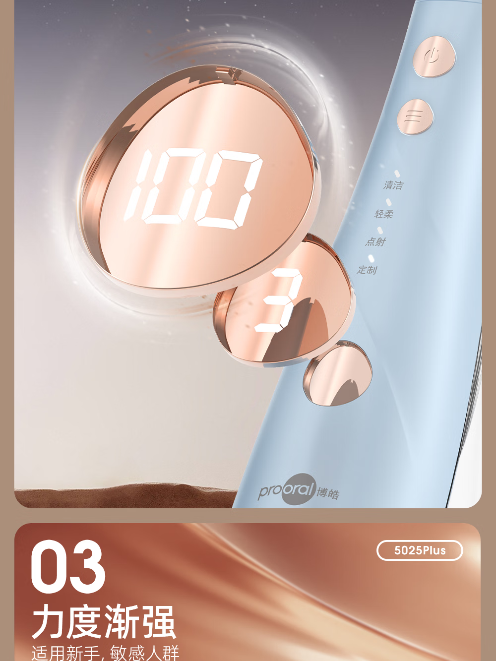 博皓(prooral)手持立式冲牙器 水牙线洁牙器大水箱牙齿清洁器智能屏显 5025Plus黛粉【中秋送礼】