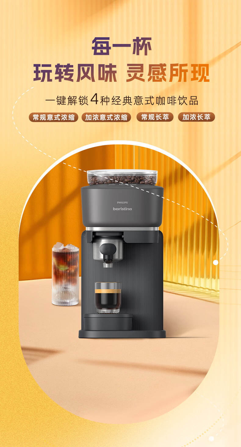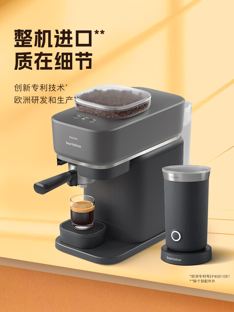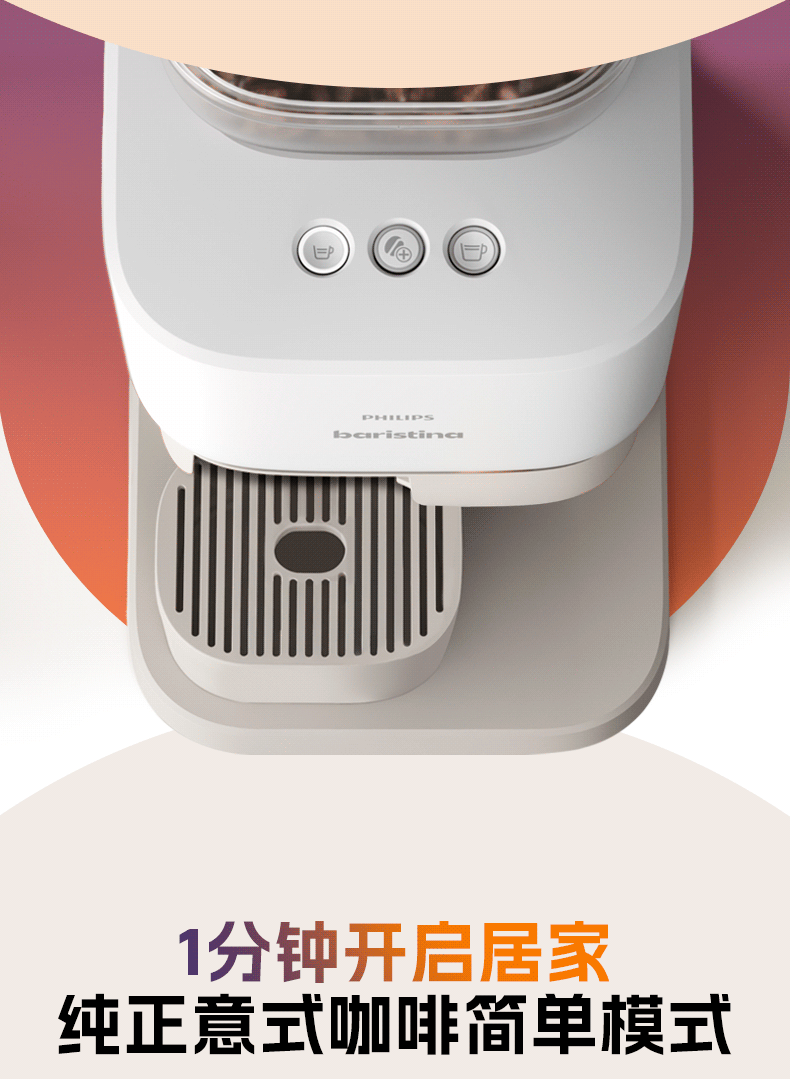 飞利浦(PHILIPS)【政府补贴】Baristina新型意式美式咖啡机 全自动研磨一体机家用咖啡机BAR系列奶咖版