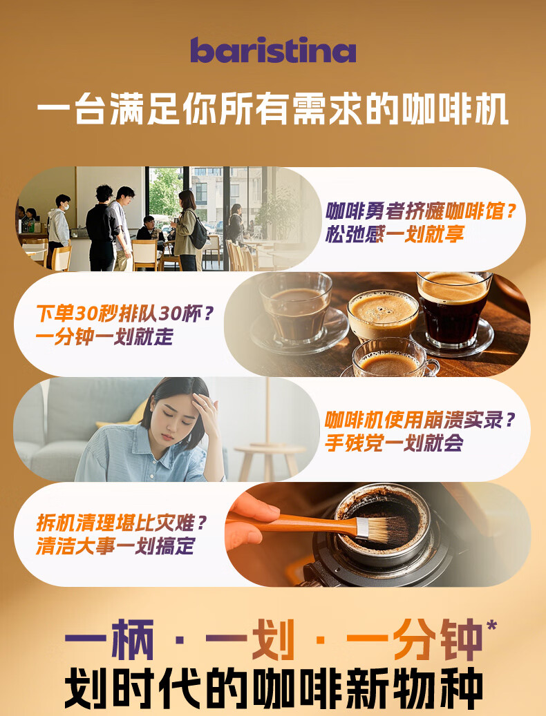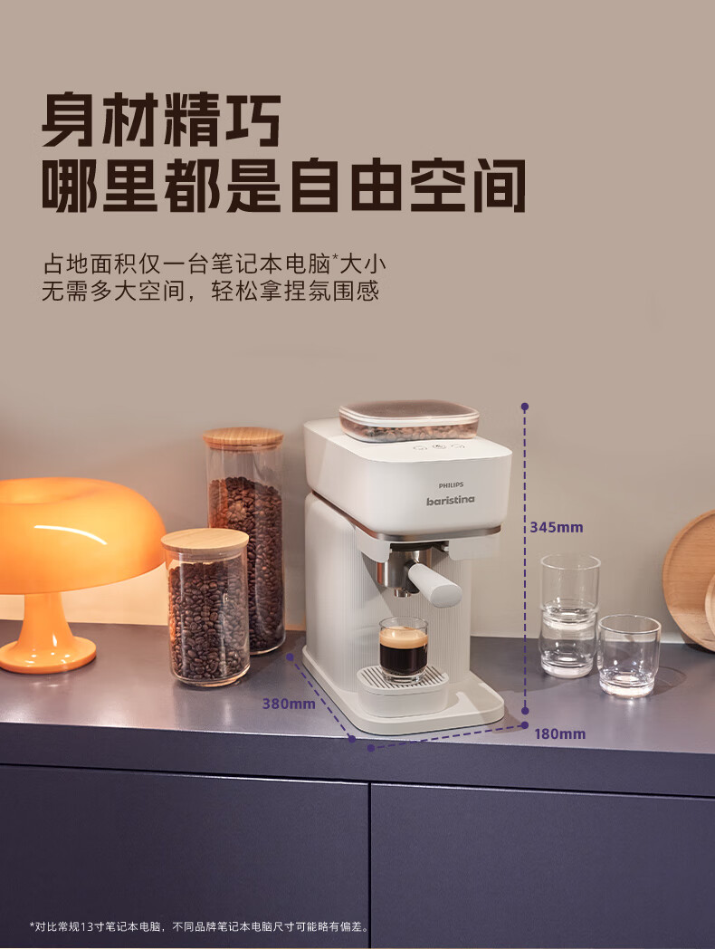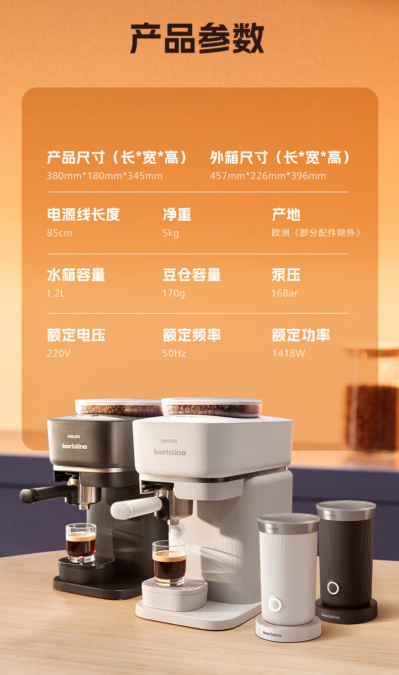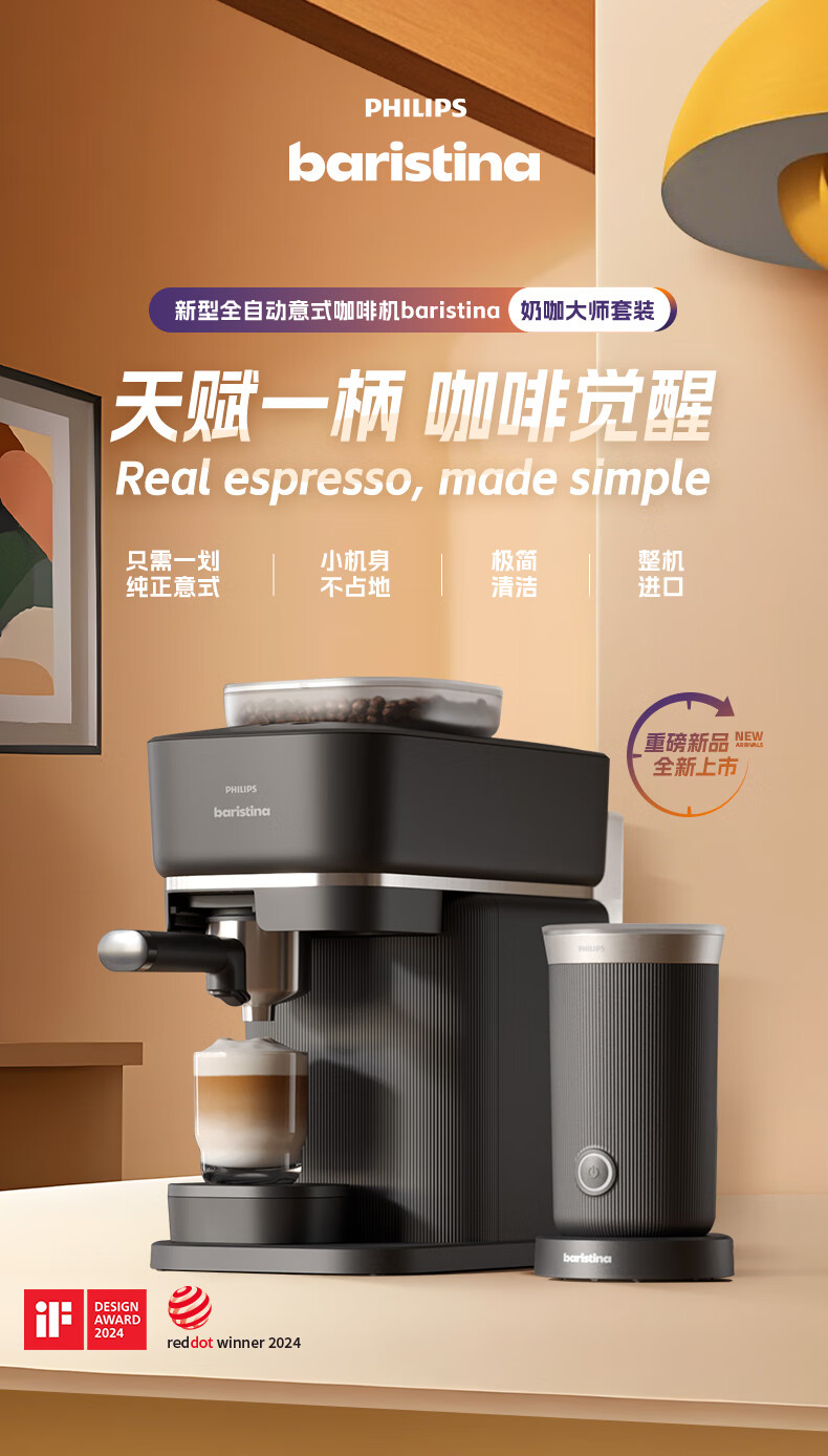 飞利浦(PHILIPS)【政府补贴】Baristina新型意式美式咖啡机 全自动研磨一体机家用咖啡机BAR系列奶咖版