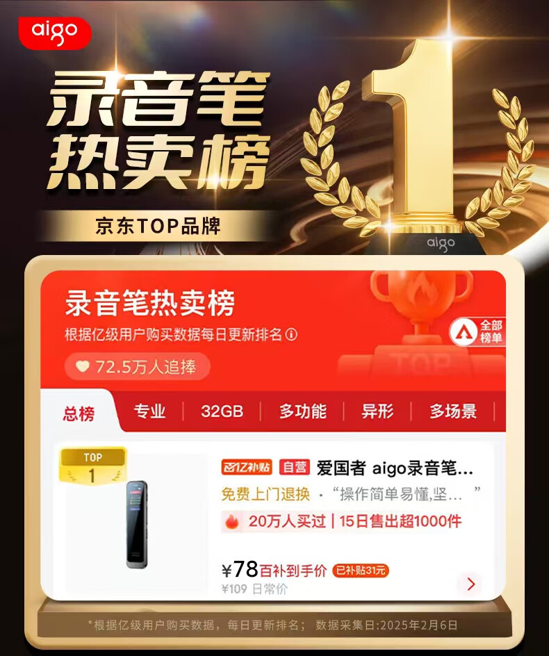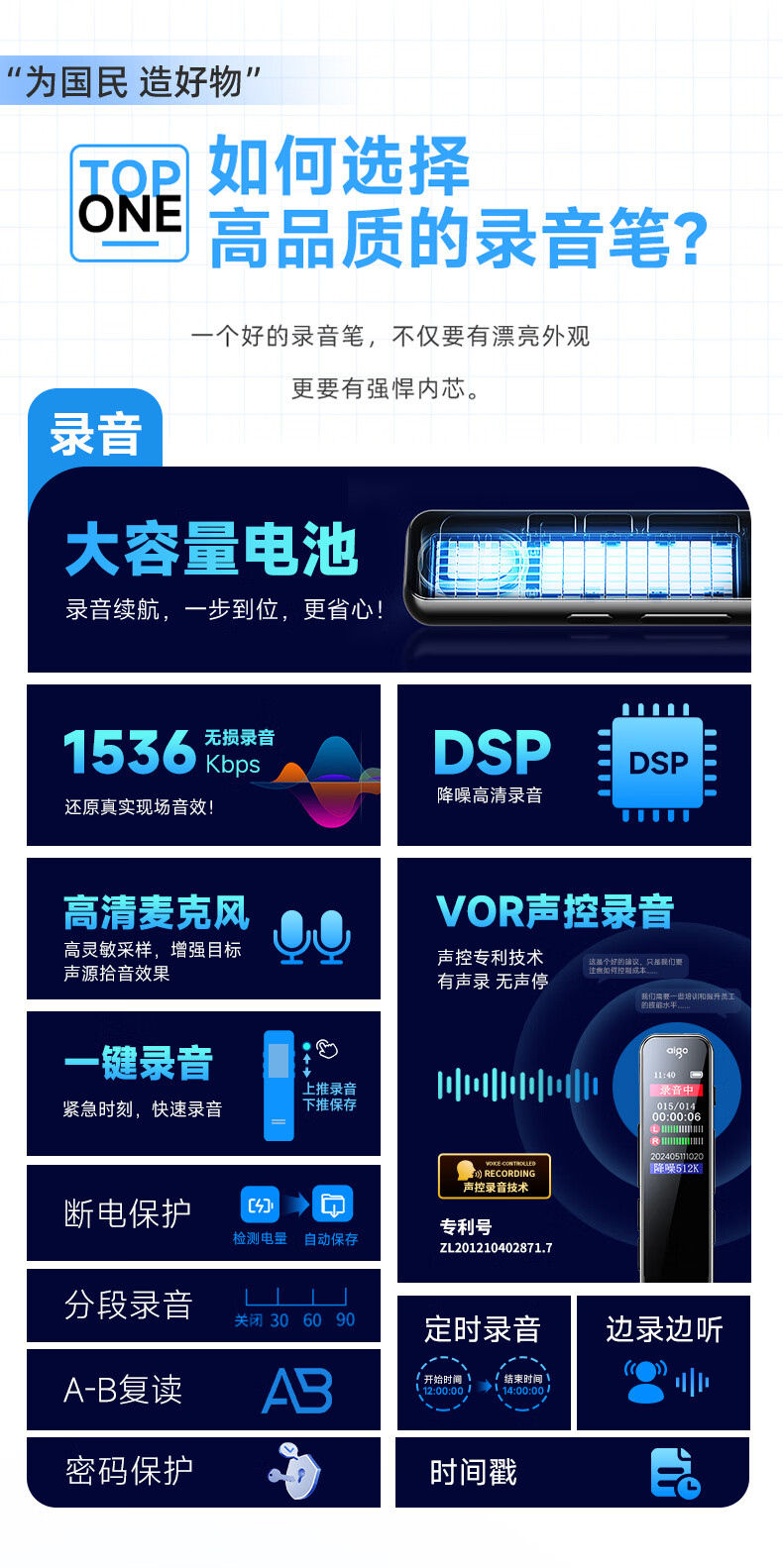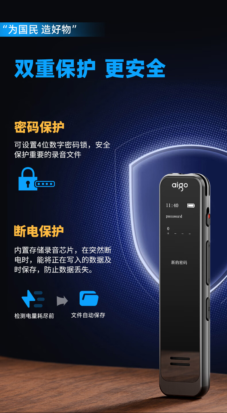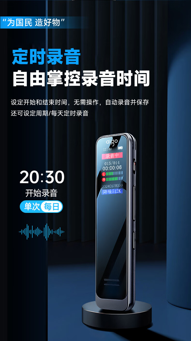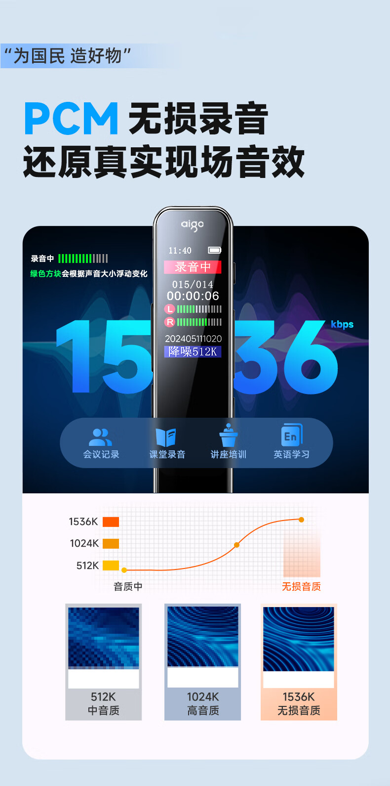 爱国者(aigo)录音笔60小时超长待机R3315C 128G大内存专业录音器高清降噪学习培训商务会议采访 MP3播放