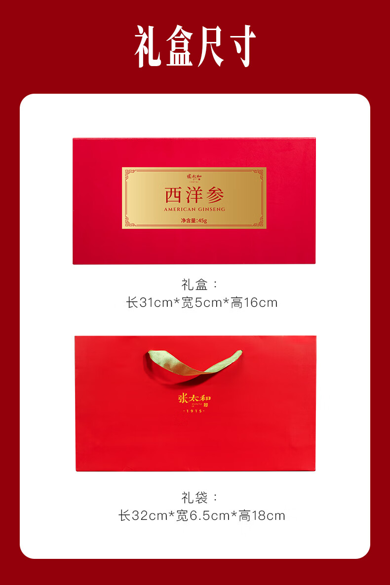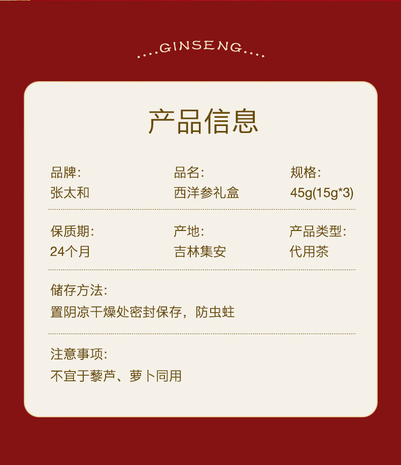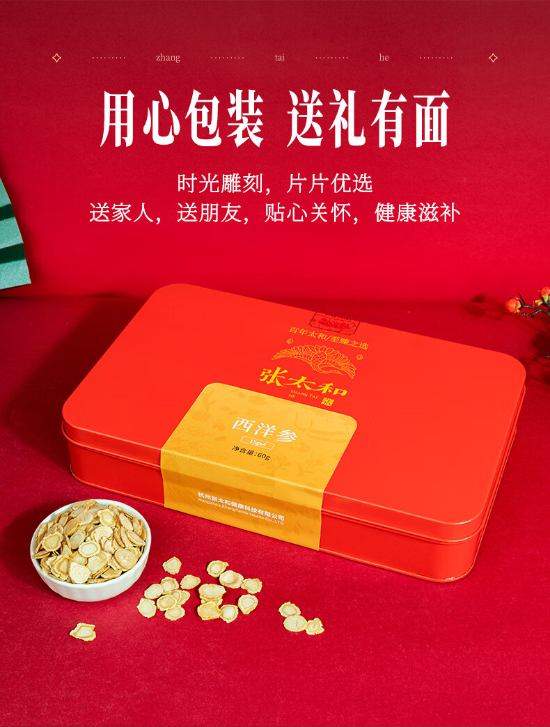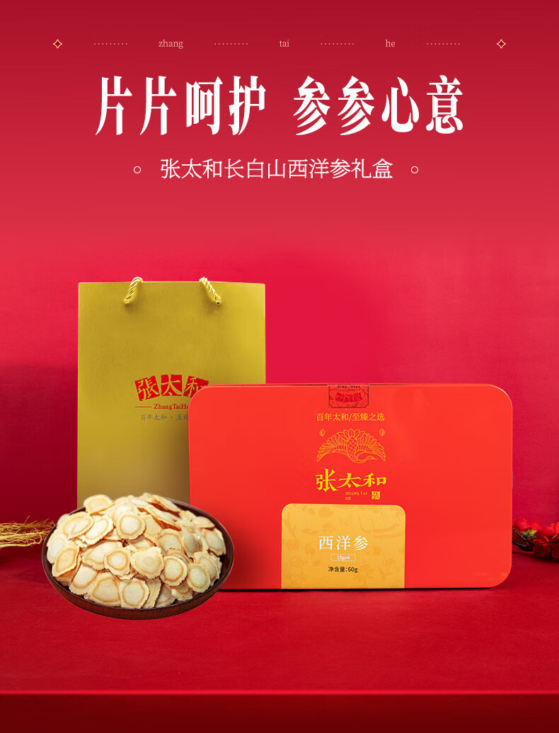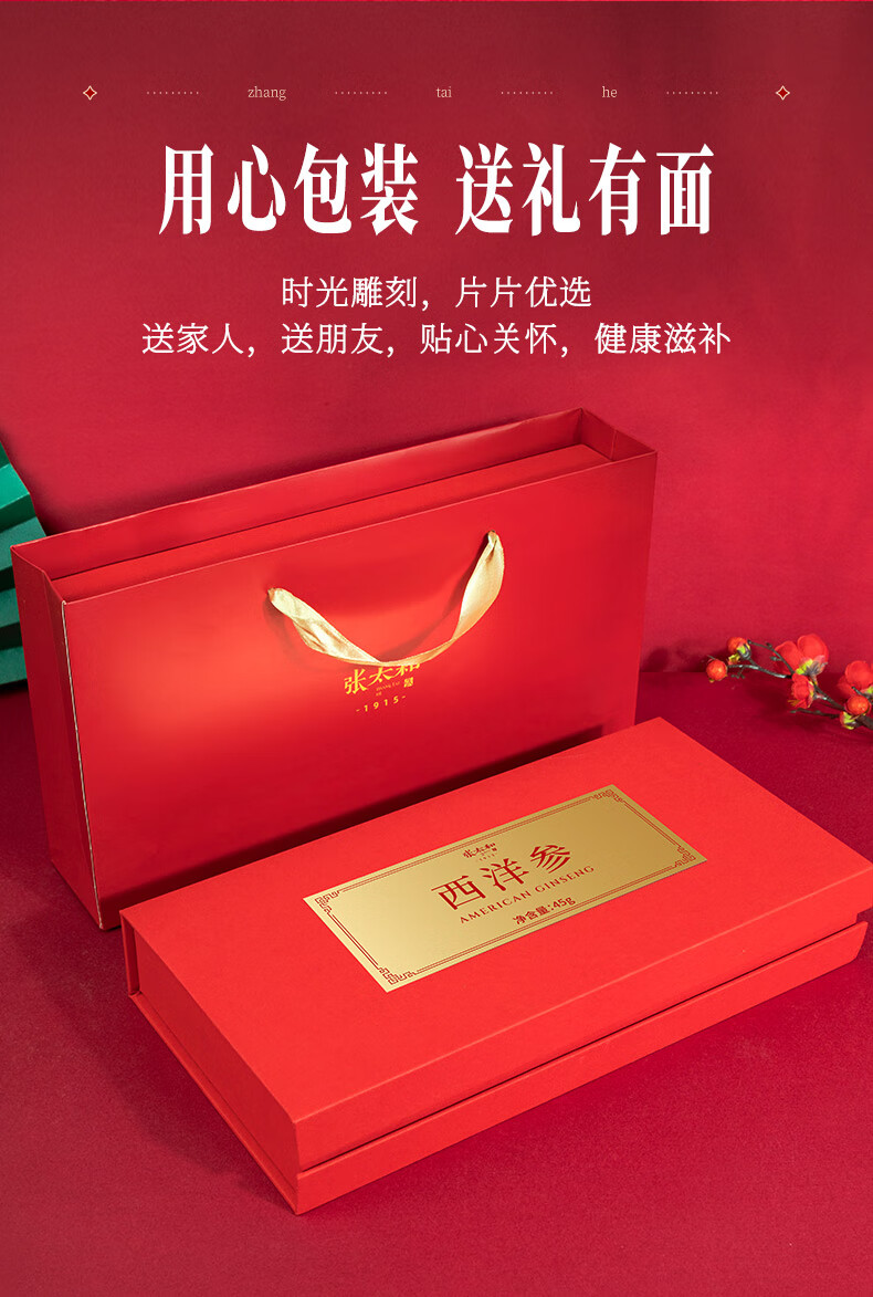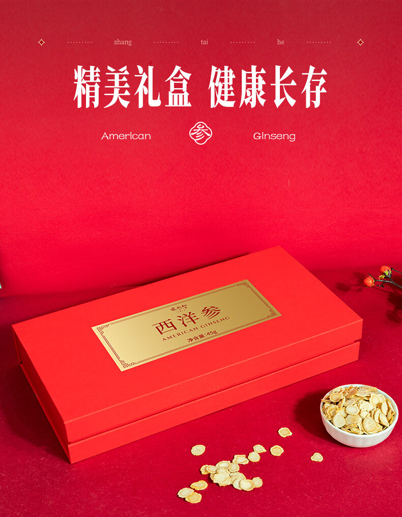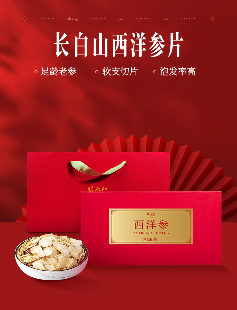 张太和 吉林西洋参片 西洋参切片中大片礼盒装 可搭枸杞茶 滋补好礼 西洋参45g(15g*3)礼盒