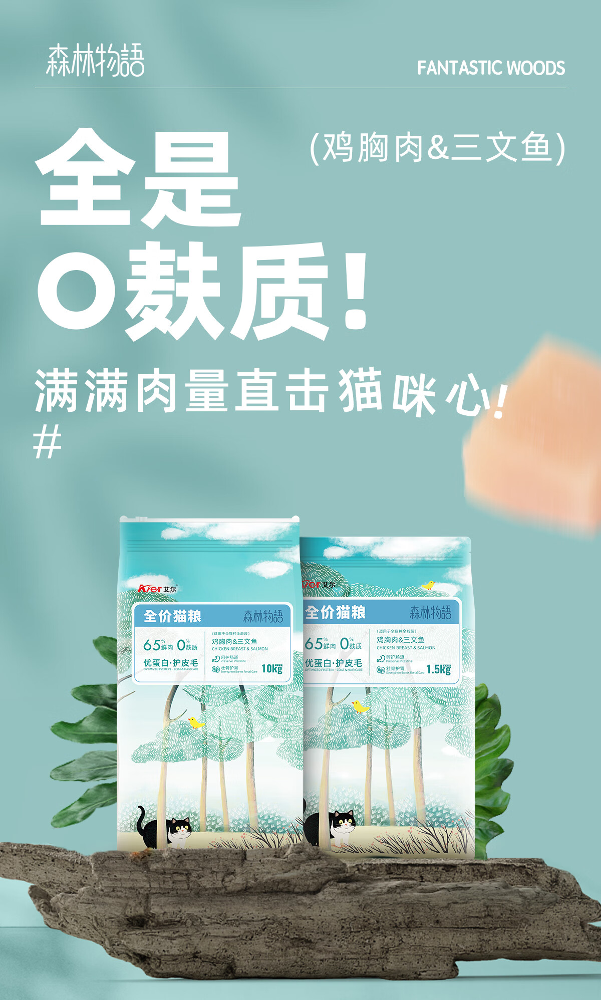 艾尔(Aier)猫粮鸡胸肉三文鱼全价低敏成猫幼猫森林物语全价猫粮 1.5kg3斤