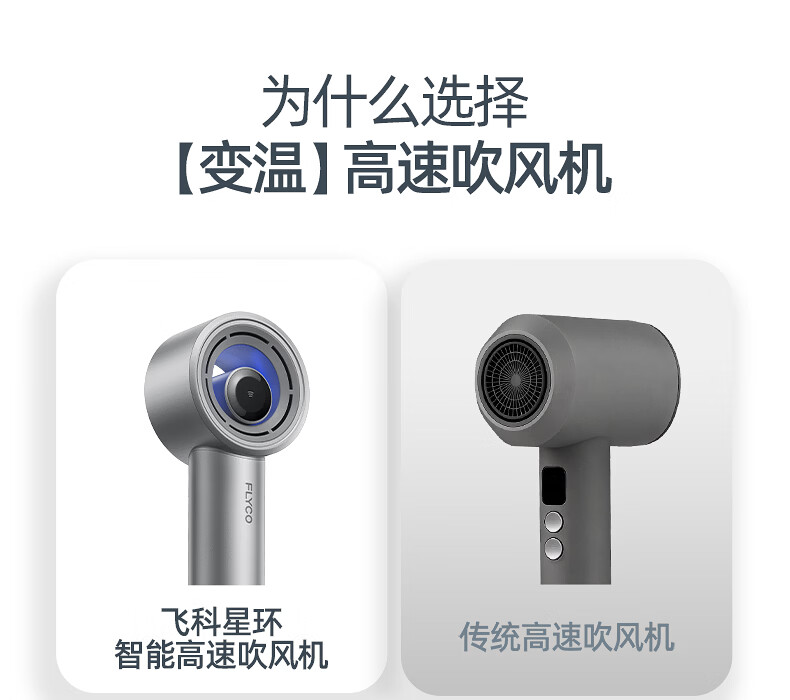 飞科(FLYCO)【王一博同款】星环高速吹风机负离子护发 AI智能变温电吹风筒 家用速干 情人节礼物推荐 H6星空银