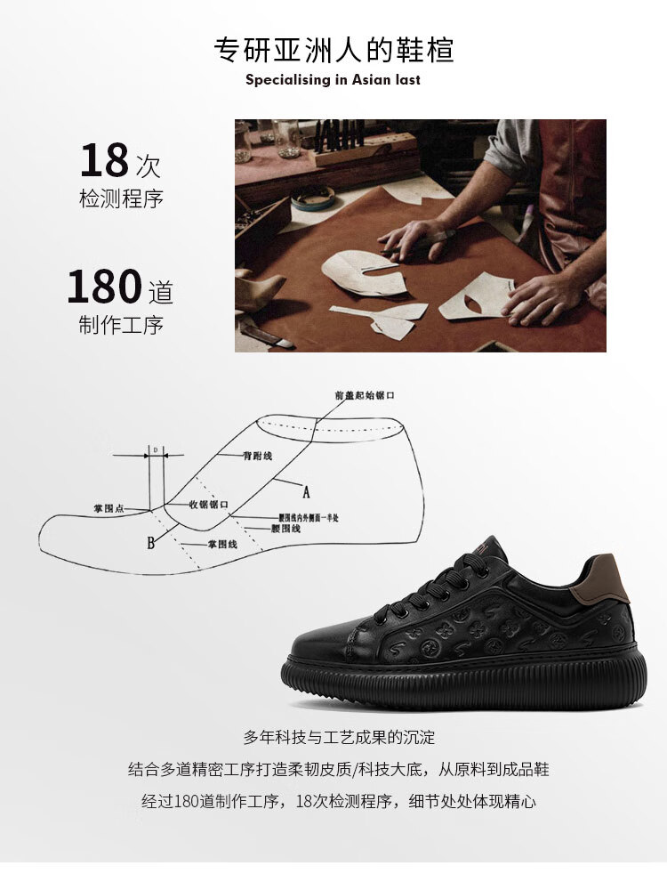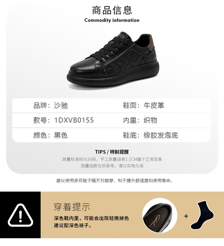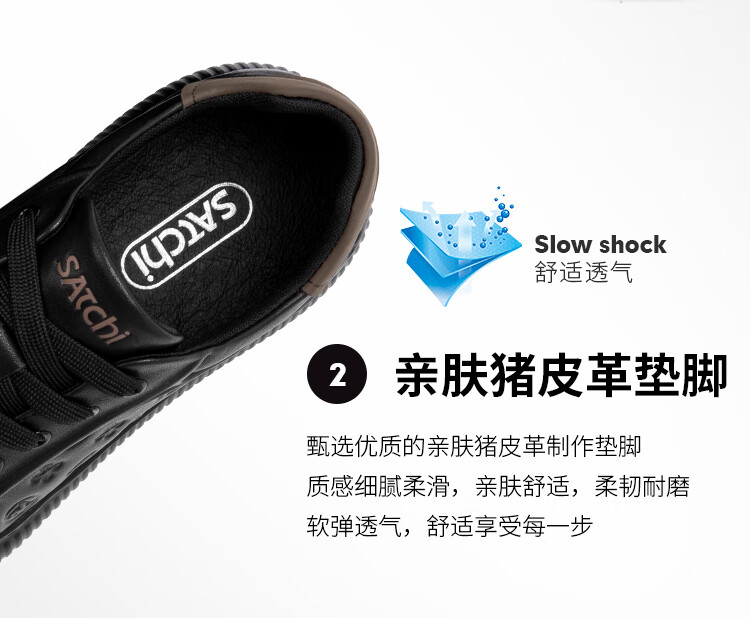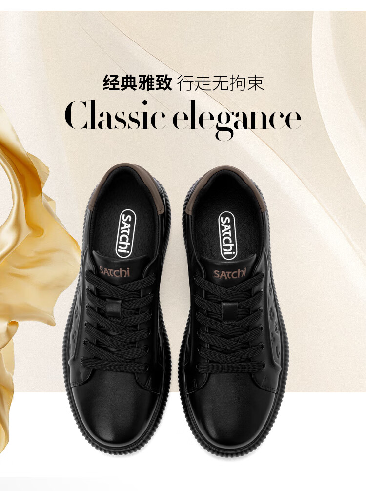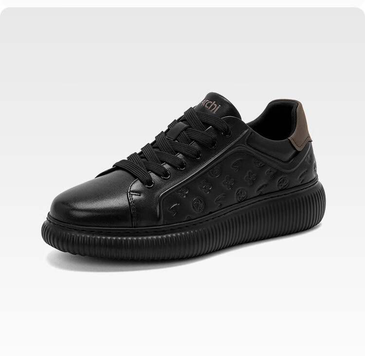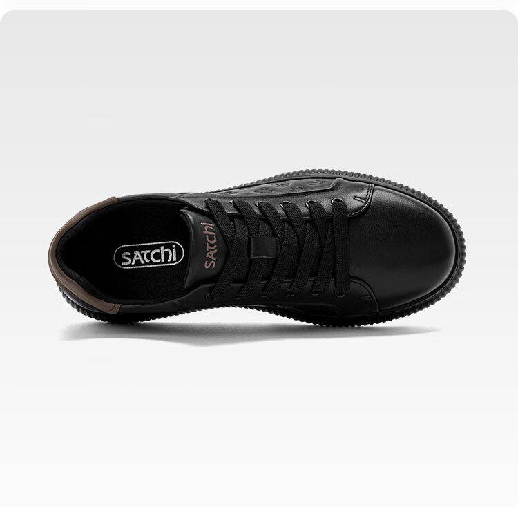 沙驰(SATCHI)男鞋【头层牛皮】新款时尚印花小白鞋轻底舒适休闲鞋百搭板鞋 黑色(1DXVB0155) 42 欧码(选小一码)