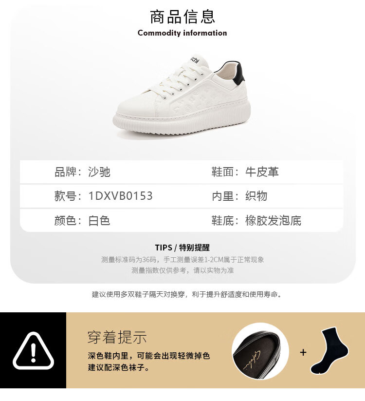他她(TATA)TATA孙乐言同款小白鲸厚底休闲板鞋女加绒 白色AM6 36