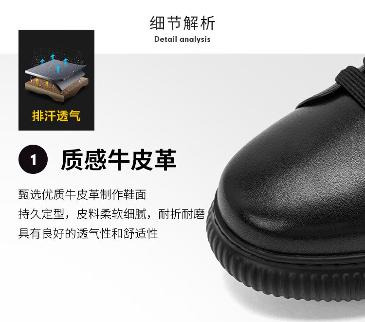 红蜻蜓男鞋平底秋冬牛皮休闲鞋男圆头商务正装皮鞋男WTA306871黑色44