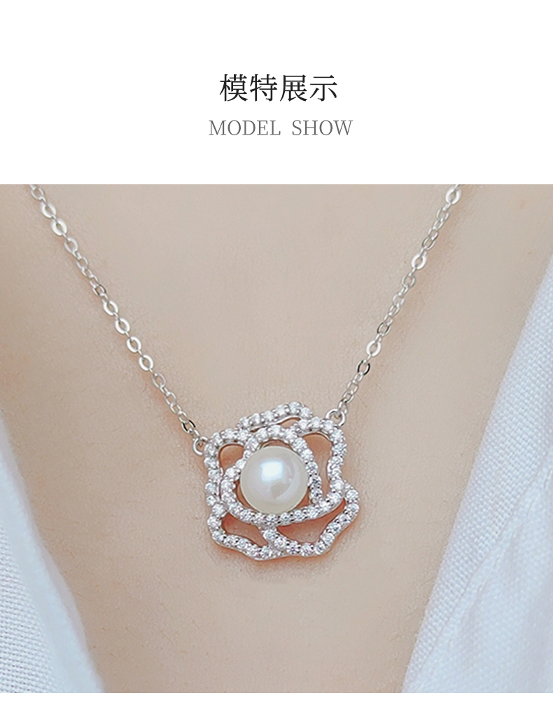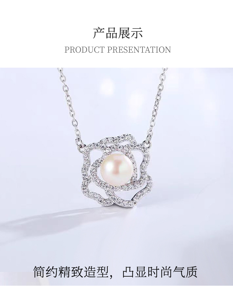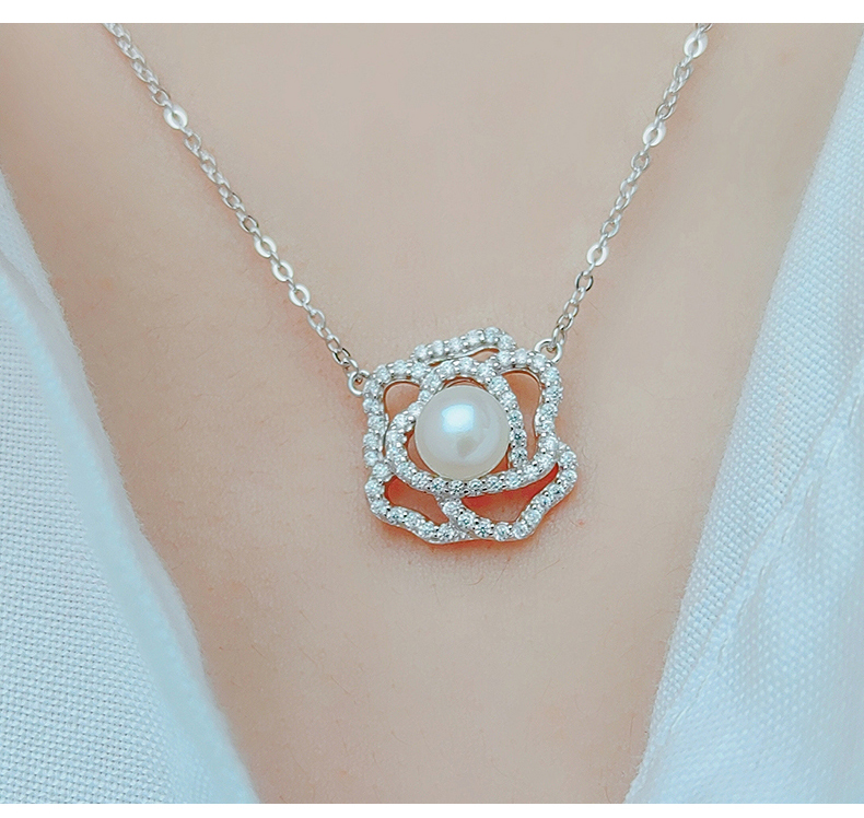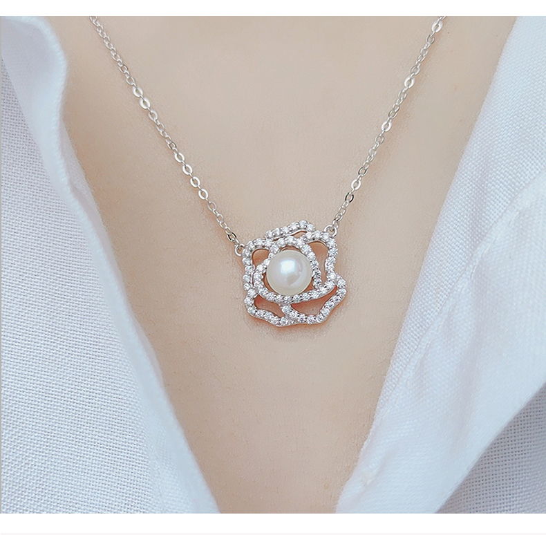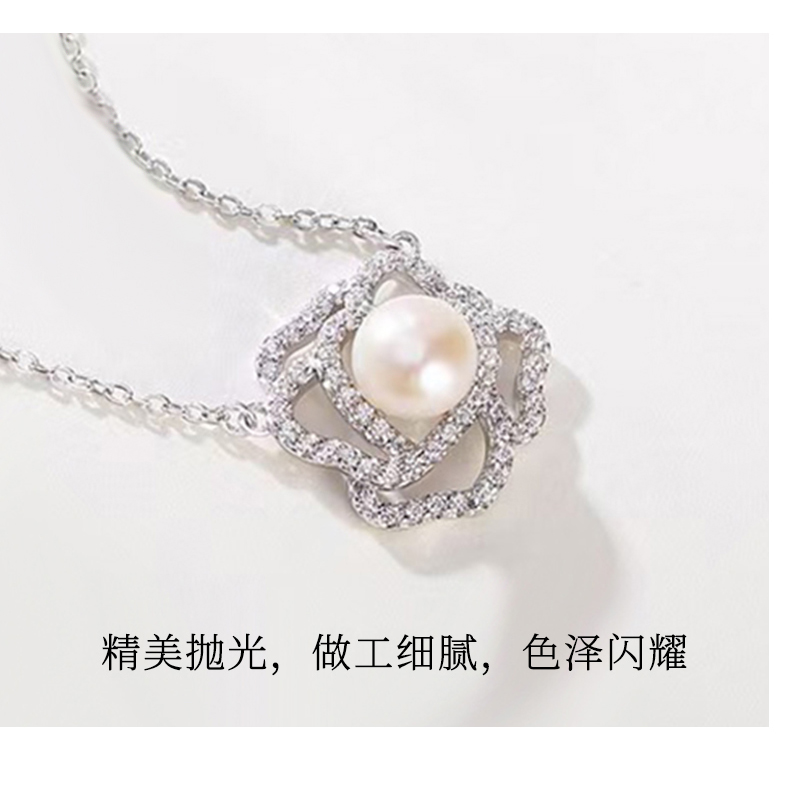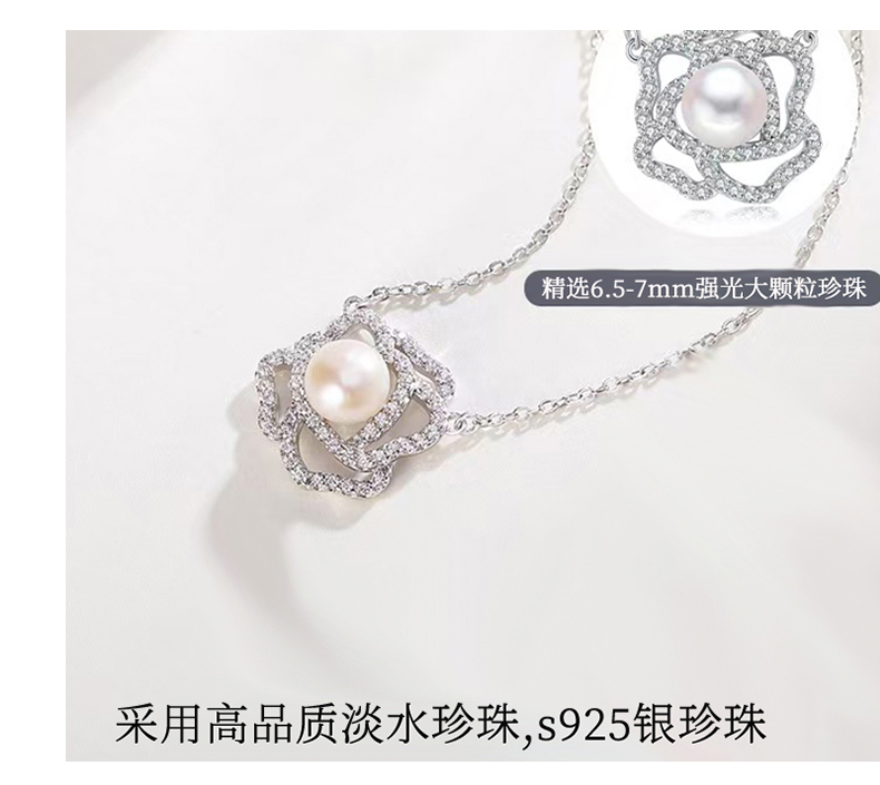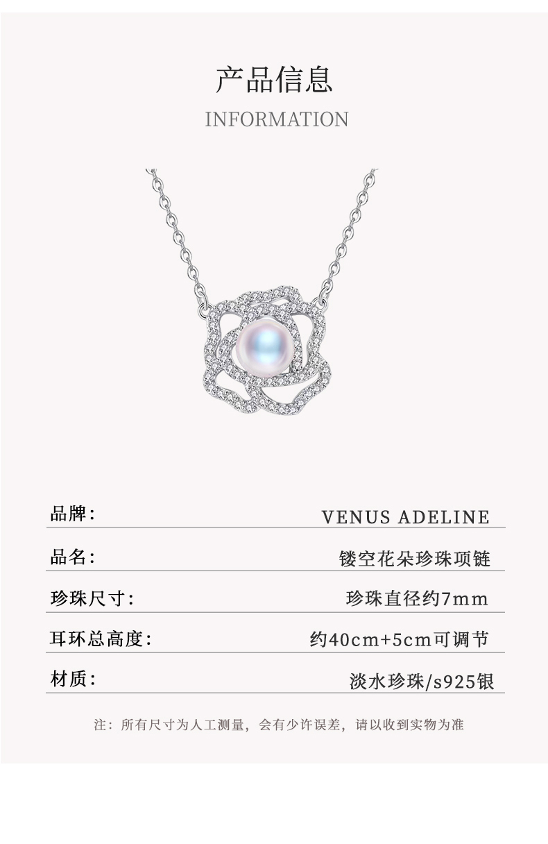VENUS ADELINE山茶花项链女银淡水珍珠吊坠轻奢年轻款妈妈锁骨链七夕生日礼物 白色珍珠送闺蜜长辈生日礼物 银项链送长辈实用浪漫纪念日礼盒