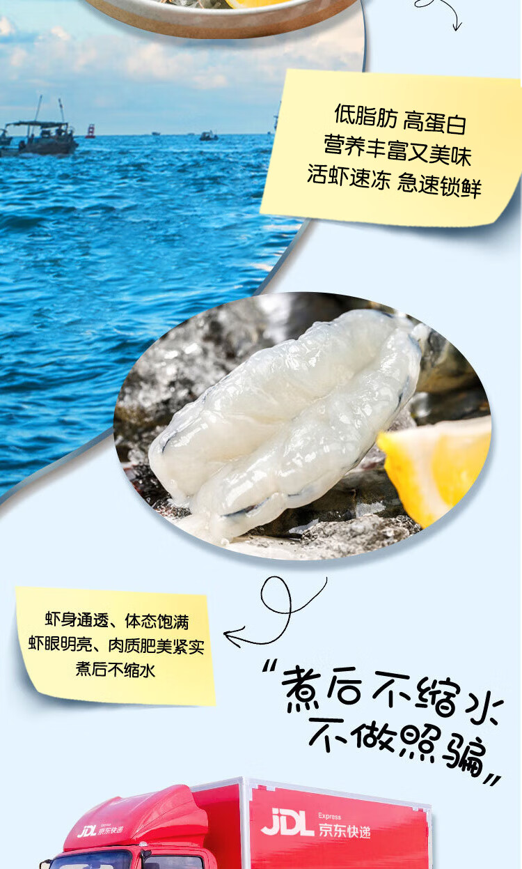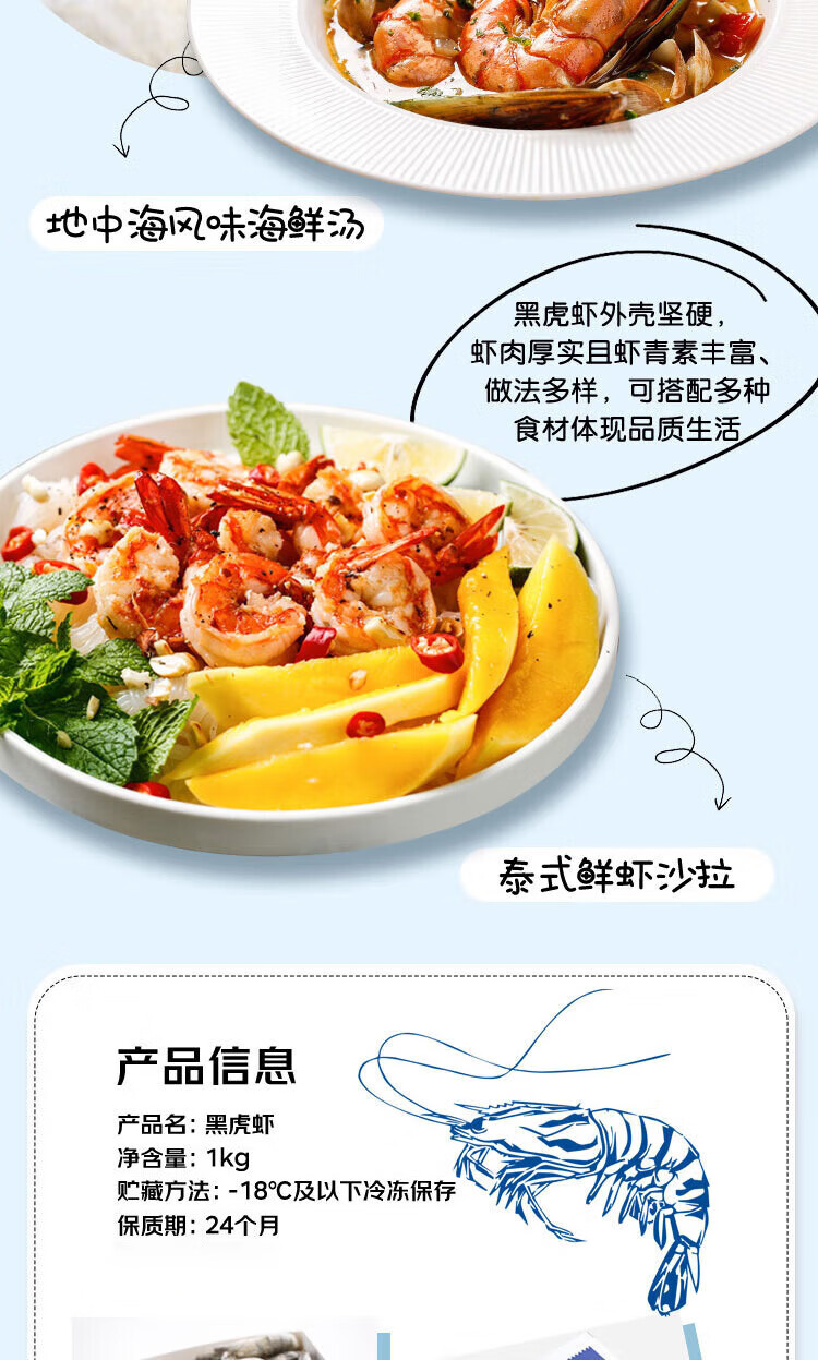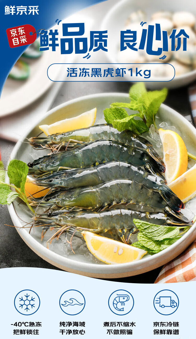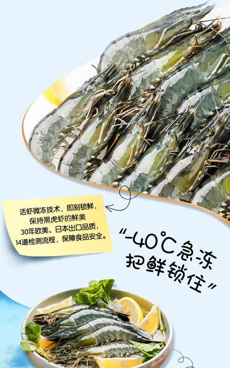 鲜京采 鲜冻大号黑虎虾 去冰净重2斤 31-40只/盒 斑节对虾