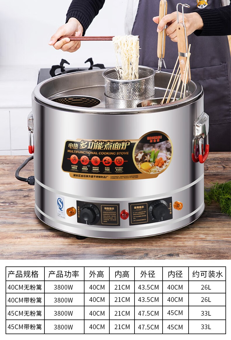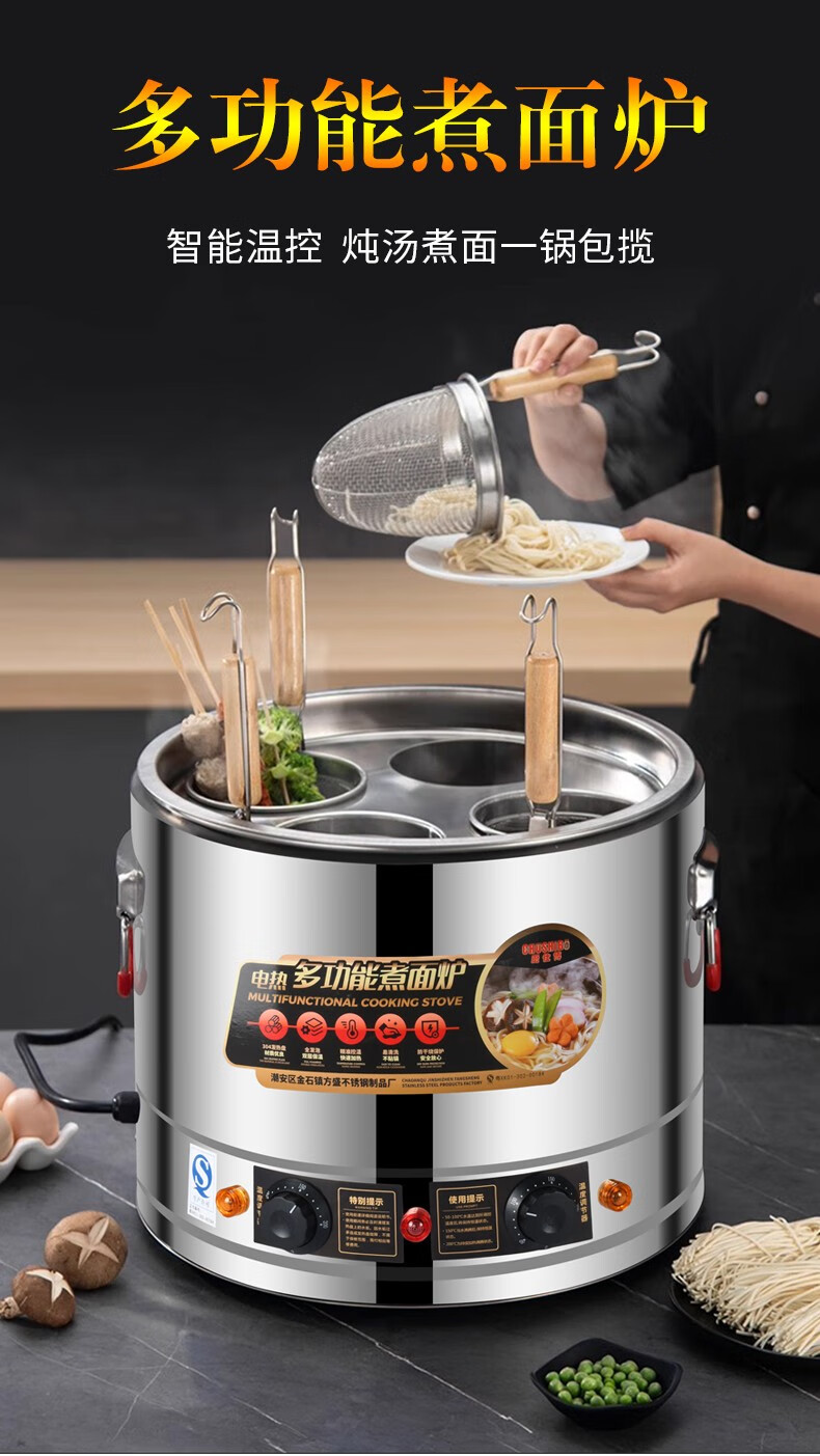 厨仕博煮面桶煮面炉商用关东煮麻辣烫锅煮饺子汤圆锅大容量串串煮面机蒸煮桶汤粥炉汤粉炉煮面桶商用 40型304全复底【可煮稀豆浆稀粥】单桶