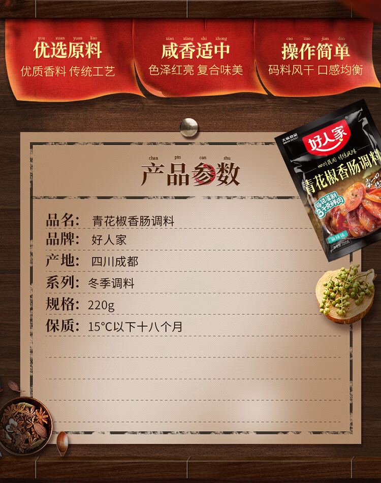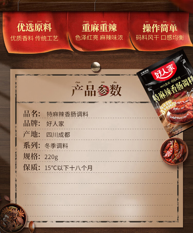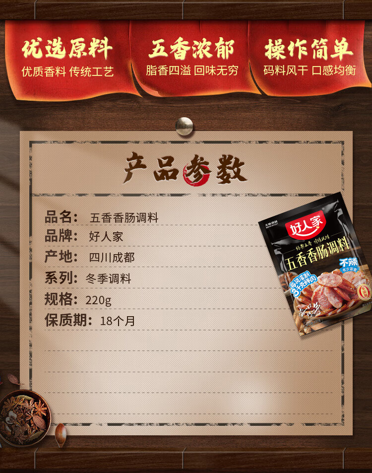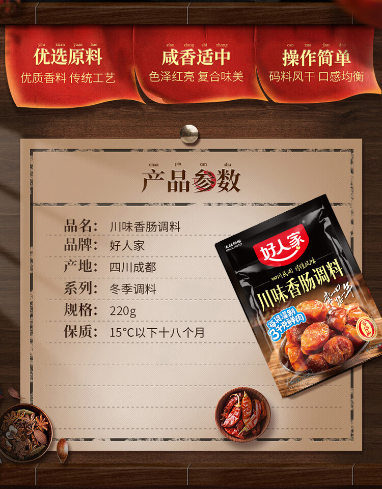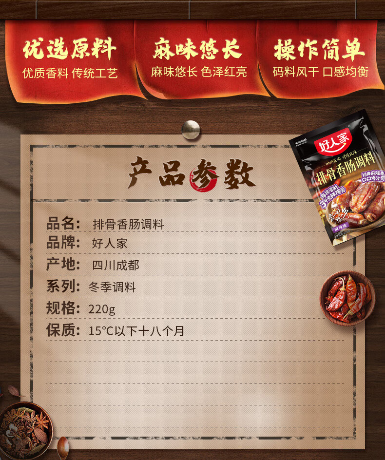 好人家四川香肠腊肉酱肉调料包3袋装【家用实惠】 麻辣味-220g*3袋