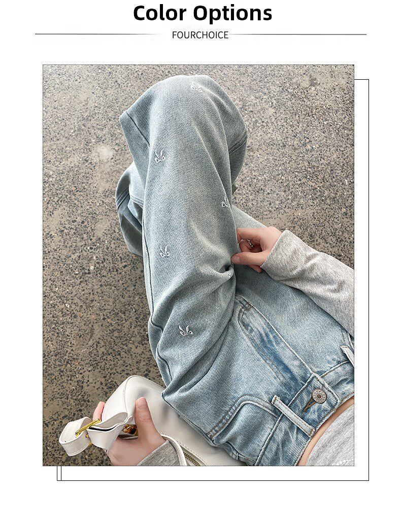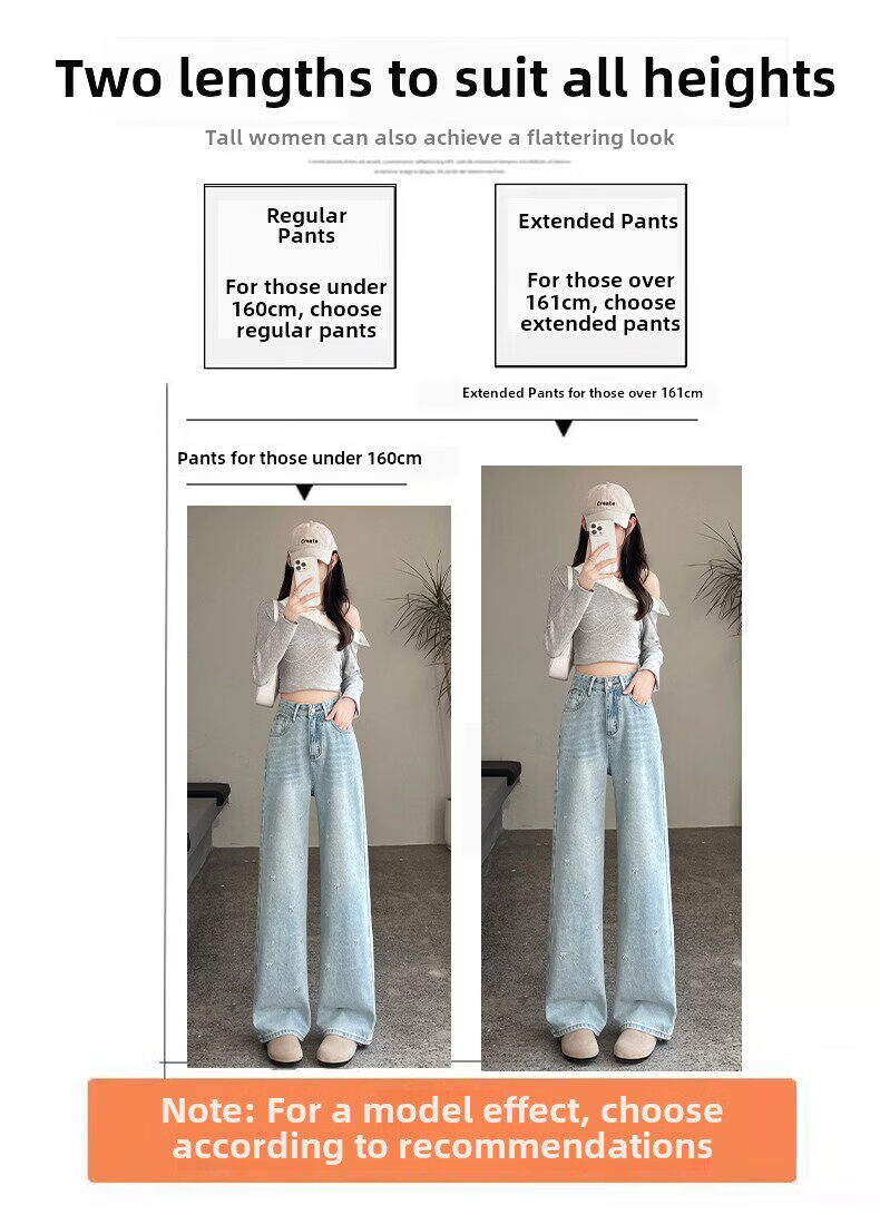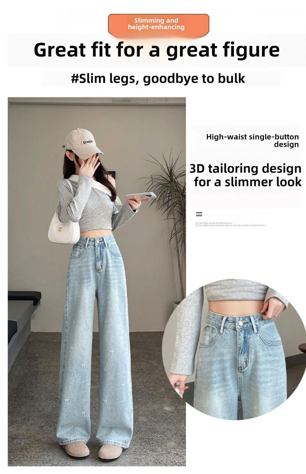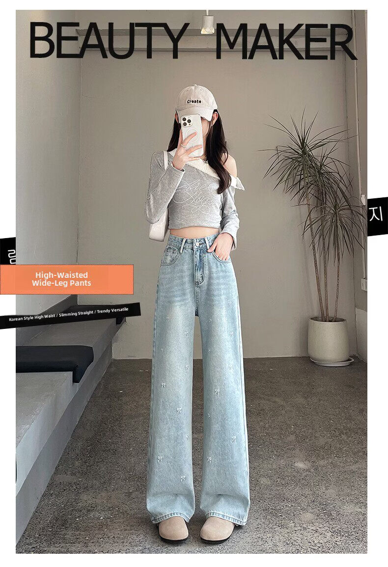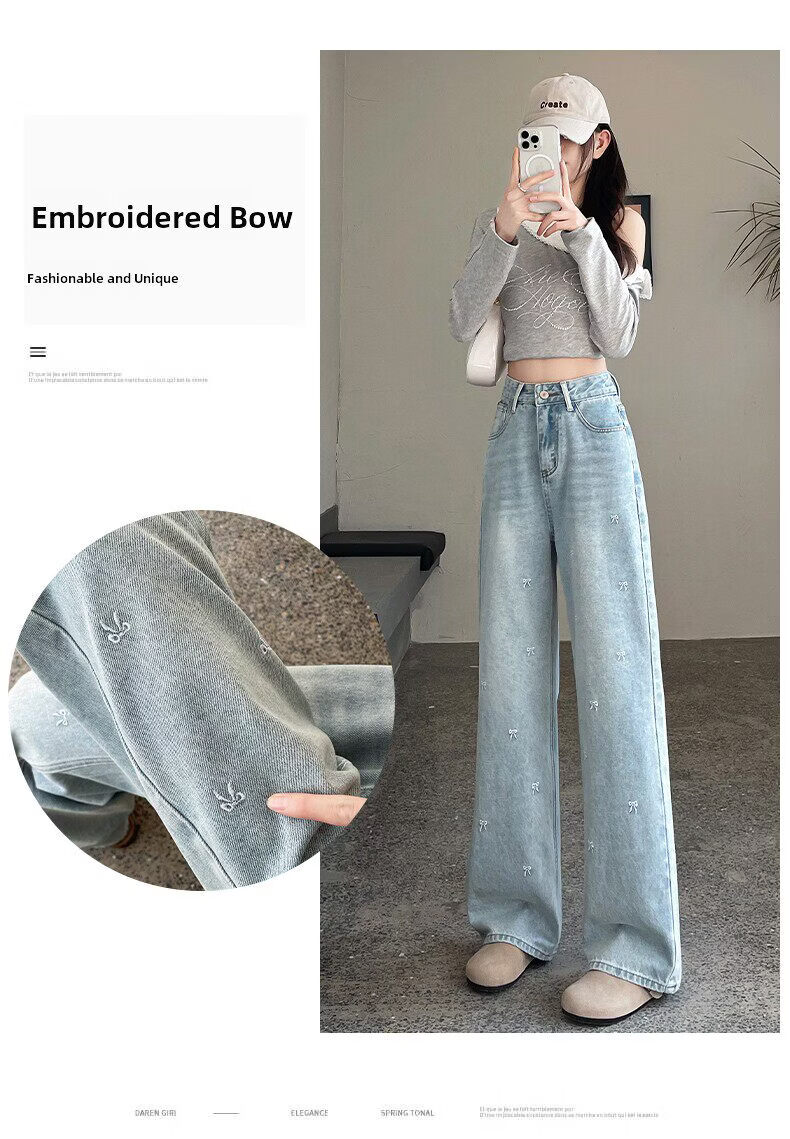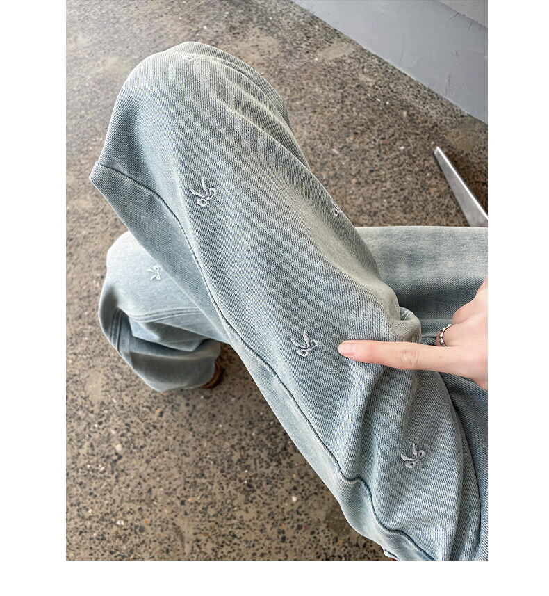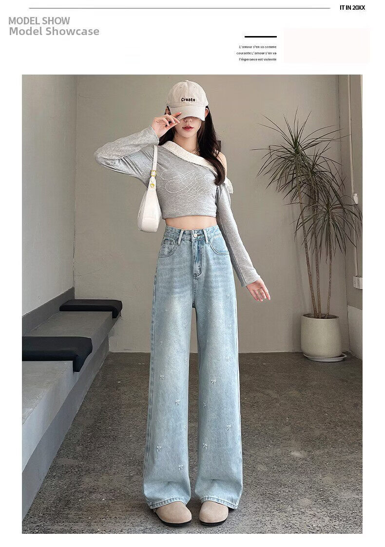 MODX绣花阔腿牛仔裤2026年春季新高腰修身浅色流行窄直筒裤 浅蓝色【长裤】 XS