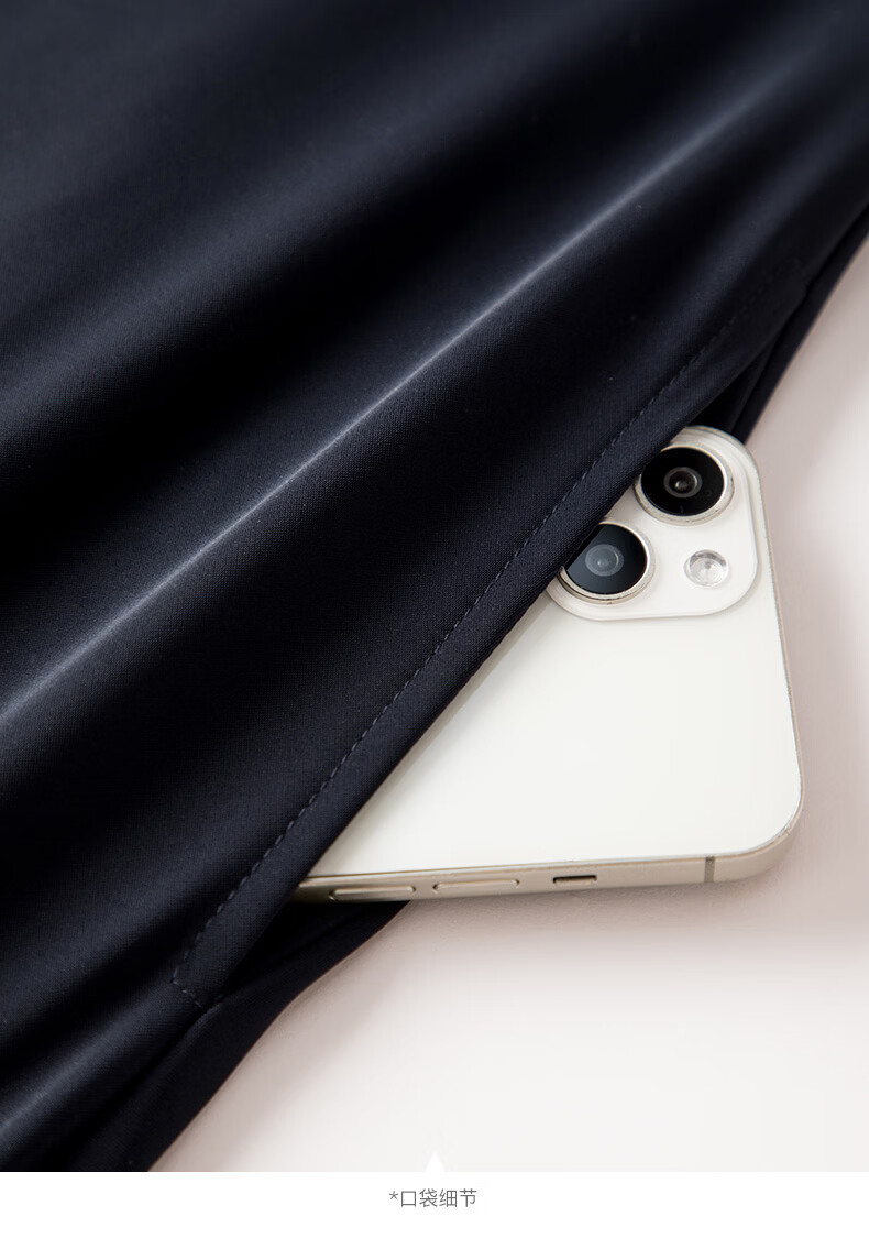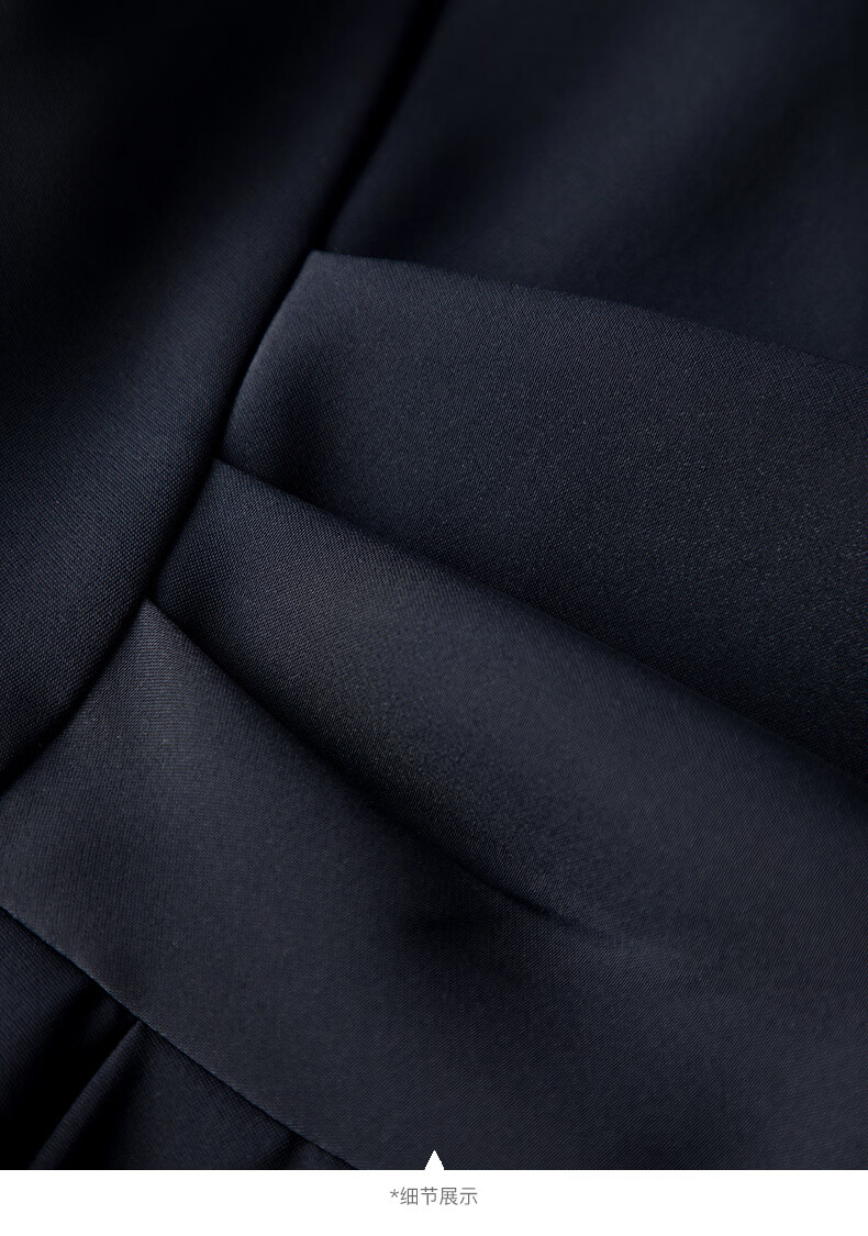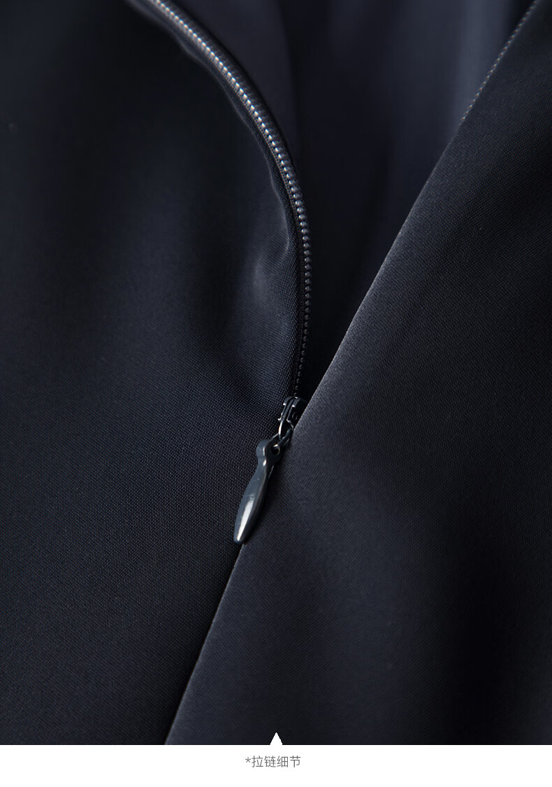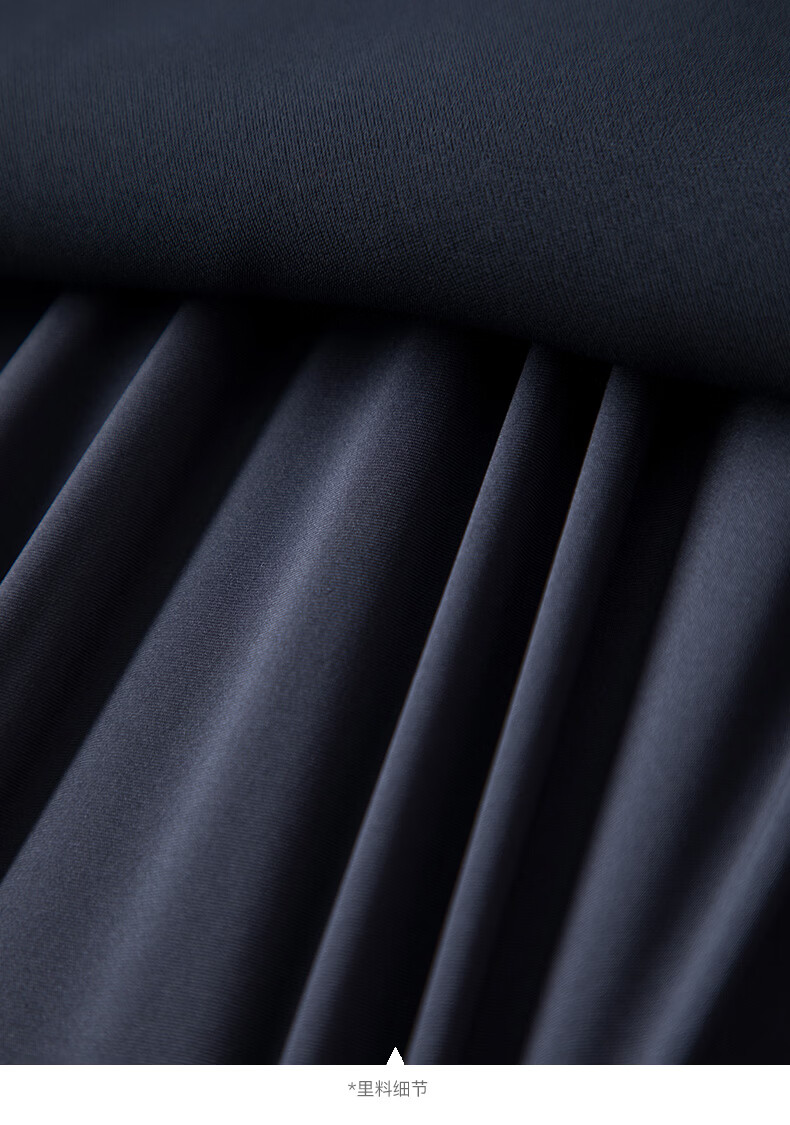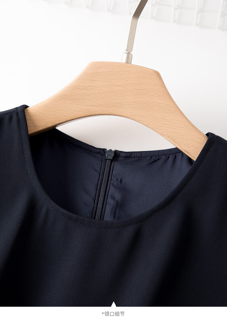晚白【新品】2026春款知性轻熟风中袖裙子收腰显瘦气质通勤连衣裙 深蓝色 L