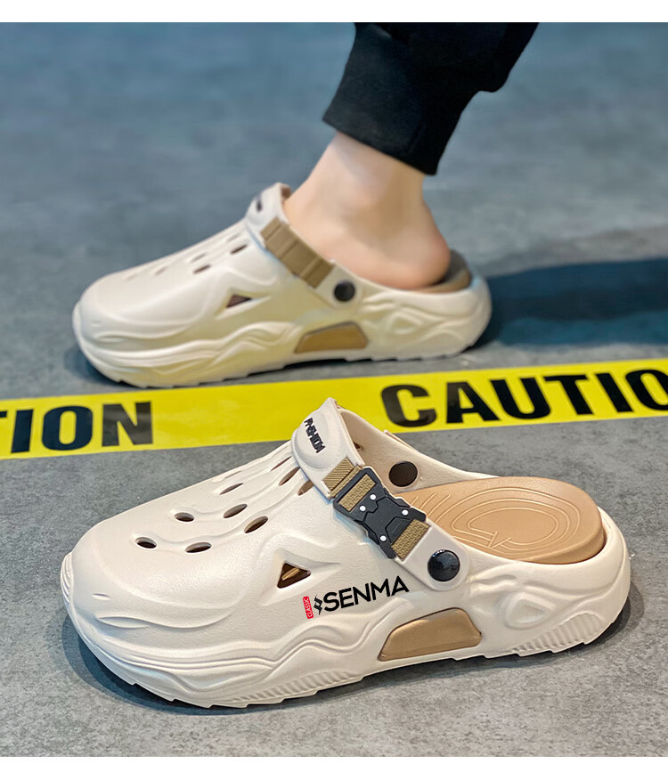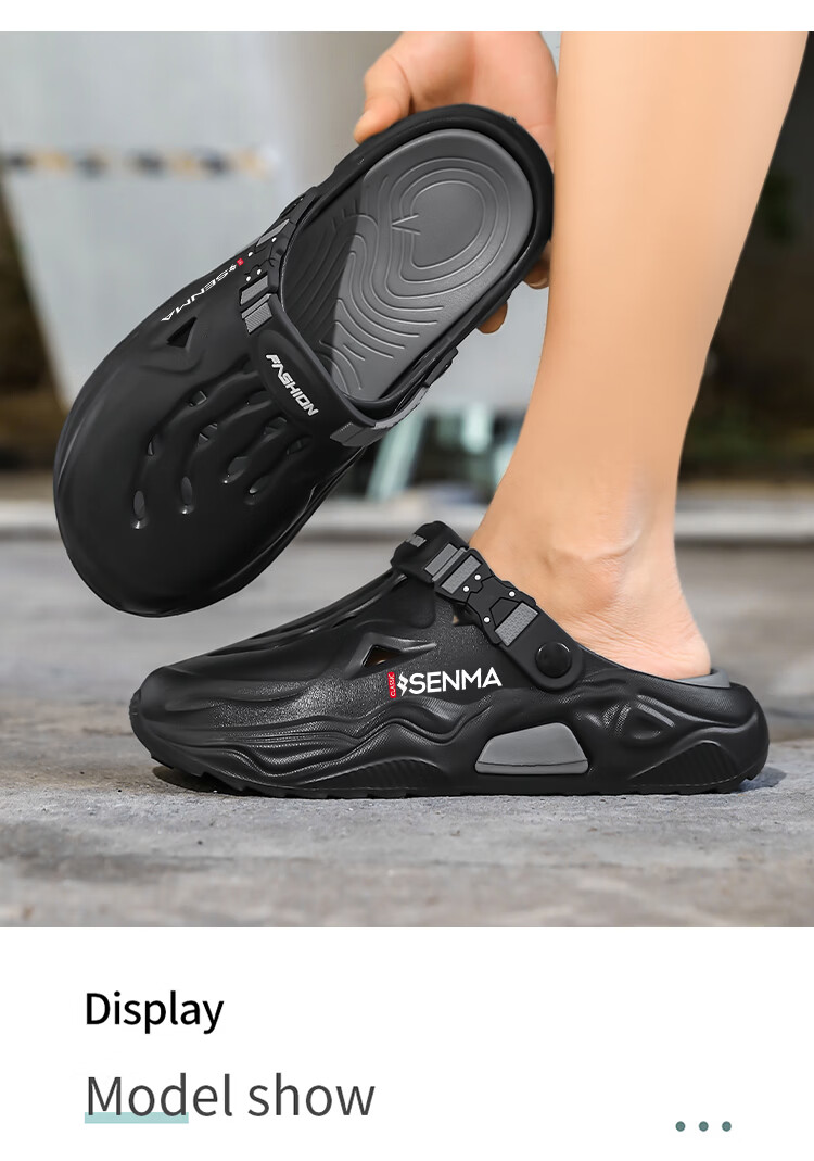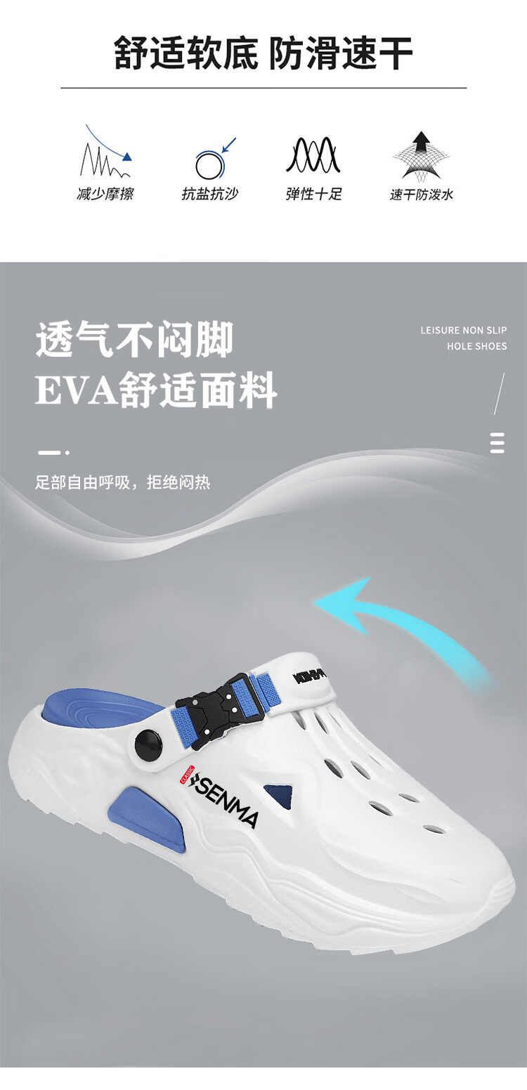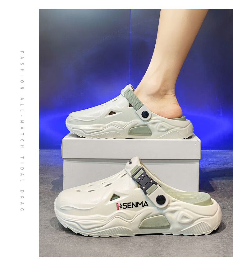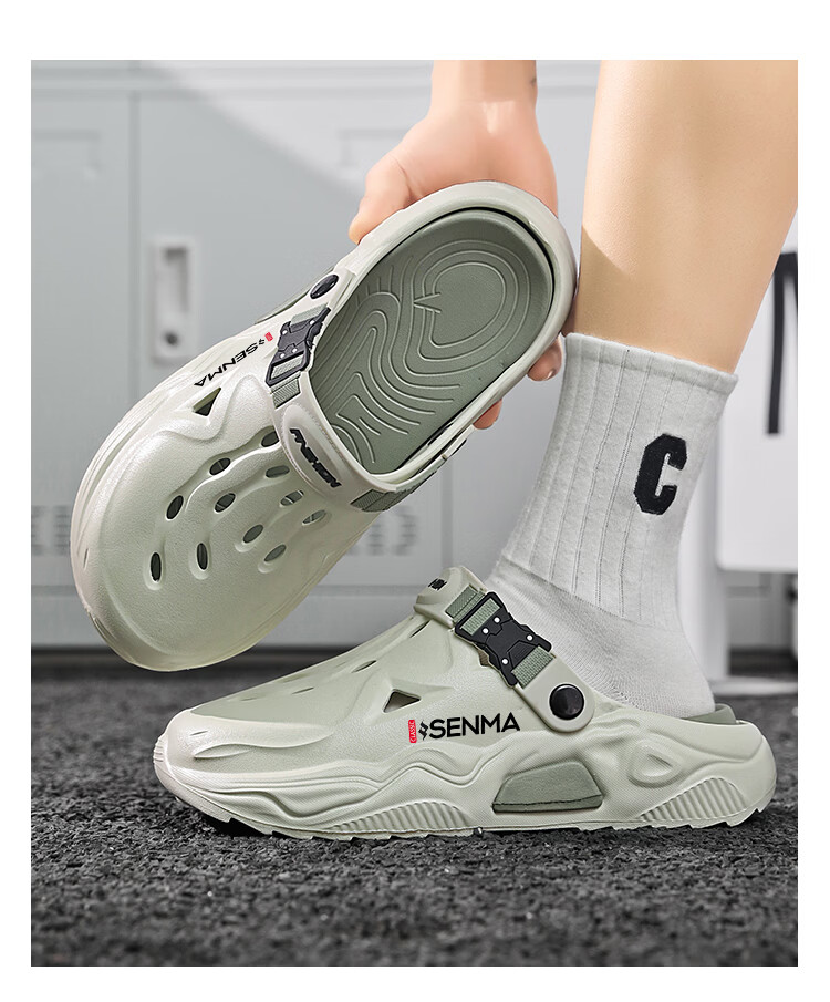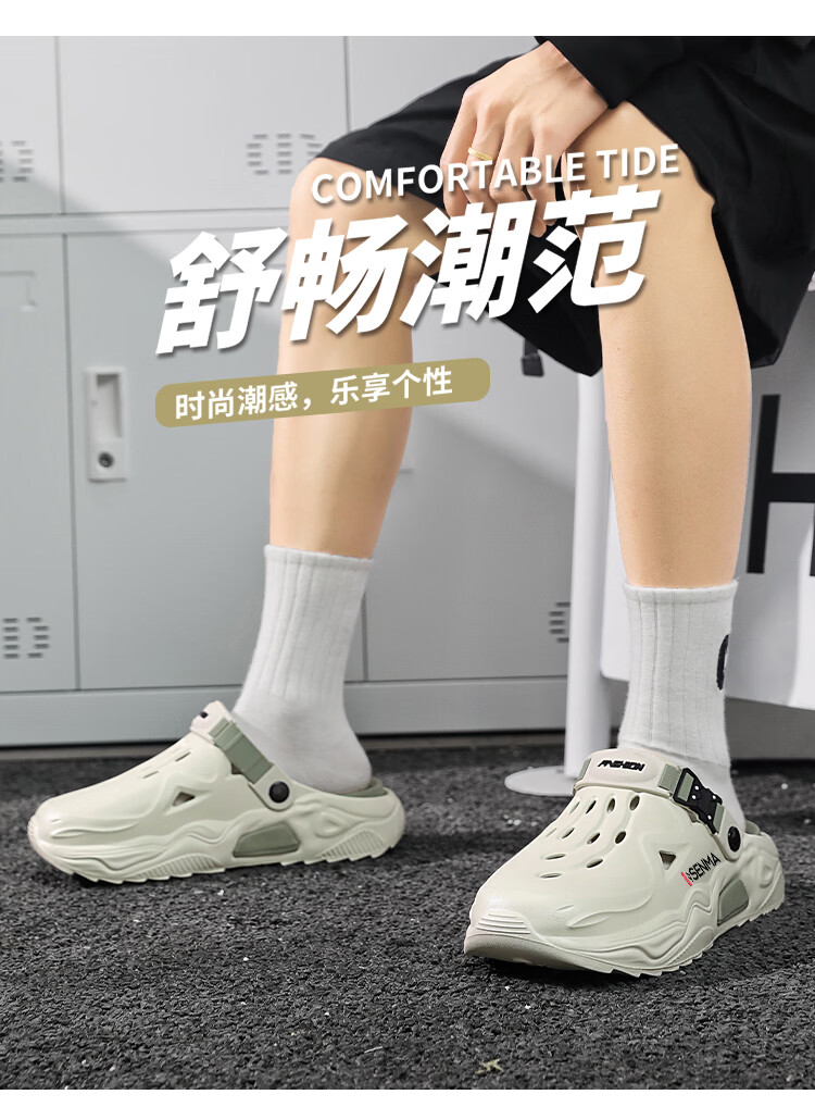 森馬洞洞鞋男款夏季外穿防滑办公室包头拖鞋户外开车两用运动沙滩凉鞋 抹茶绿【基础款】 38-39 现货秒发