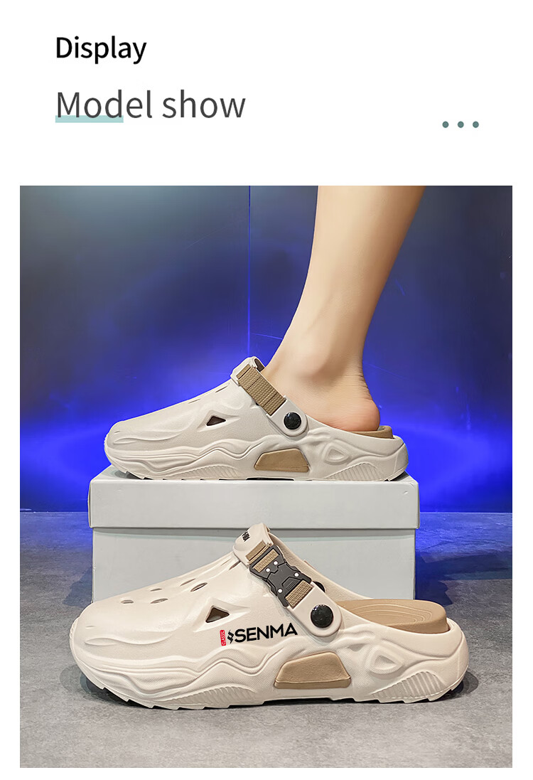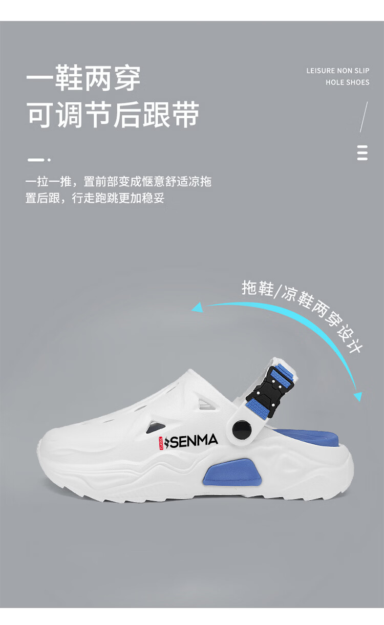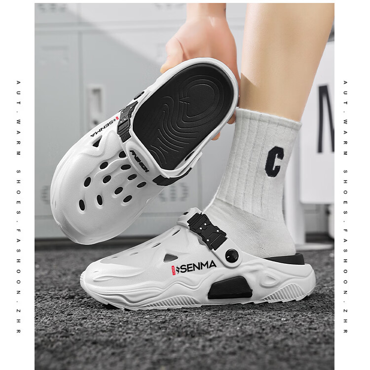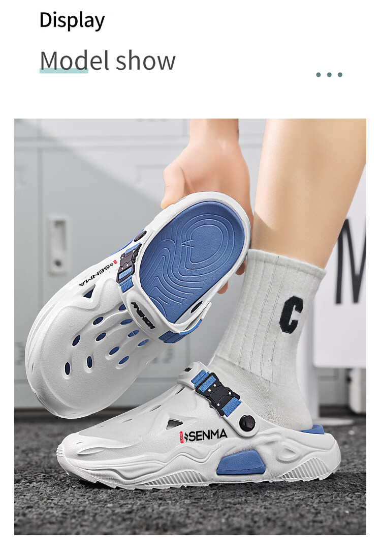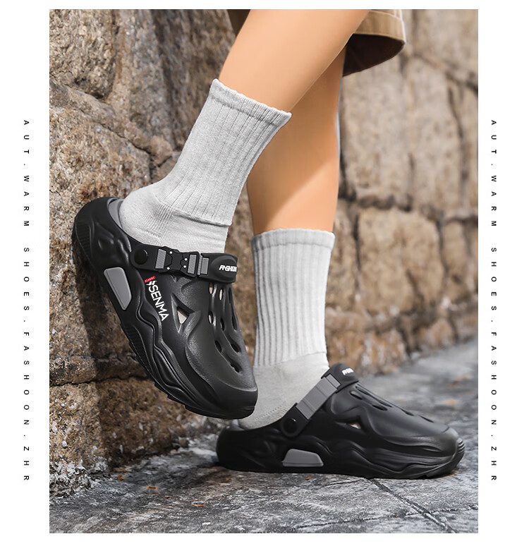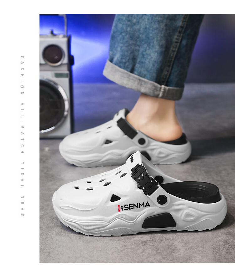 森馬洞洞鞋男款夏季外穿防滑办公室包头拖鞋户外开车两用运动沙滩凉鞋 抹茶绿【基础款】 38-39 现货秒发