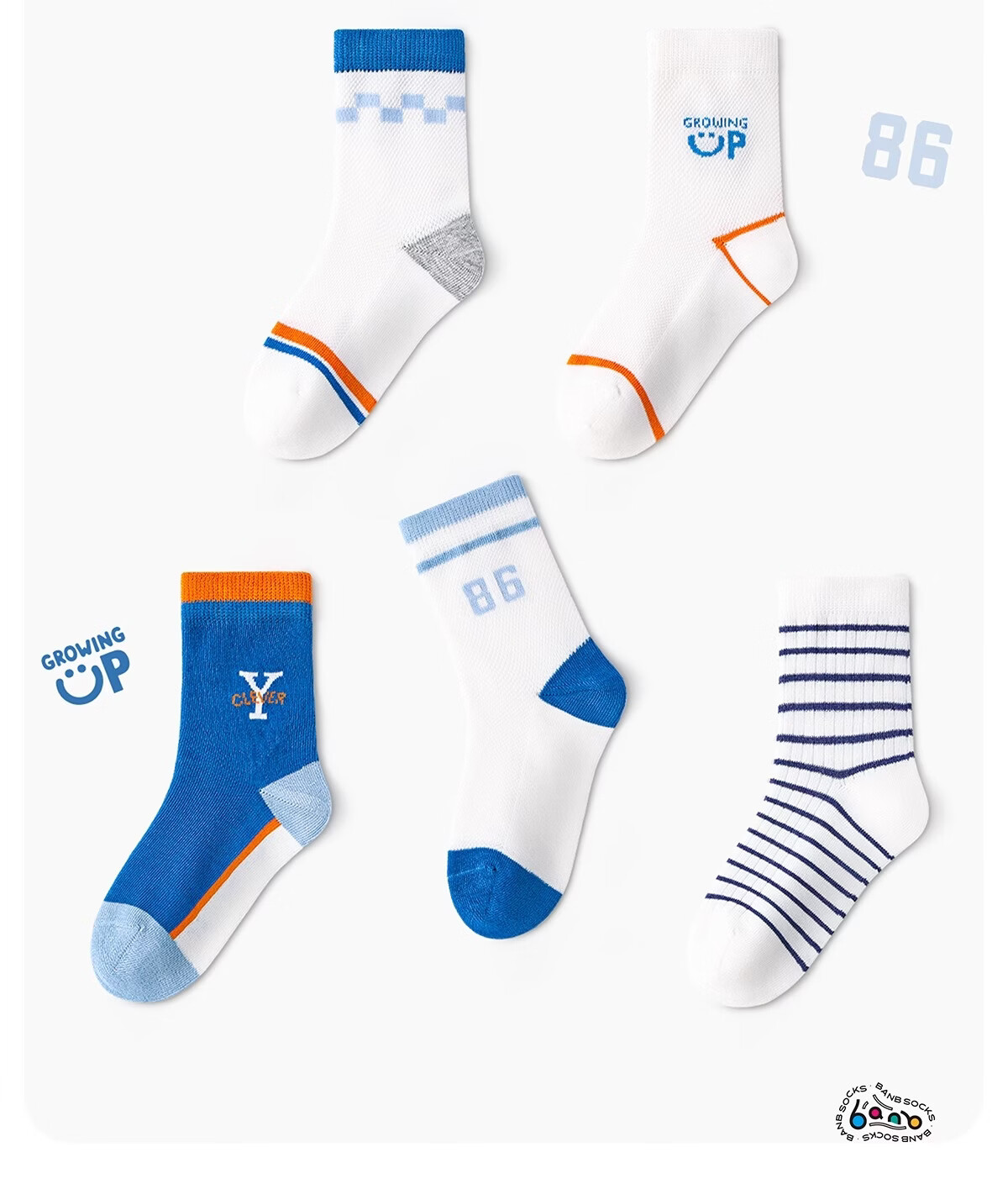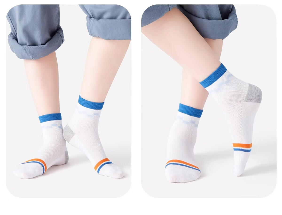 斑比男童袜子春夏薄款网眼透气棉袜中大童学生夏季运动儿童无骨袜 BB25016 春夏款儿童网眼袜 5双 3-5岁 建议脚码21-26码【16-18】