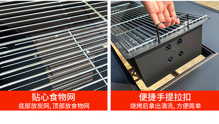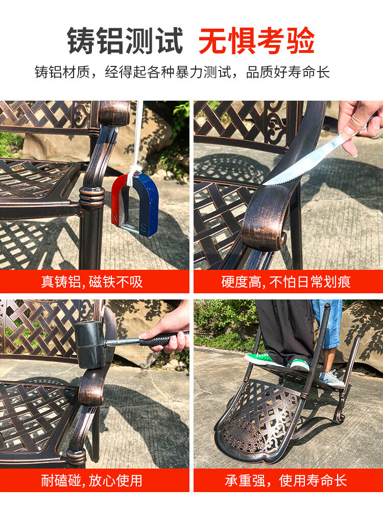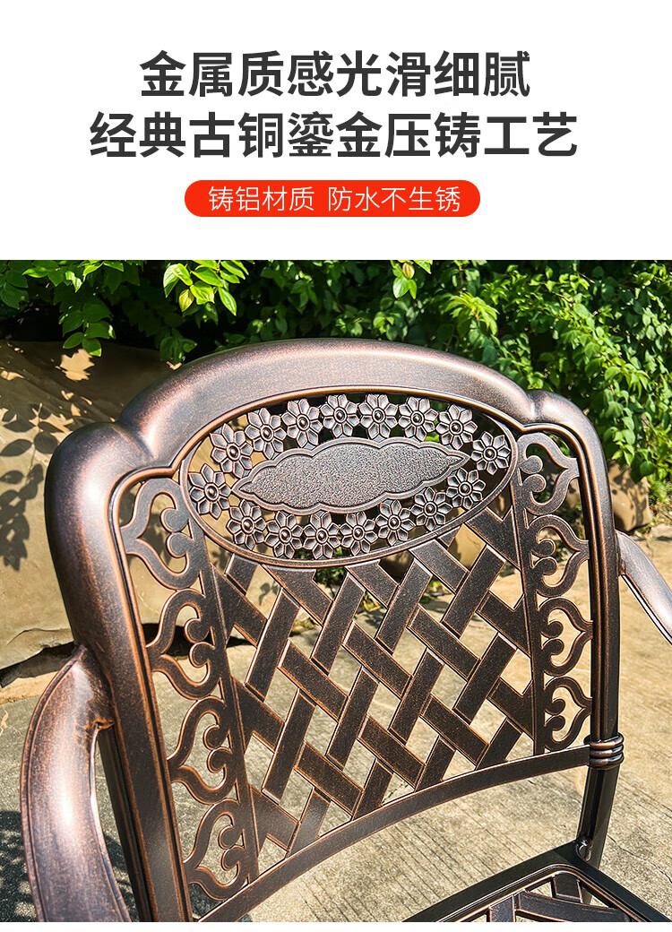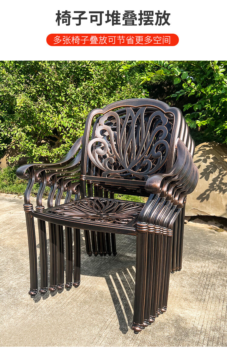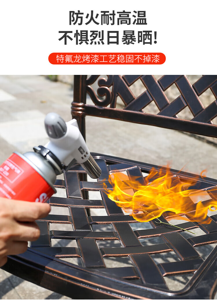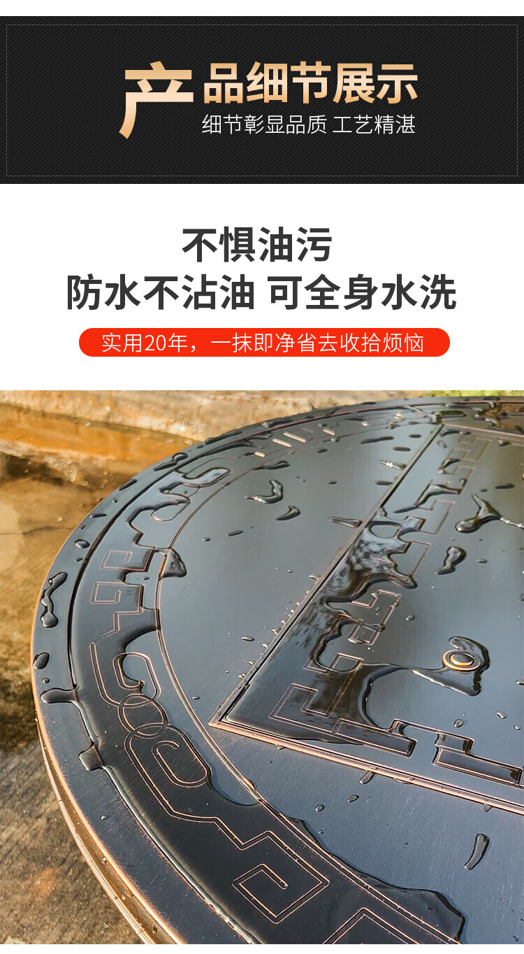 gosoo户外桌椅庭院别墅围炉煮茶餐桌烧烤桌电烤火锅铸铝6椅136cm双炉桌