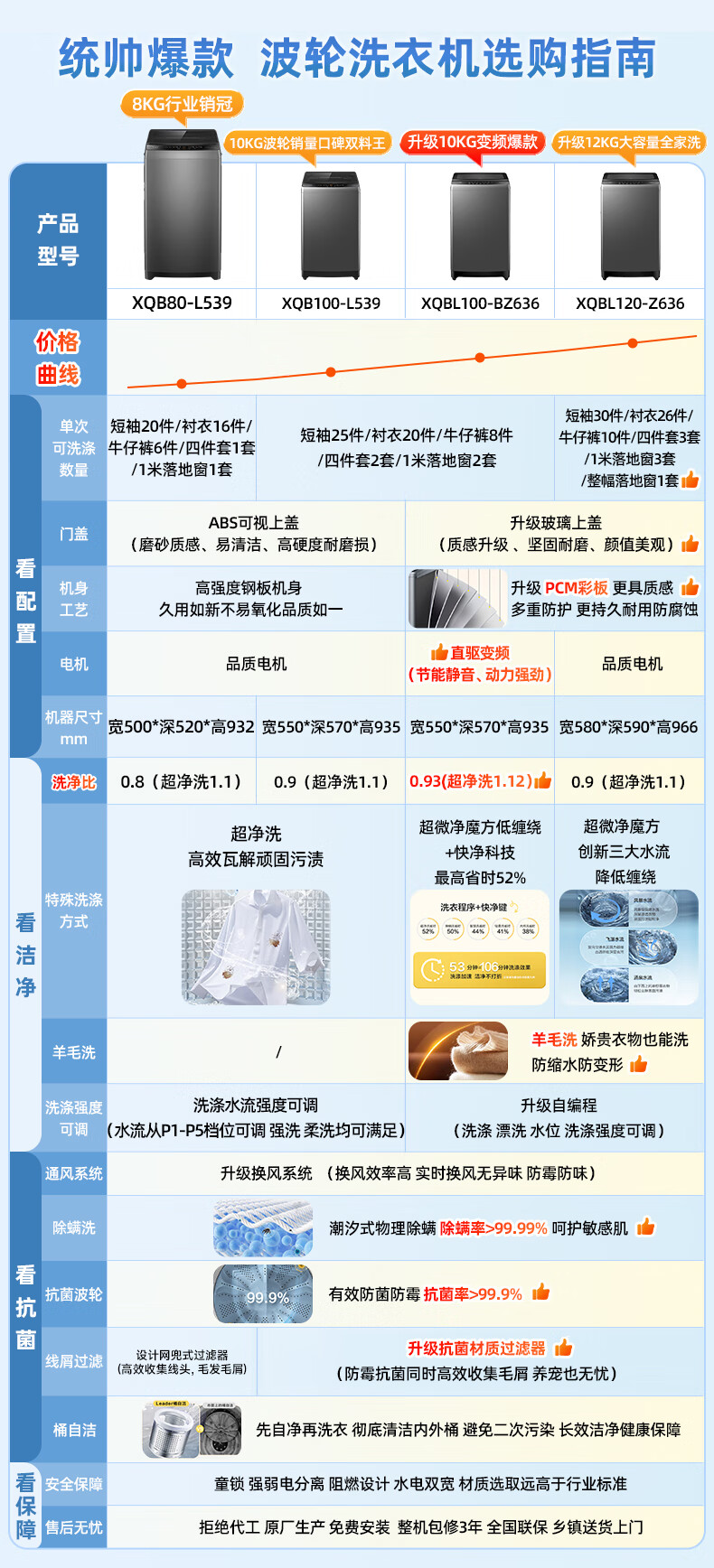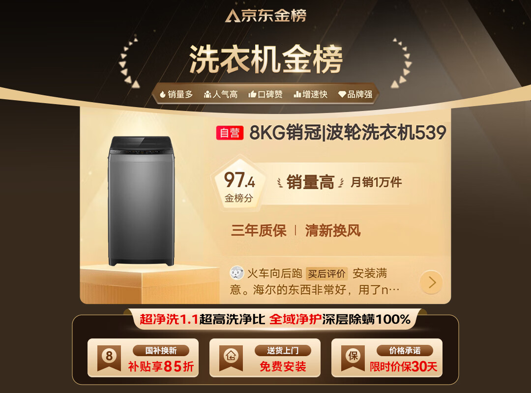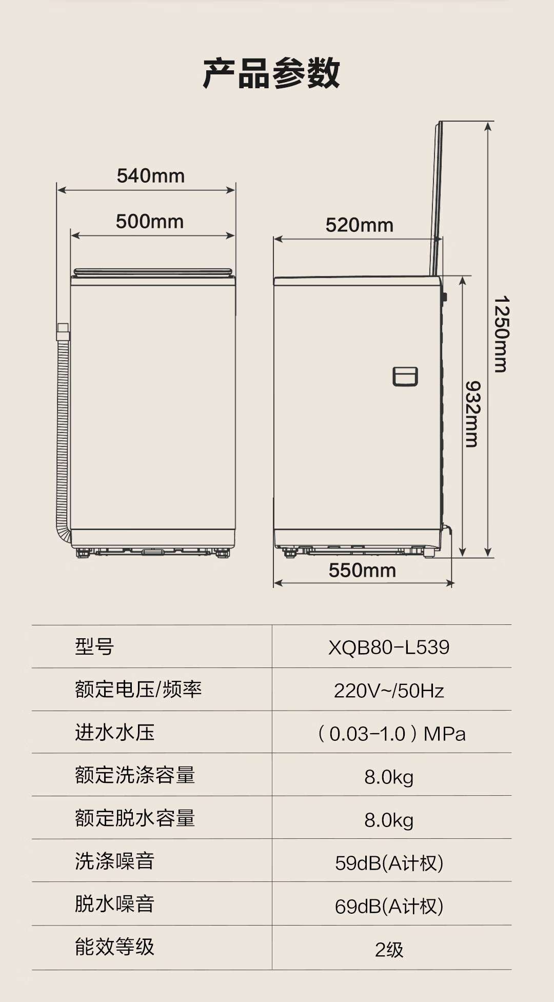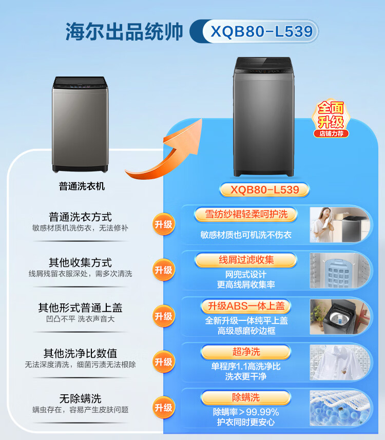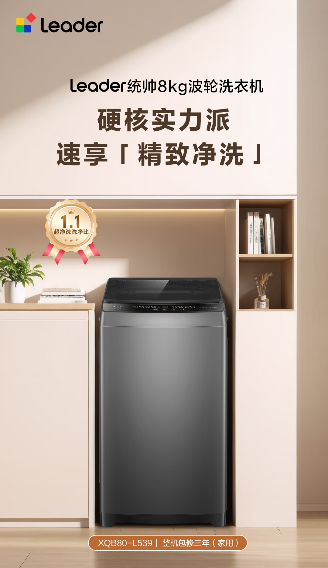 海尔(Haier)出品 统帅波轮洗衣机 全自动家用 出租房8公斤小型 京东自营以旧换新家电补贴 XQB80-L539