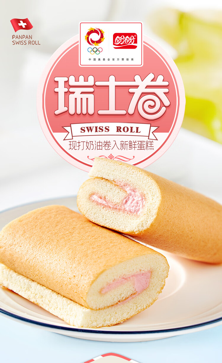 盼盼 瑞士卷 饼干蛋糕下午茶早餐糕点休闲食品软面包 草莓味1250g