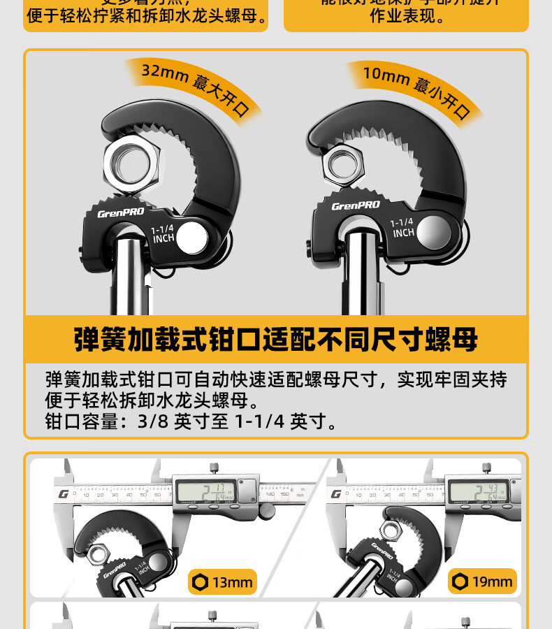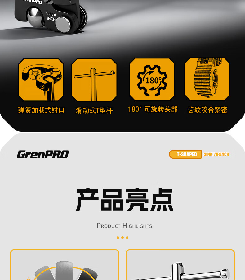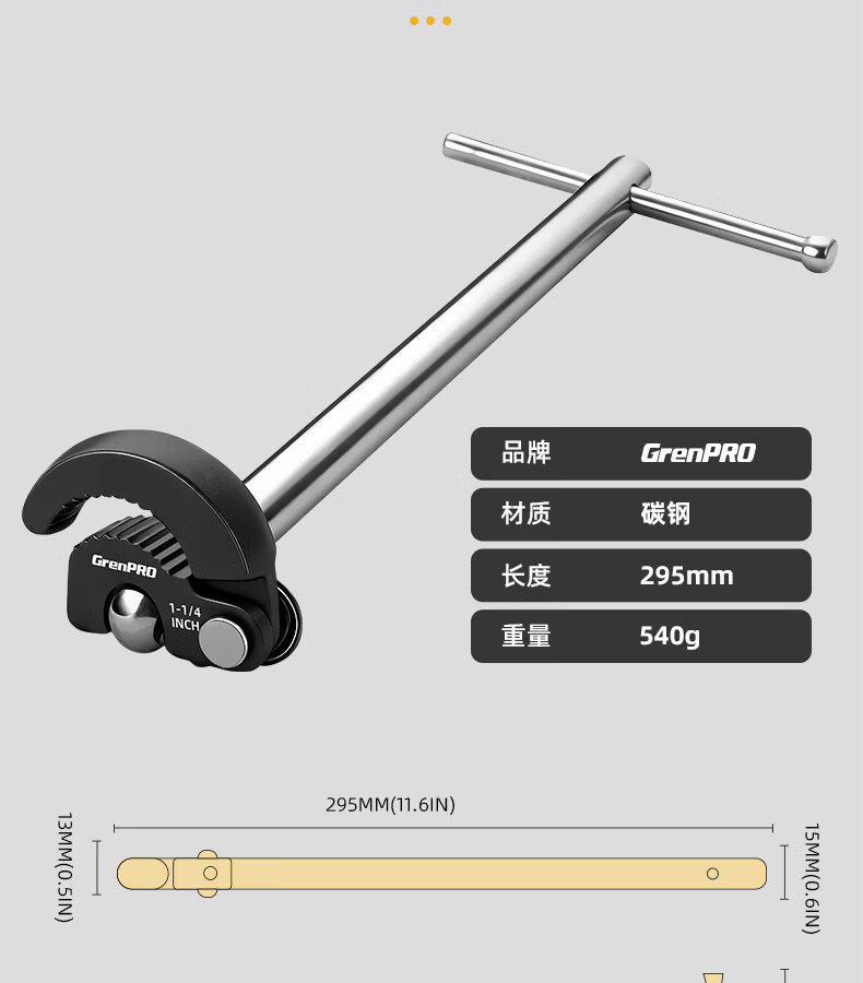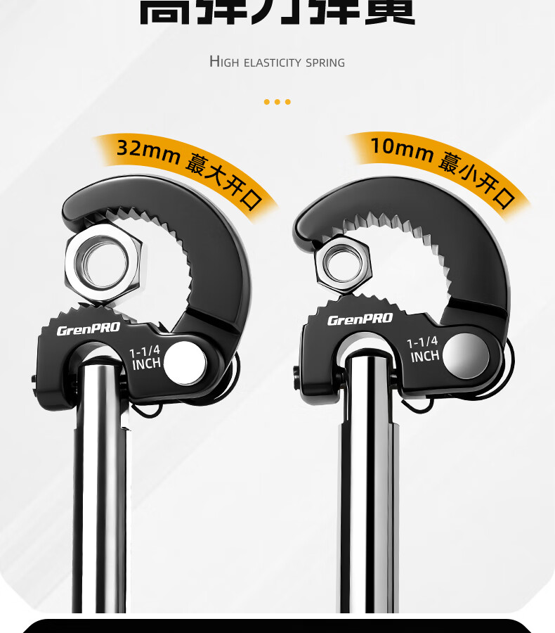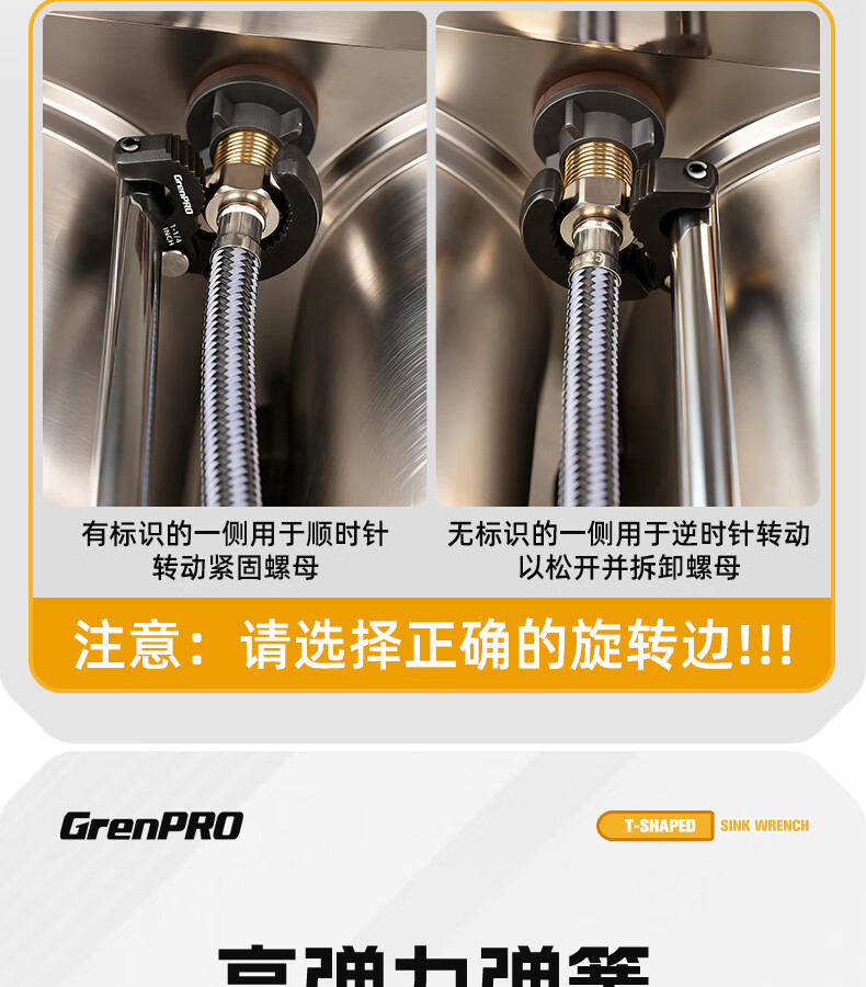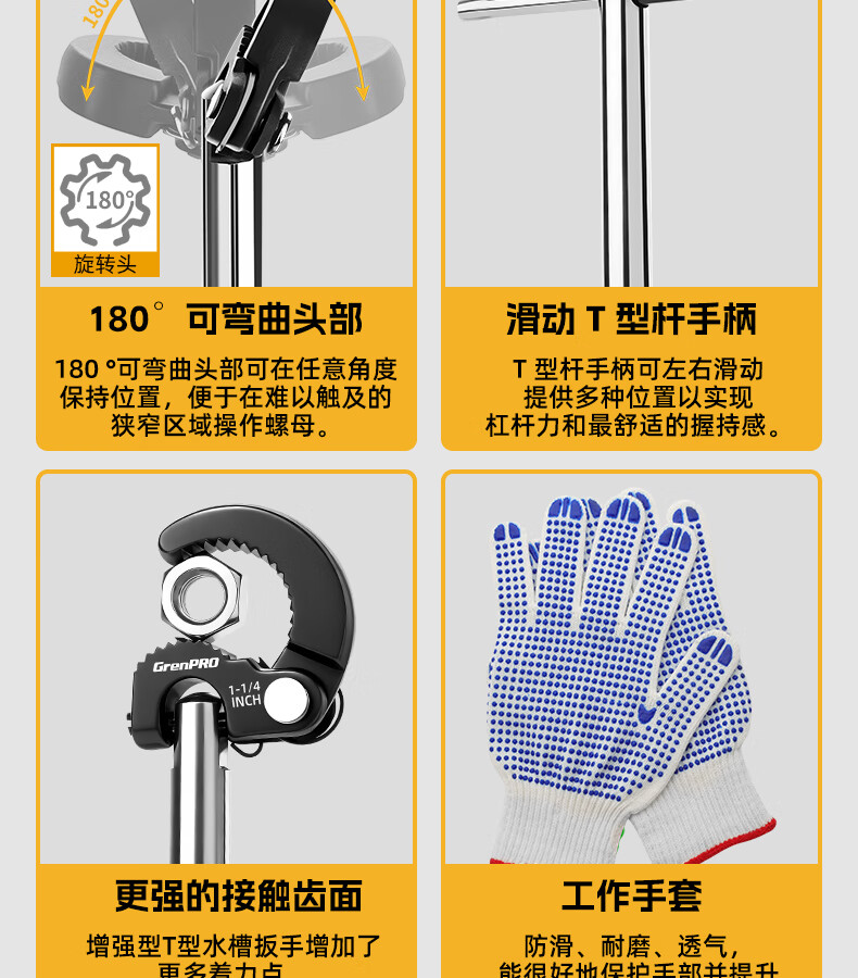 绿林(GREENER)T型活动扳手活口多功能活扳手正品卫浴专用板手狭小空间开口 【可旋转180°】T型自锁活扳手