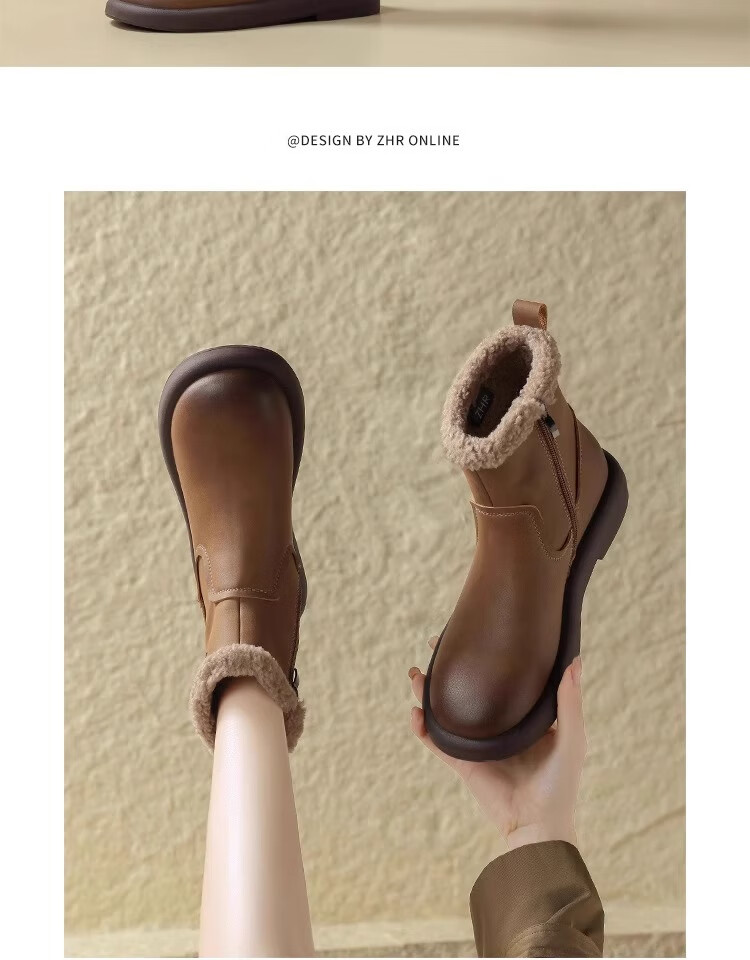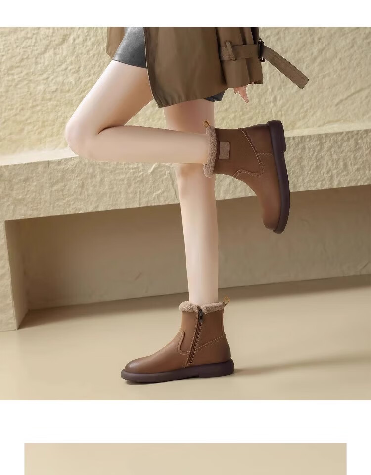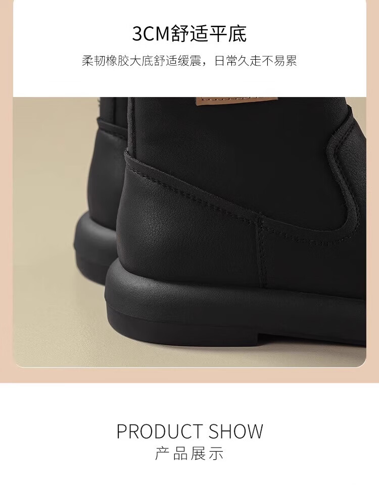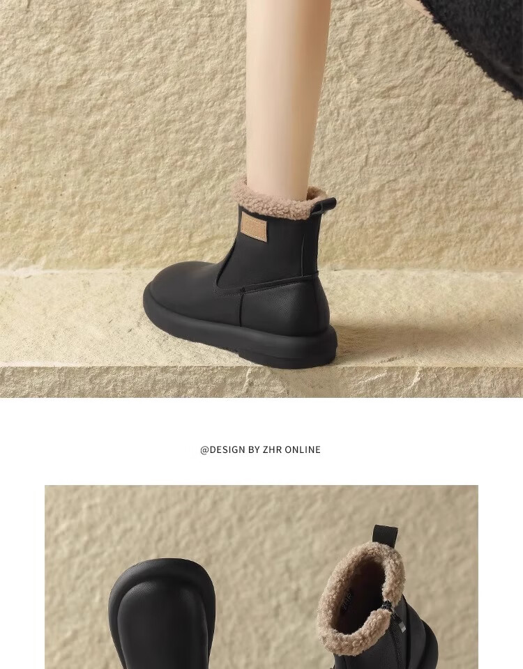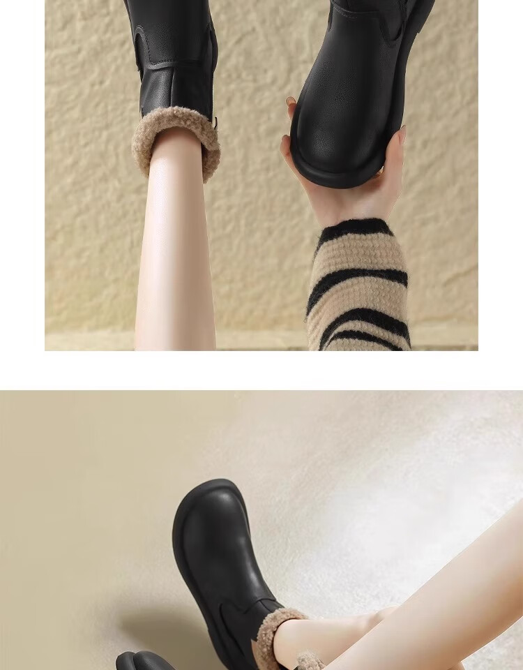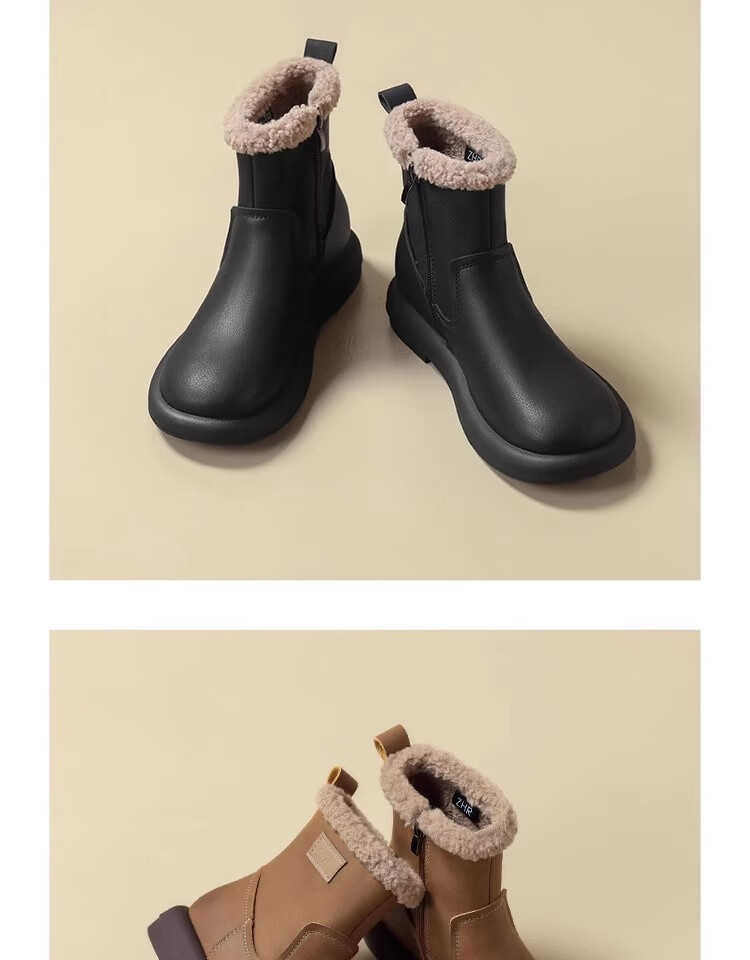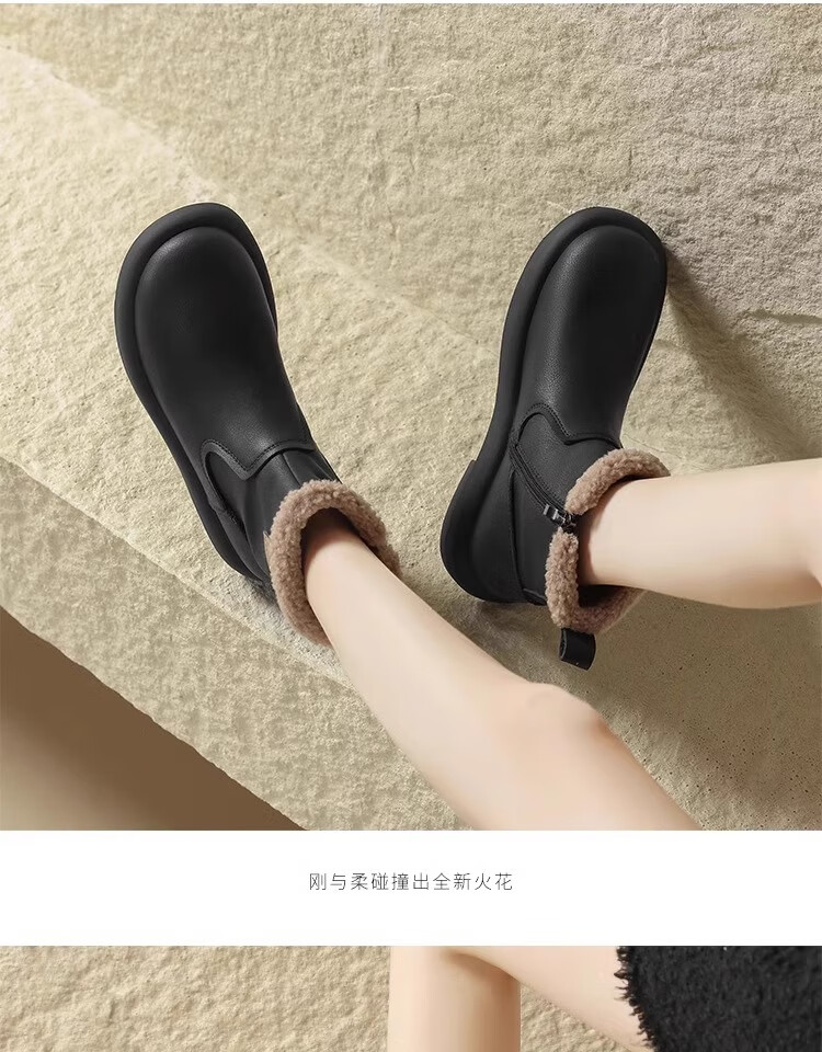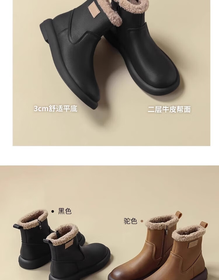 稻草人(MEXICAN)品牌新款真皮棉鞋雪地靴女2026秋冬新款保暖加绒加厚马丁靴短靴子 黑色 35