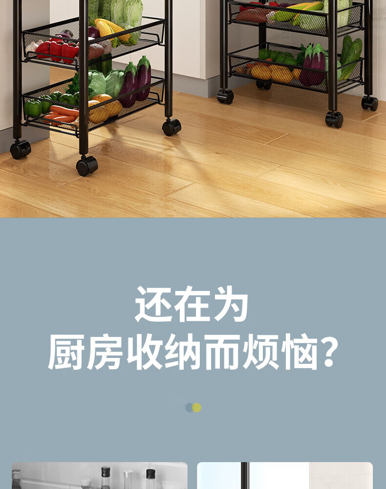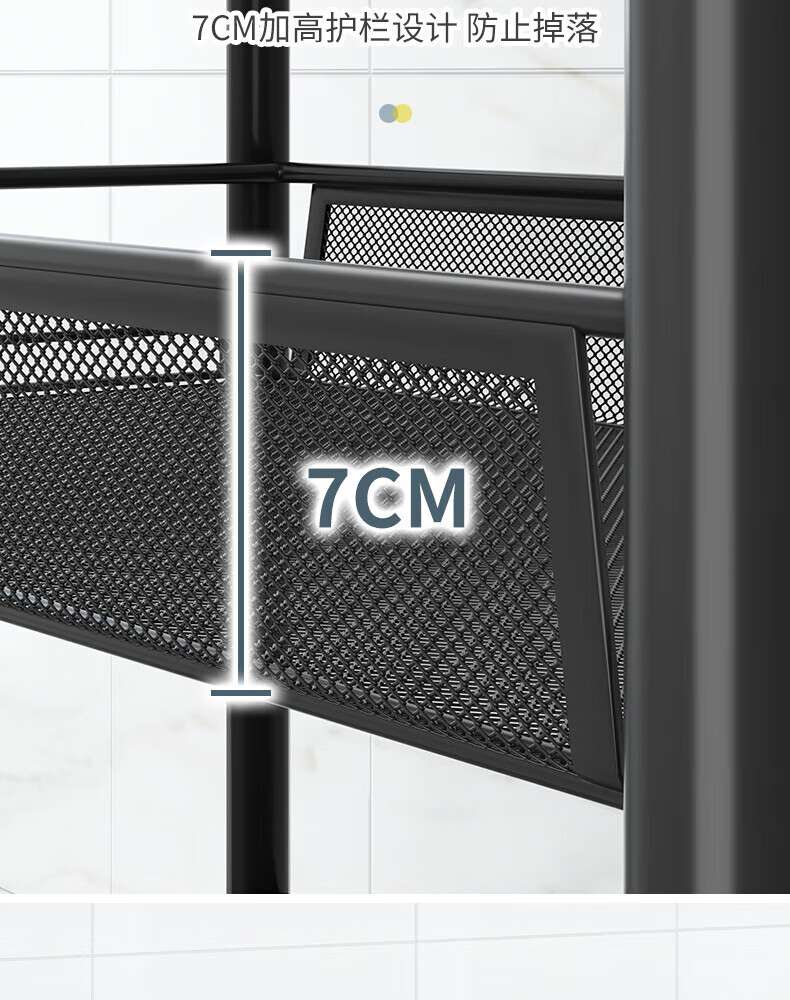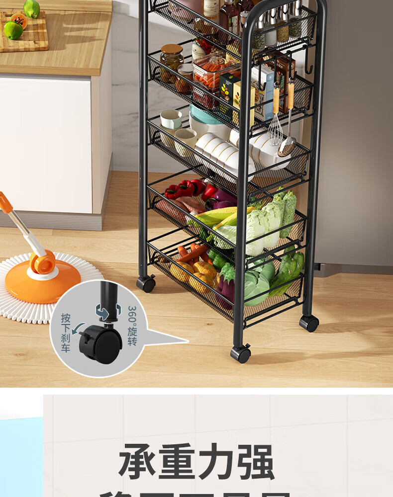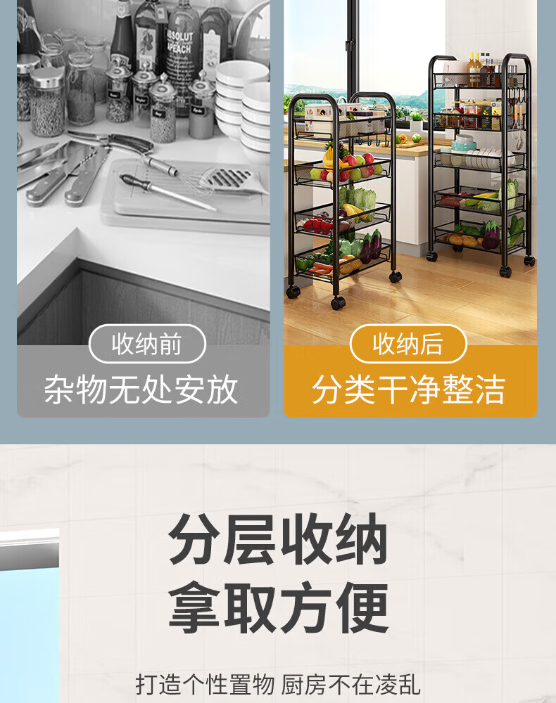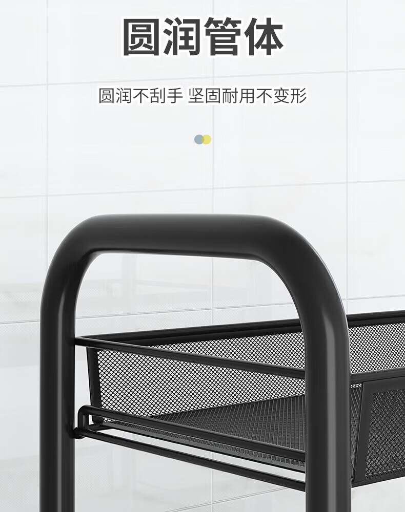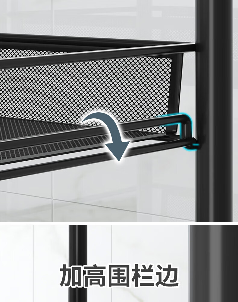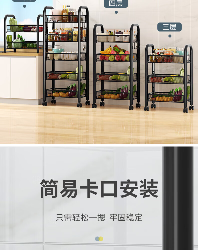 馨婺家厨房推车置物架落地多层调料架卧室客厅玩具零食收纳架夹缝储物架 黑色-3层【基础款】