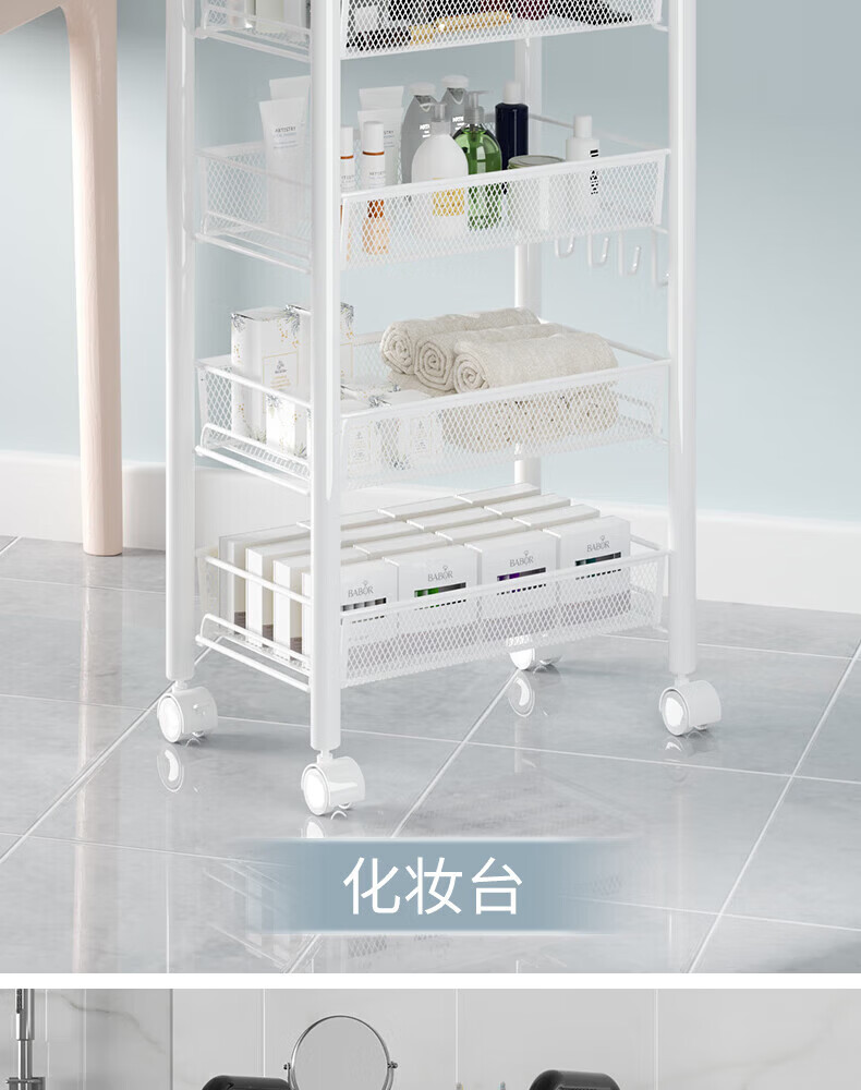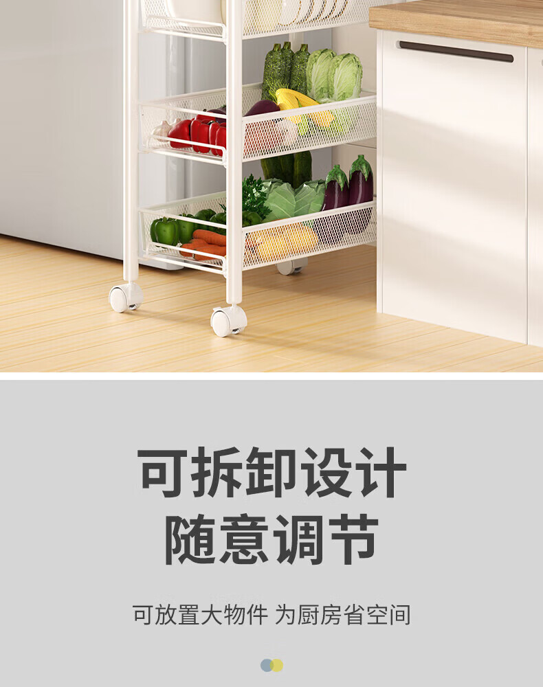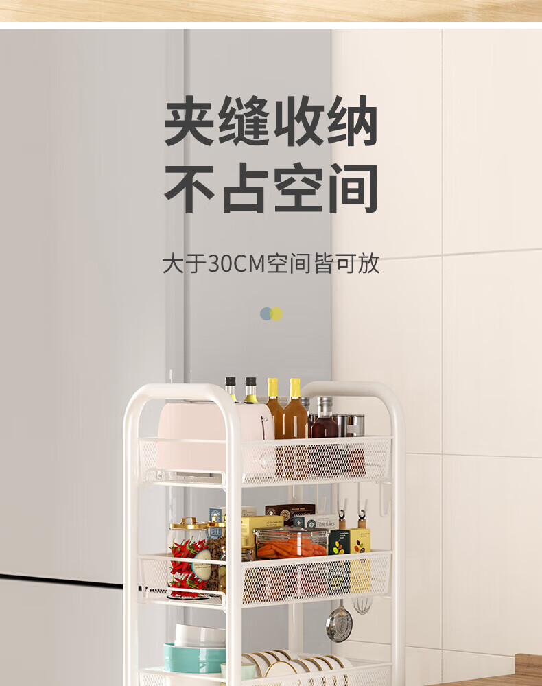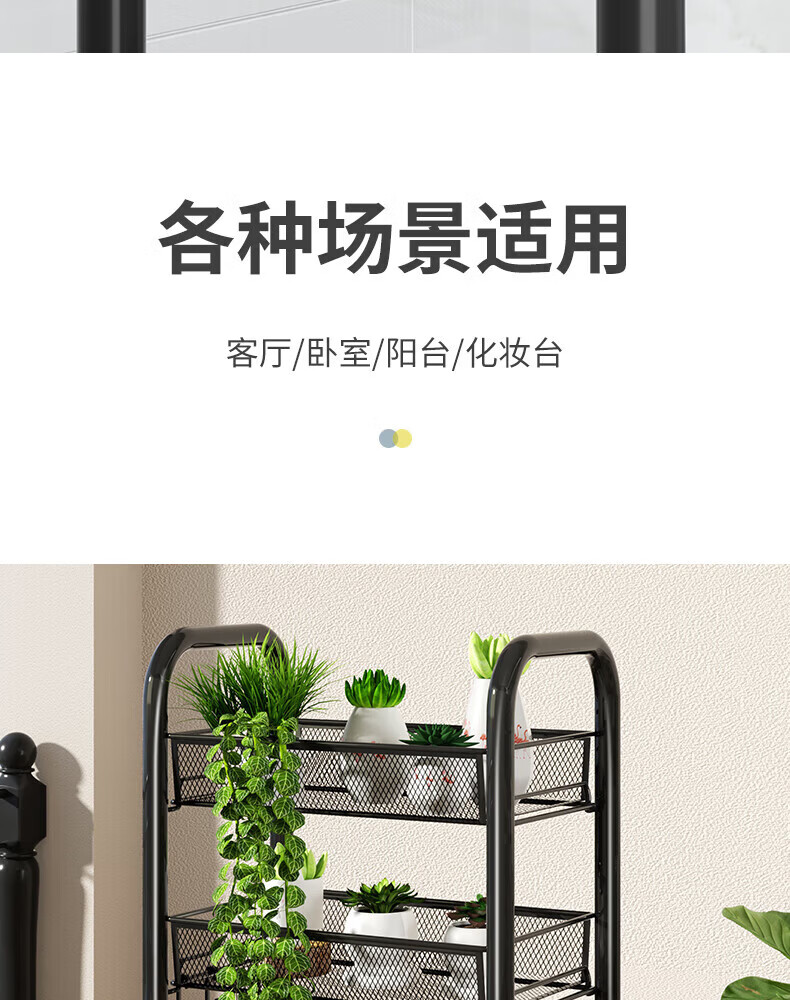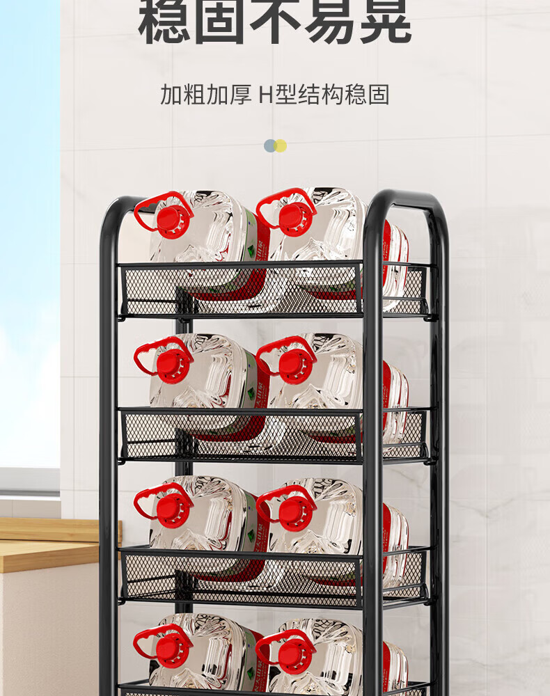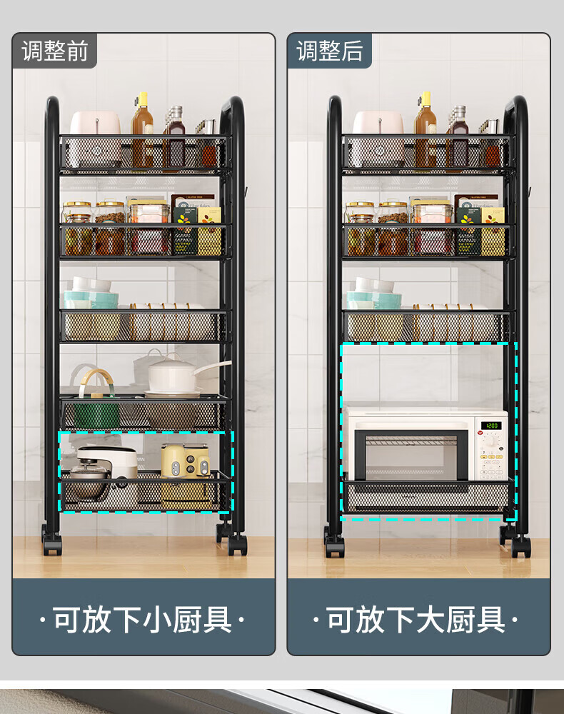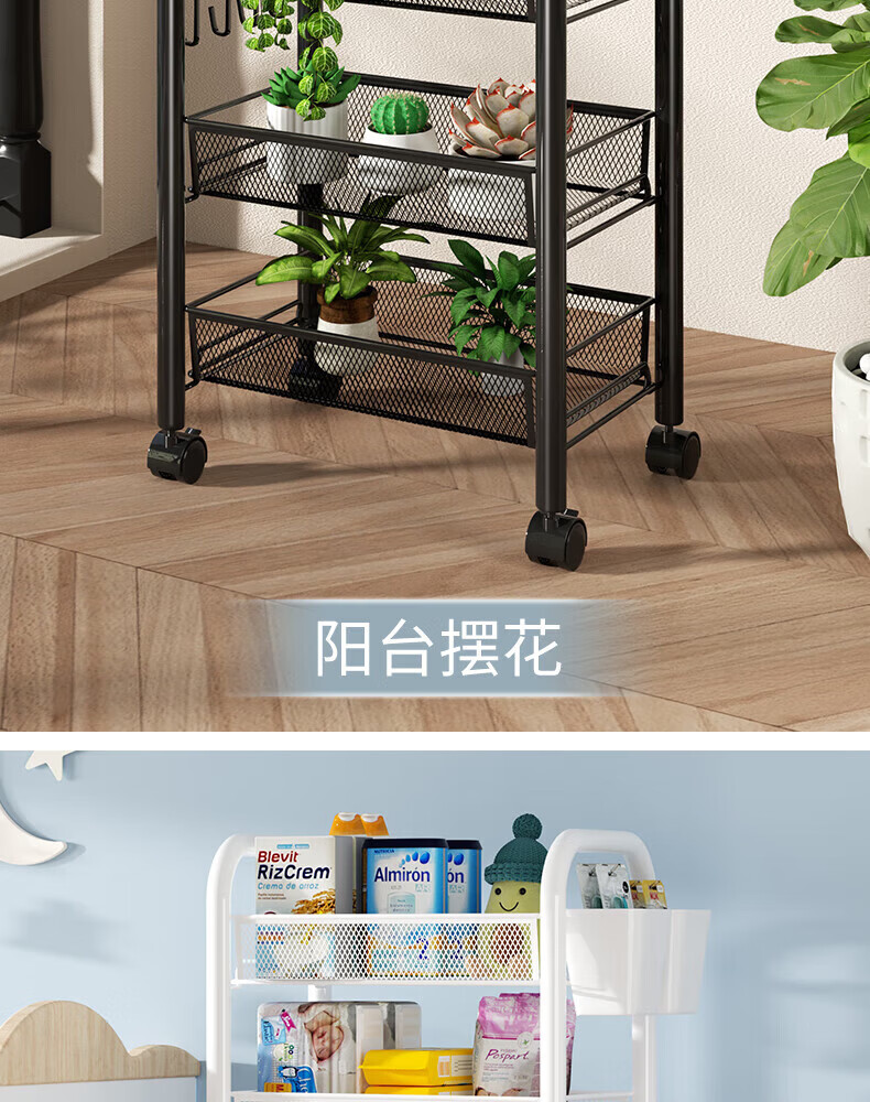 馨婺家厨房推车置物架落地多层调料架卧室客厅玩具零食收纳架夹缝储物架 黑色-3层【基础款】