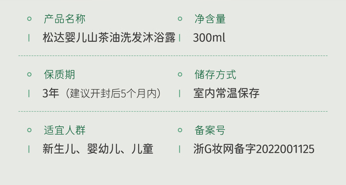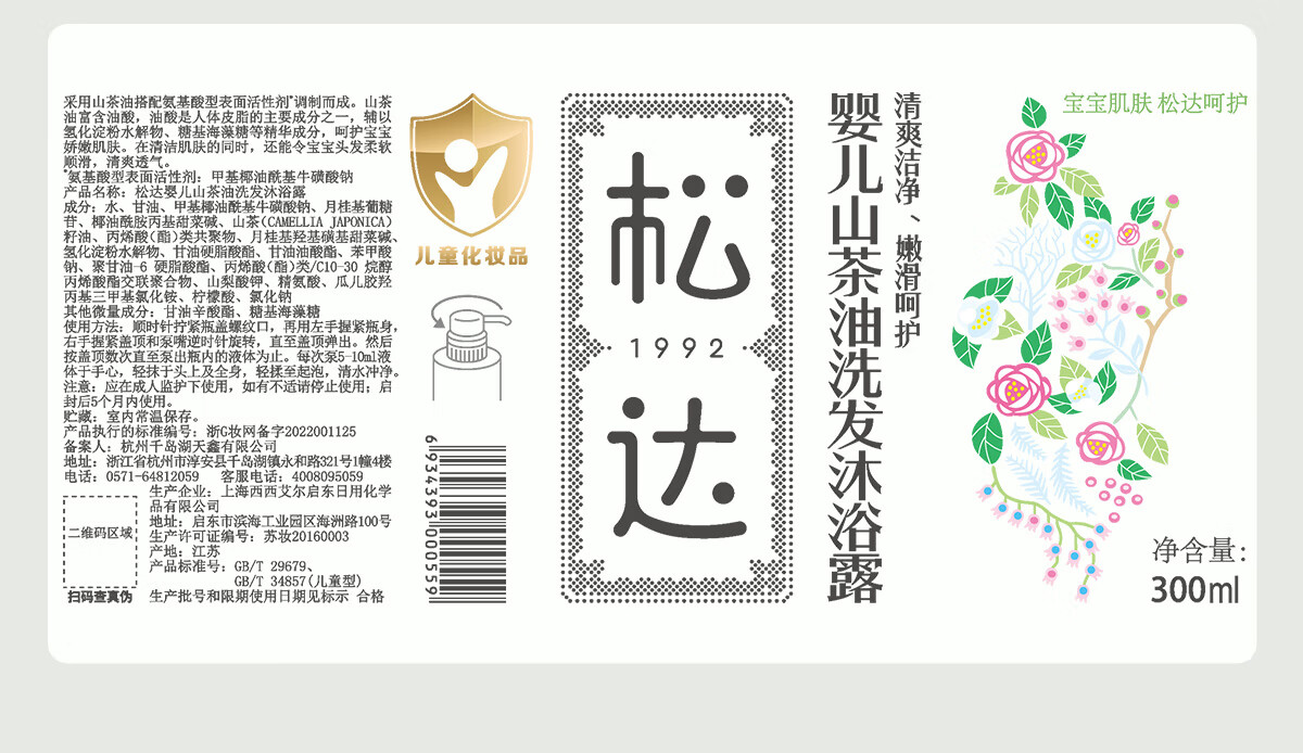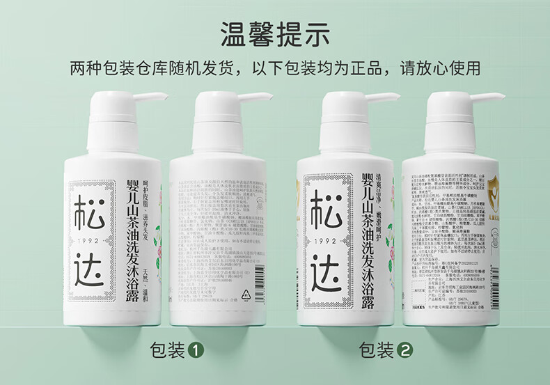 松达 婴儿沐浴露洗发水儿童山茶油低泡无硅油 300ml*2